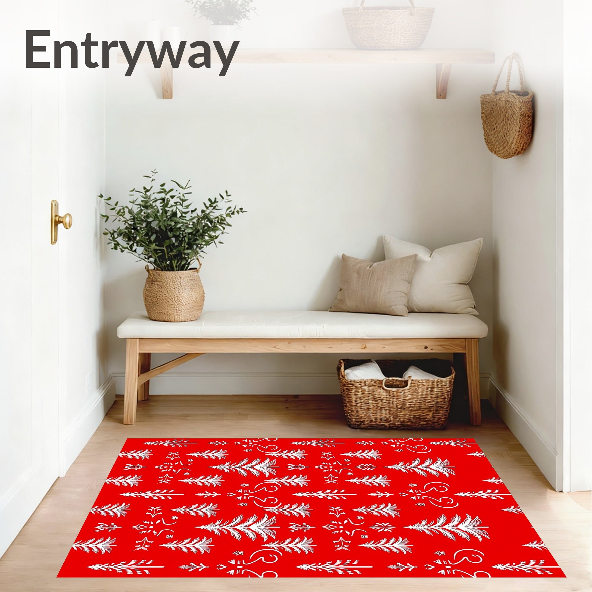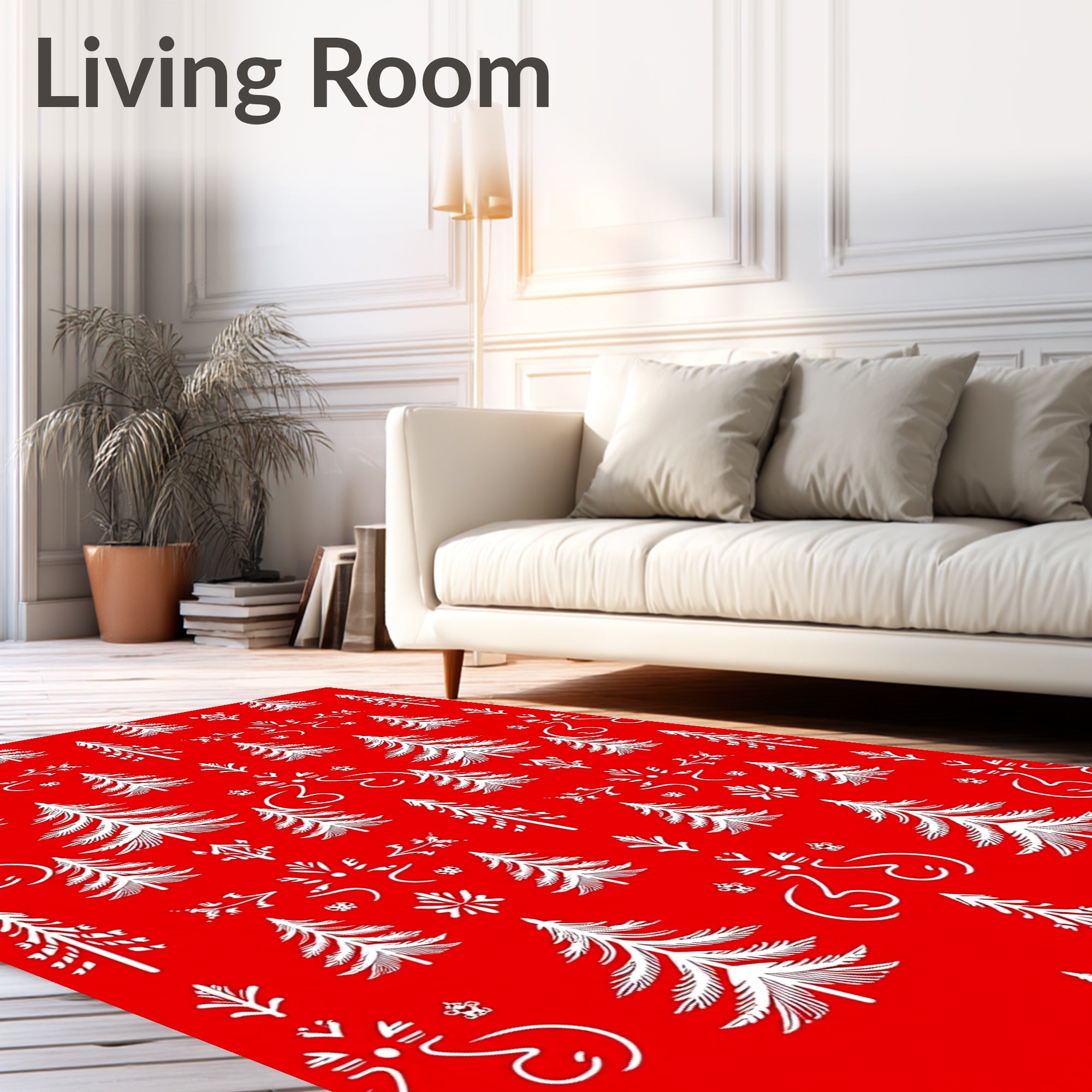 Ultra Soft Area Rug, Non Slip, Stain Resistant, Washable Area Rugs for Living Room, Bedroom, Joyful Evergreen Holiday Celebration(Red) Overview: