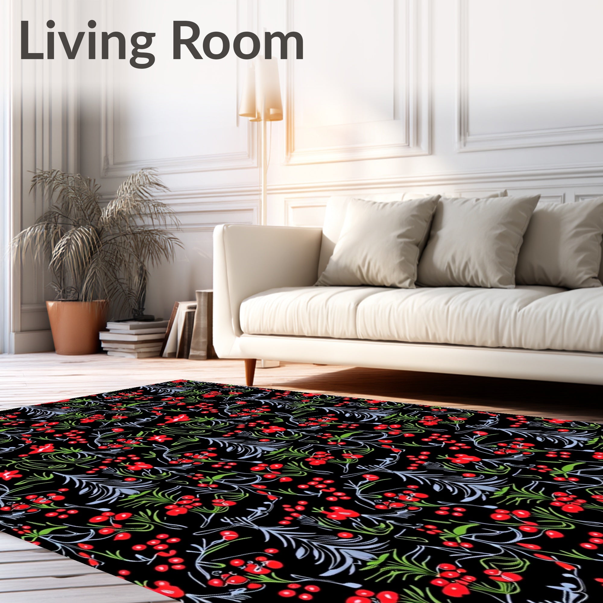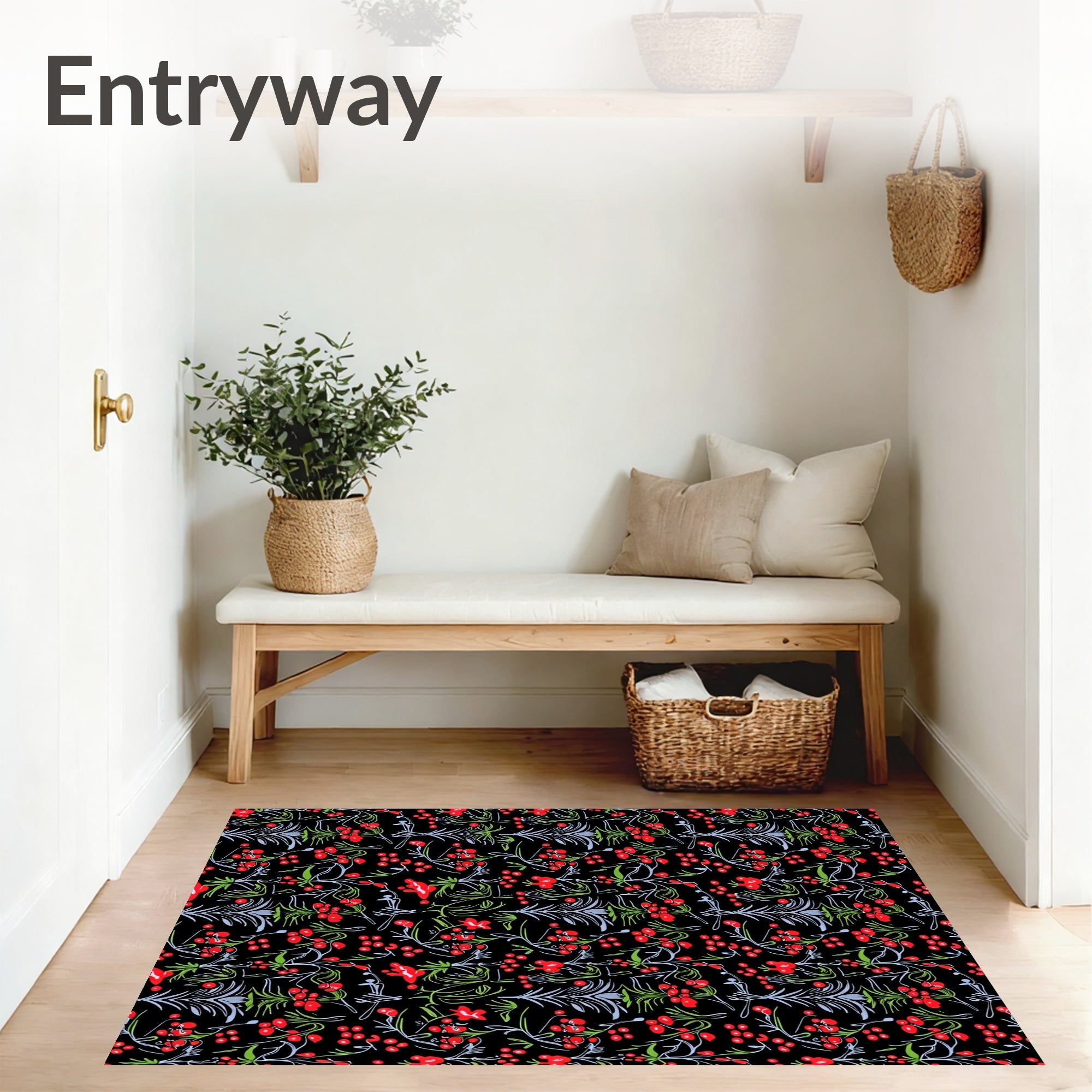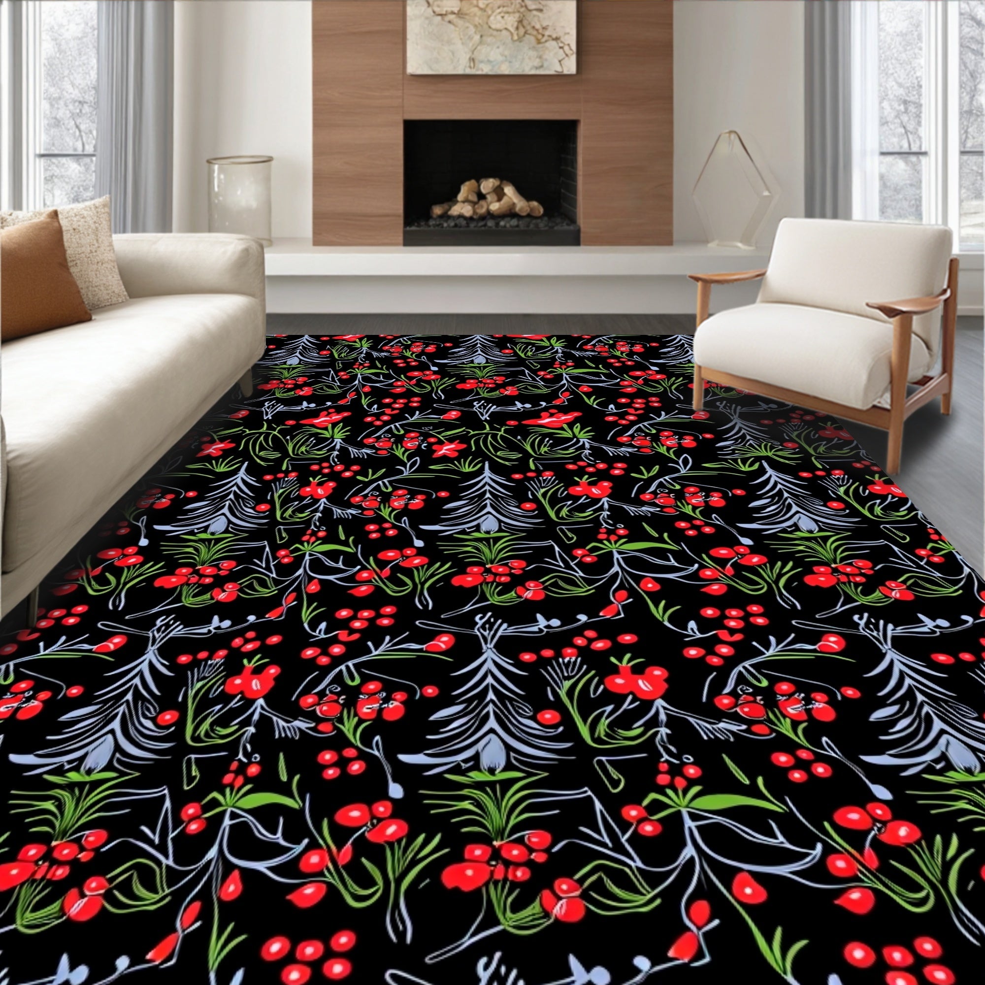 Ultra Soft Area Rug, Non Slip, Stain Resistant, Washable Area Rugs for Living Room, Bedroom, Joyful Evergreen Layered Entrance Duo Winter Celebration Greeting Kit(Black) Overview:
