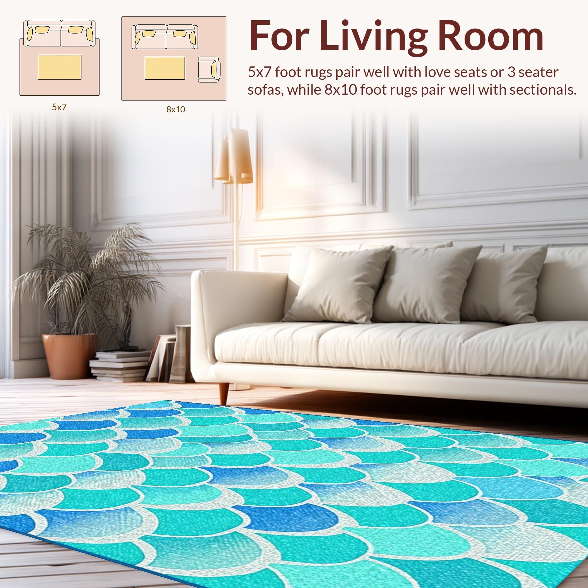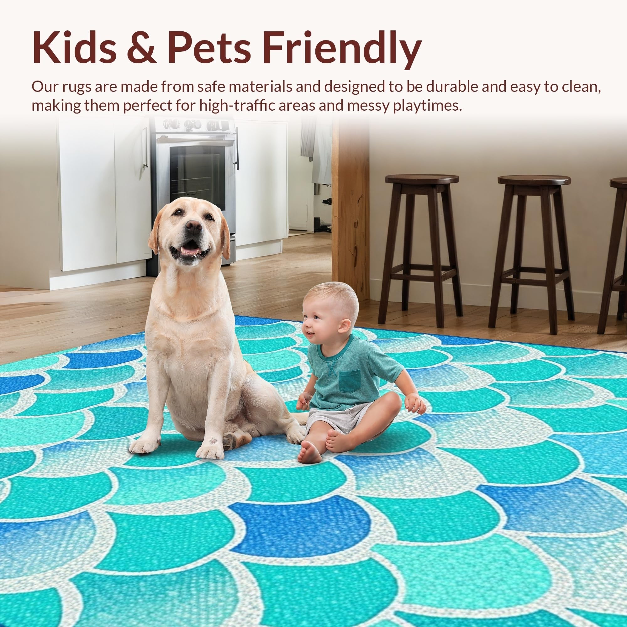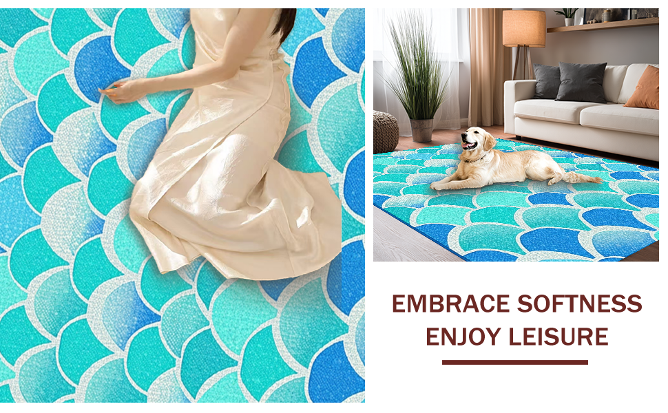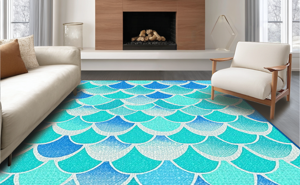 Ultra Soft Area Rug, Non Slip, Stain Resistant, Washable Area Rugs for Living Room, Bedroom, Joyful Fantasy Sea Life Design(Blue) Overview: