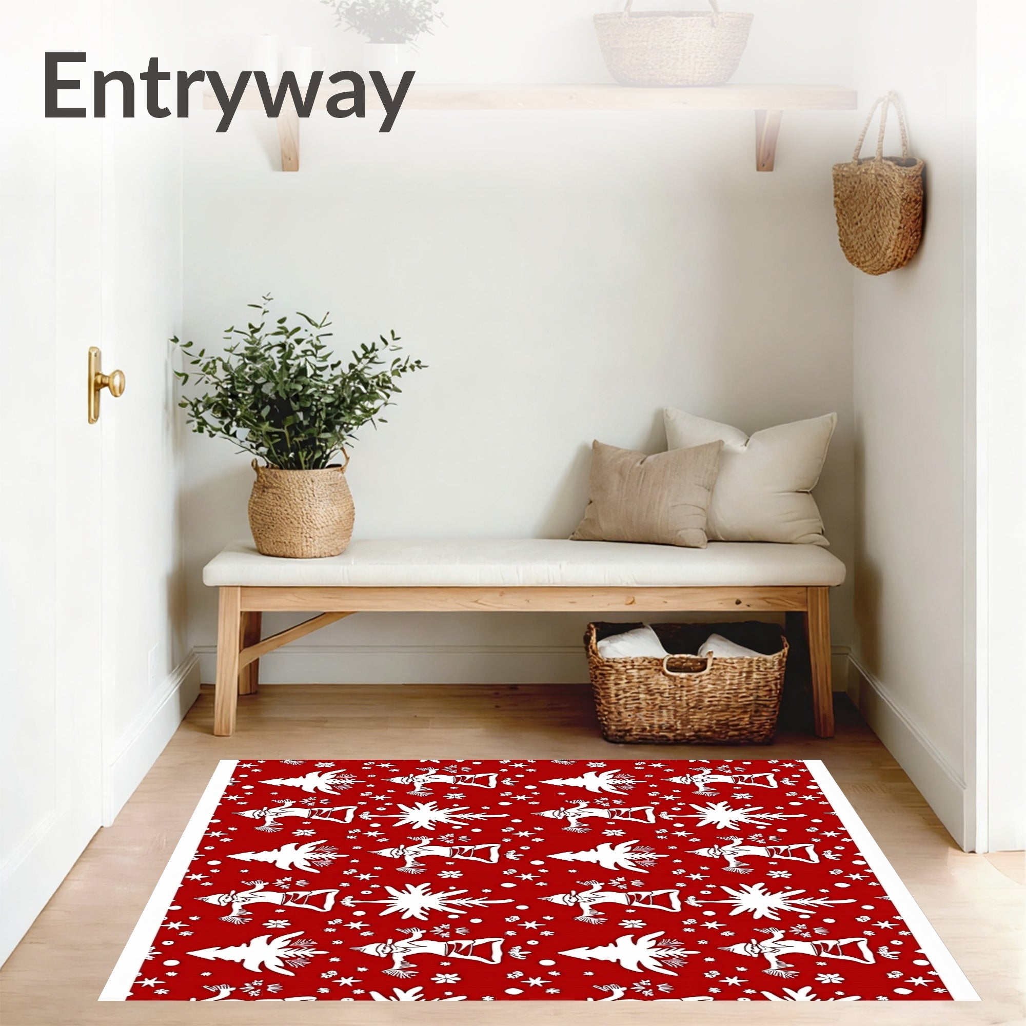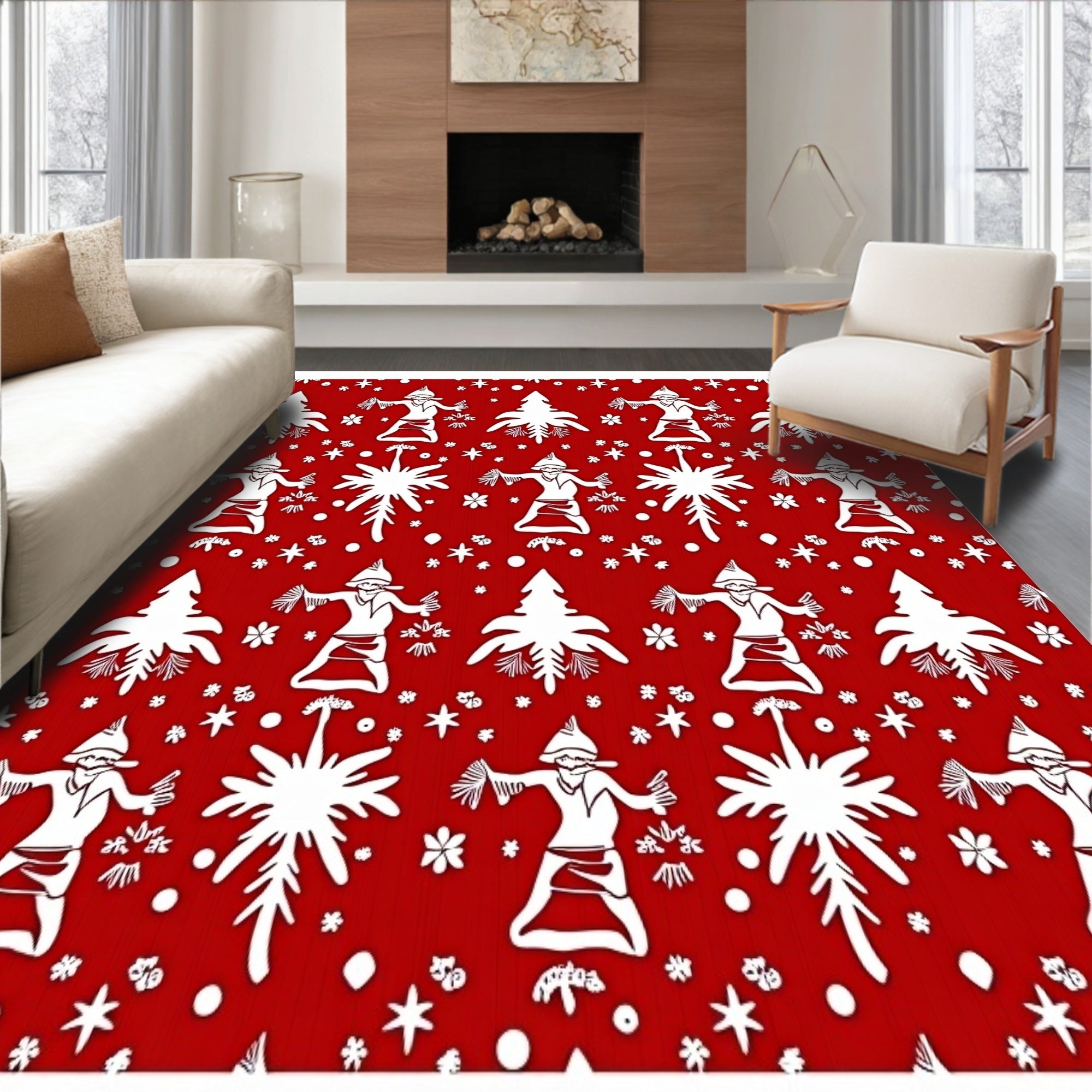 Ultra Soft Area Rug, Non Slip, Stain Resistant, Washable Area Rugs for Living Room, Bedroom, Joyful Figure Semicircular with Twinkling Accents(Red) Overview: