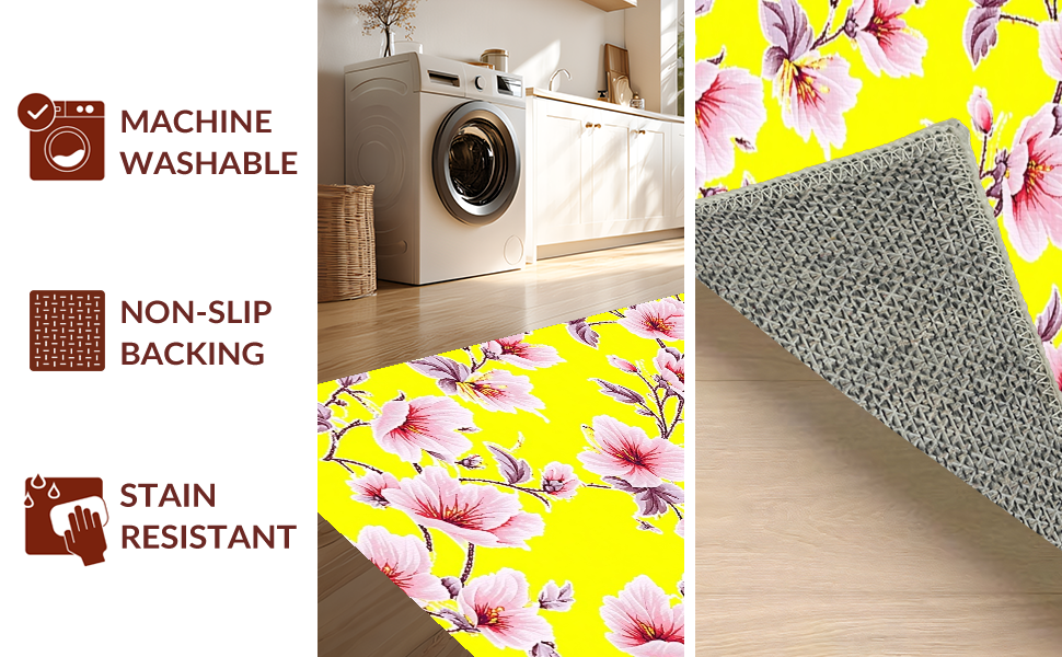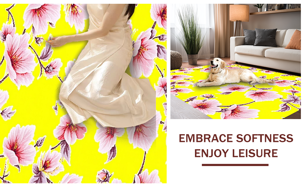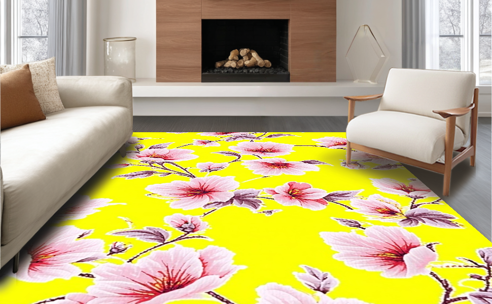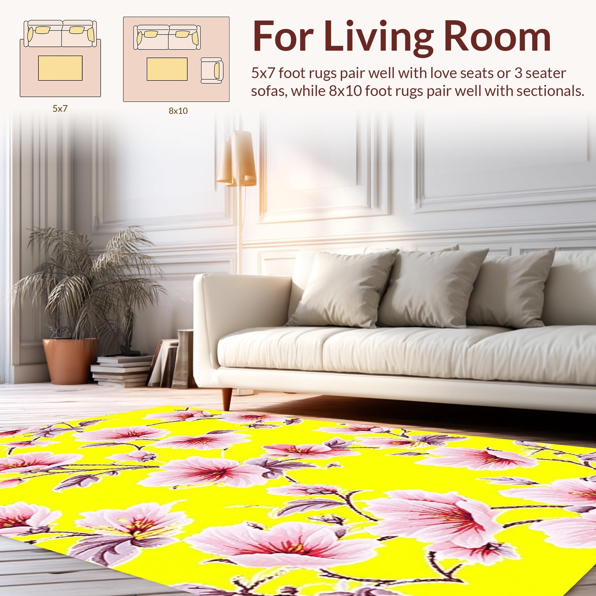 Ultra Soft Area Rug, Non Slip, Stain Resistant, Washable Area Rugs for Living Room, Bedroom, Joyful Flower Petal Aesthetic(Yellow) Overview: