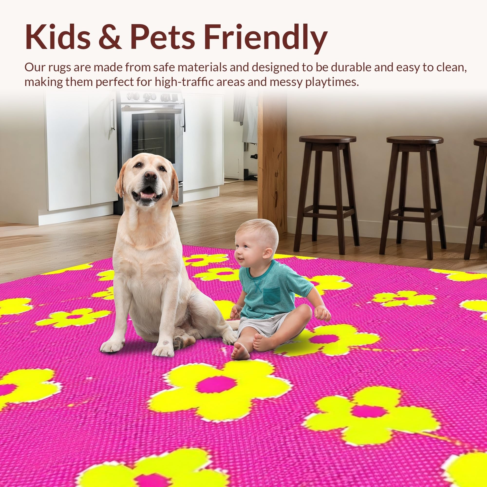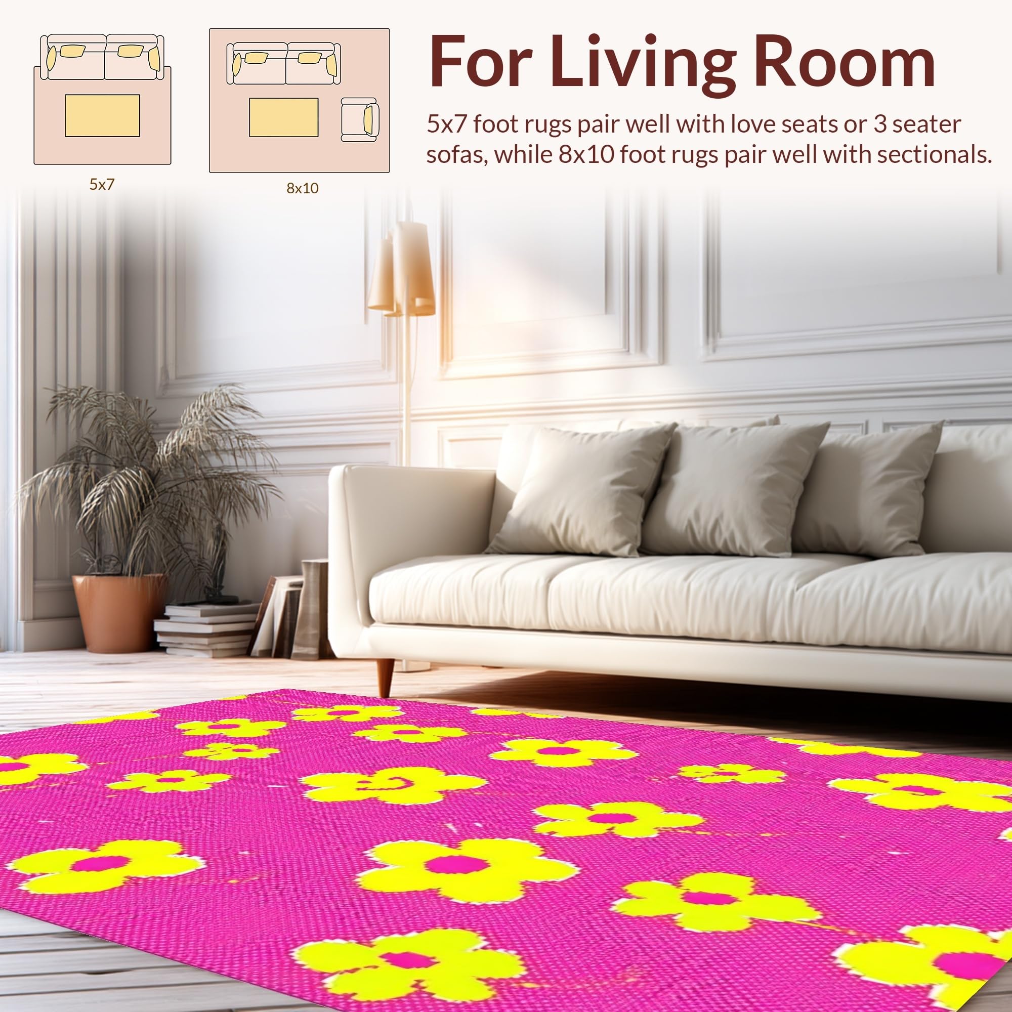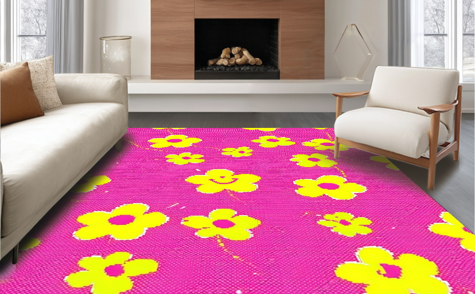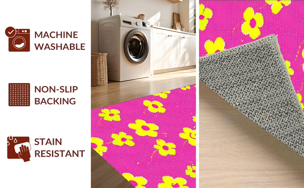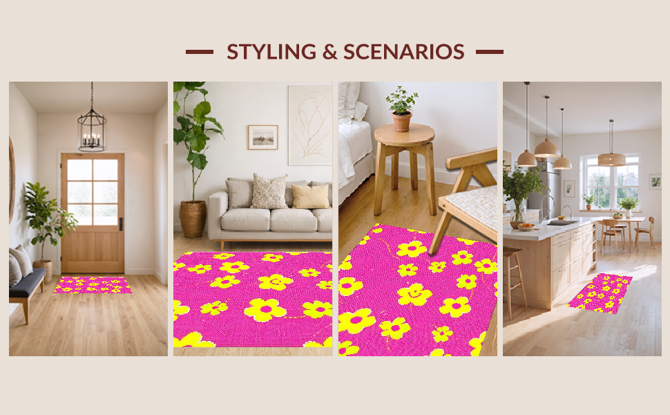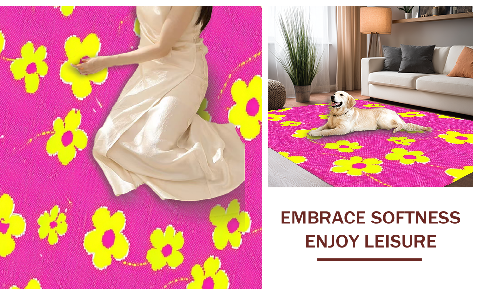 Ultra Soft Area Rug, Non Slip, Stain Resistant, Washable Area Rugs for Living Room, Bedroom, Joyful Handcrafted Blooming Design(Pink) Overview: