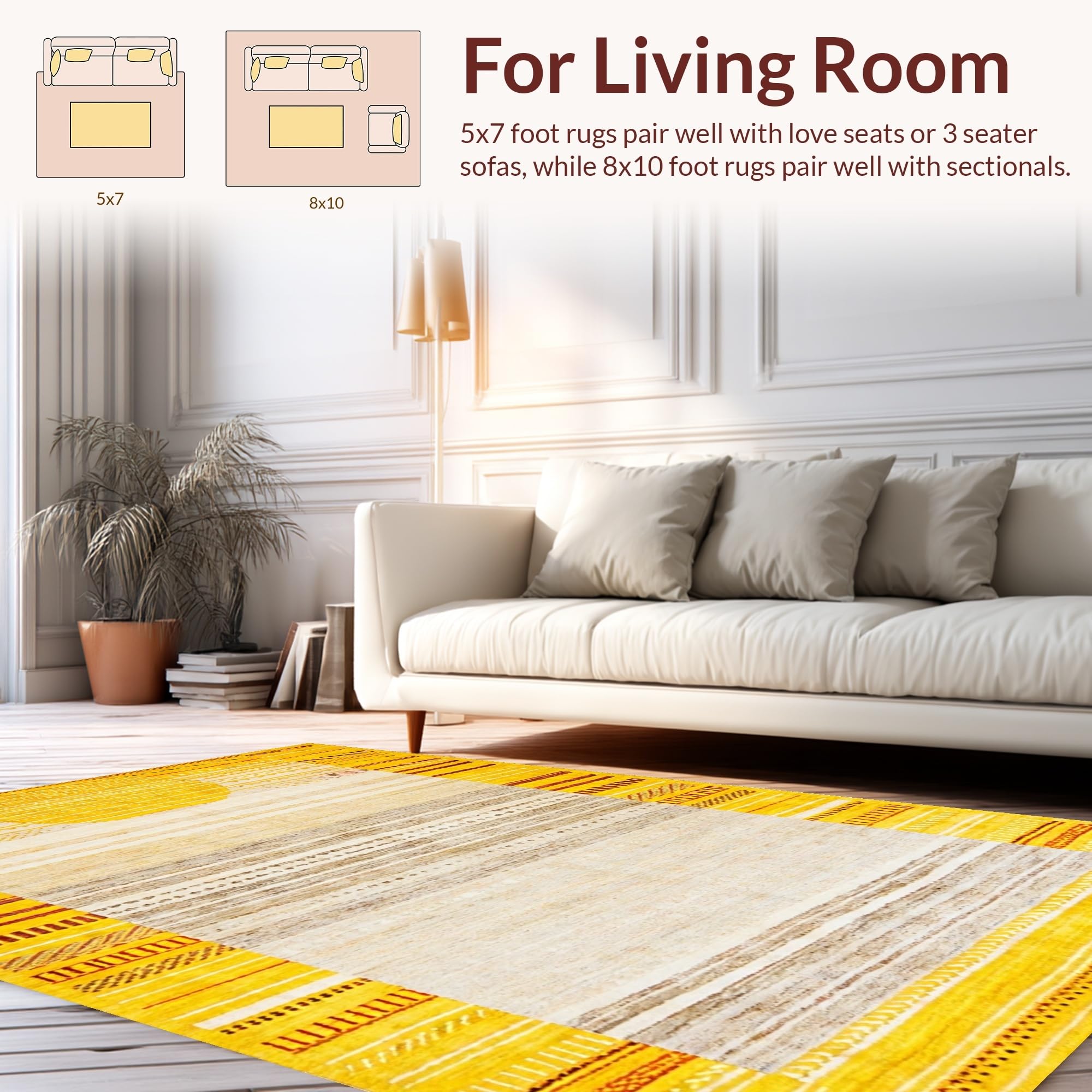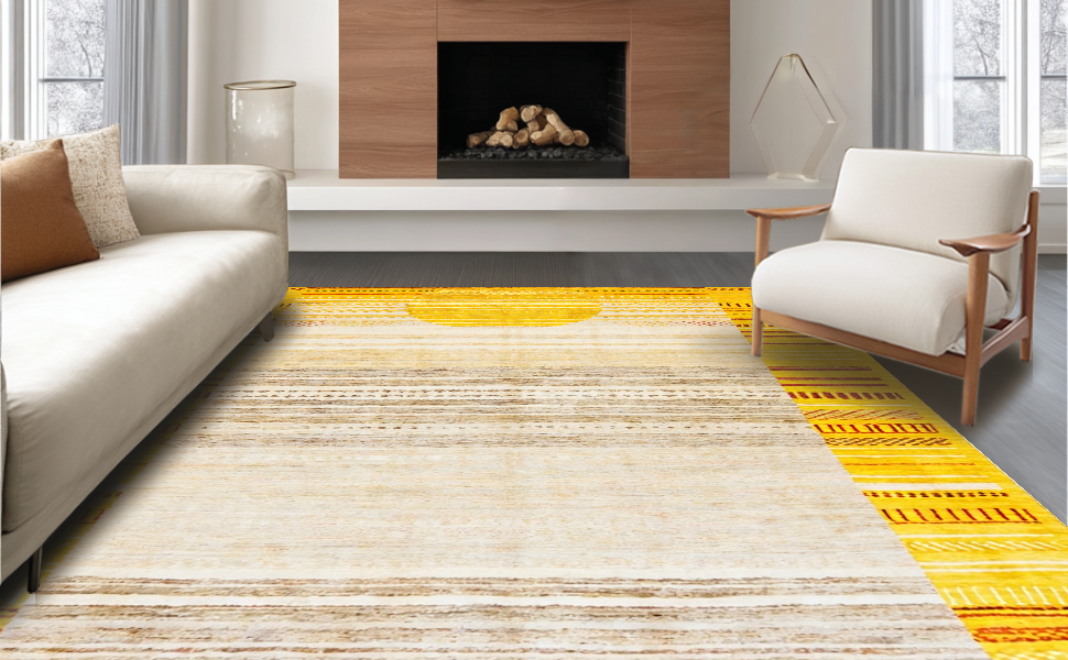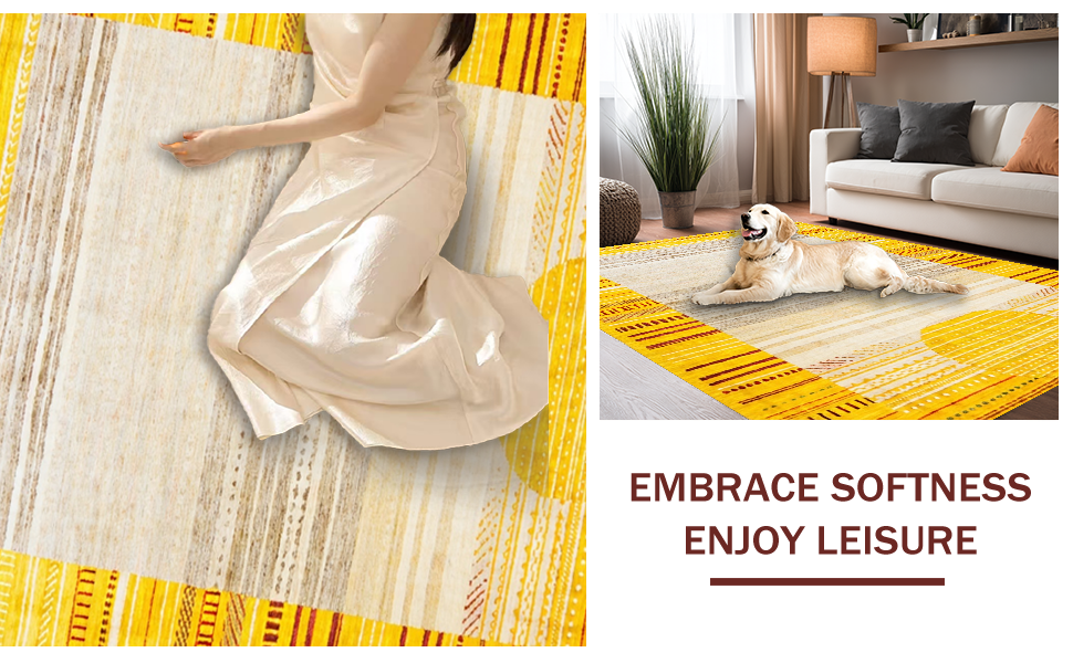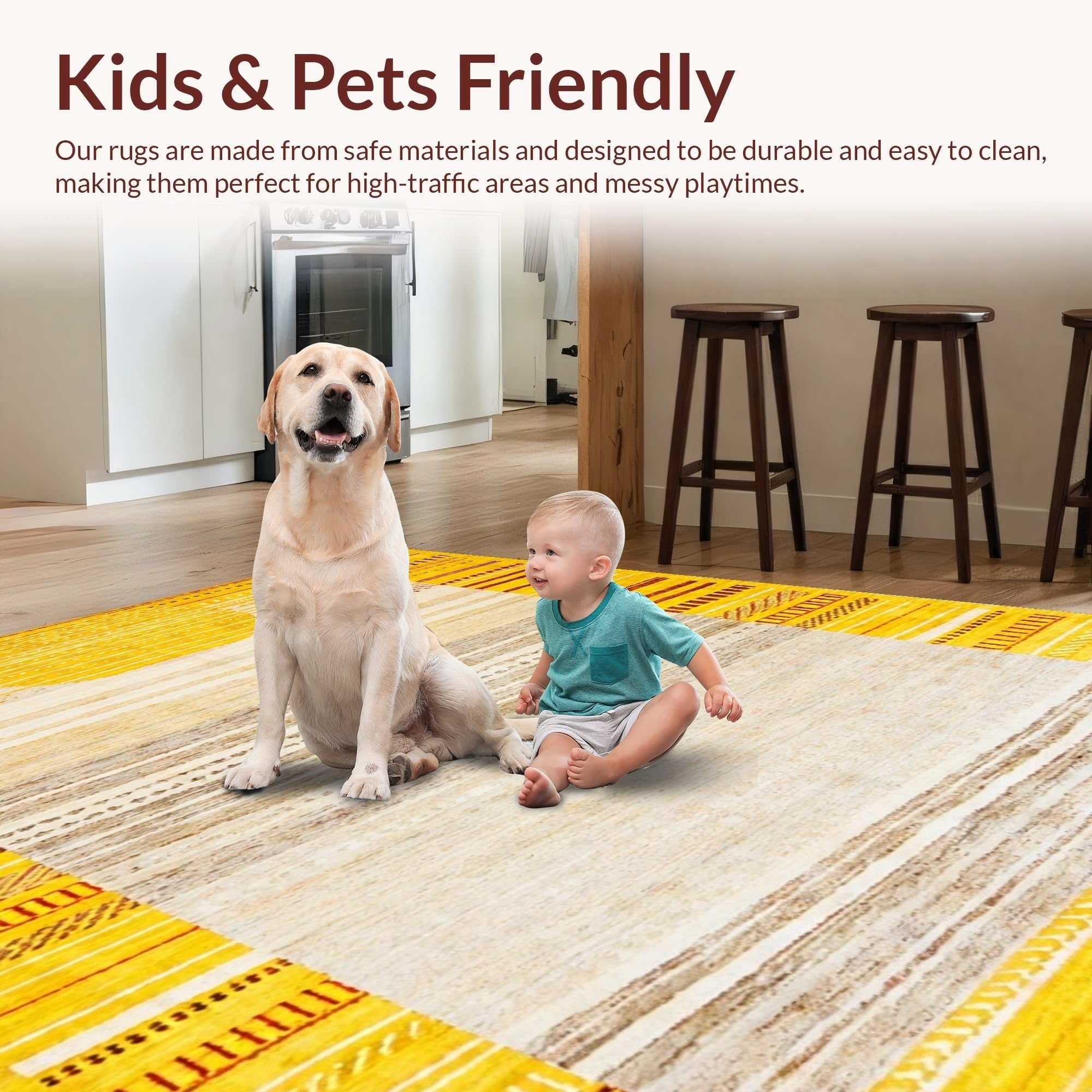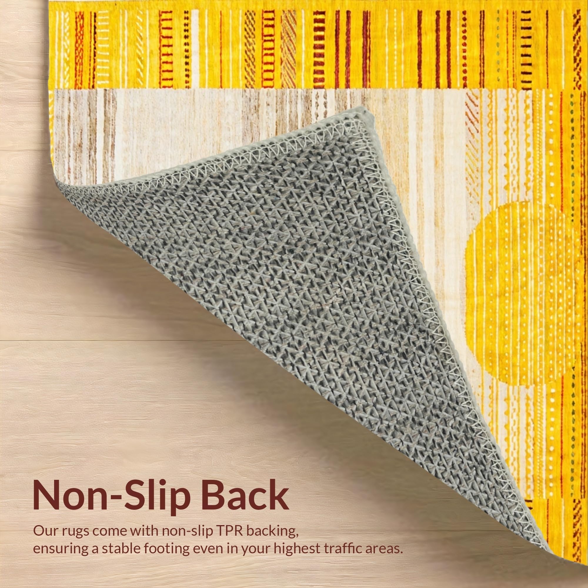 Ultra Soft Area Rug, Non Slip, Stain Resistant, Washable Area Rugs for Living Room, Bedroom, Joyful Multicolored Sun Pattern(Yellow) Overview: