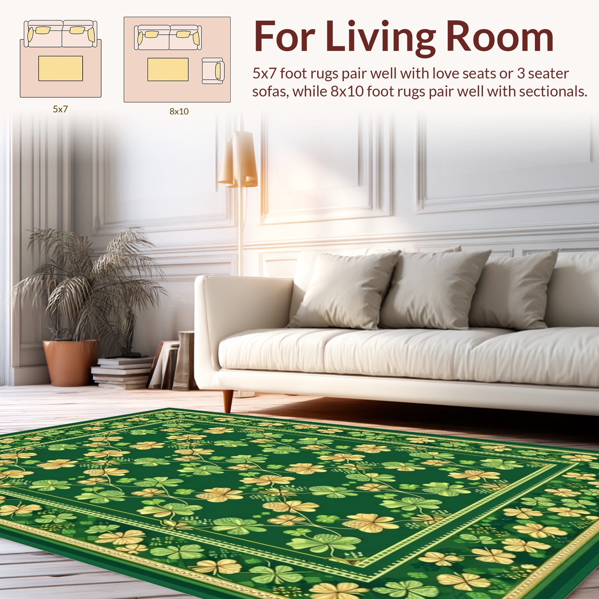 Flatwoven High Traffic Area Rug, Joyful Nature Inspired Artwork, Non Slip, Stain Resistant, Washable Area Rugs for Living Room, Bedroom (Green) Overview: