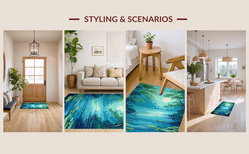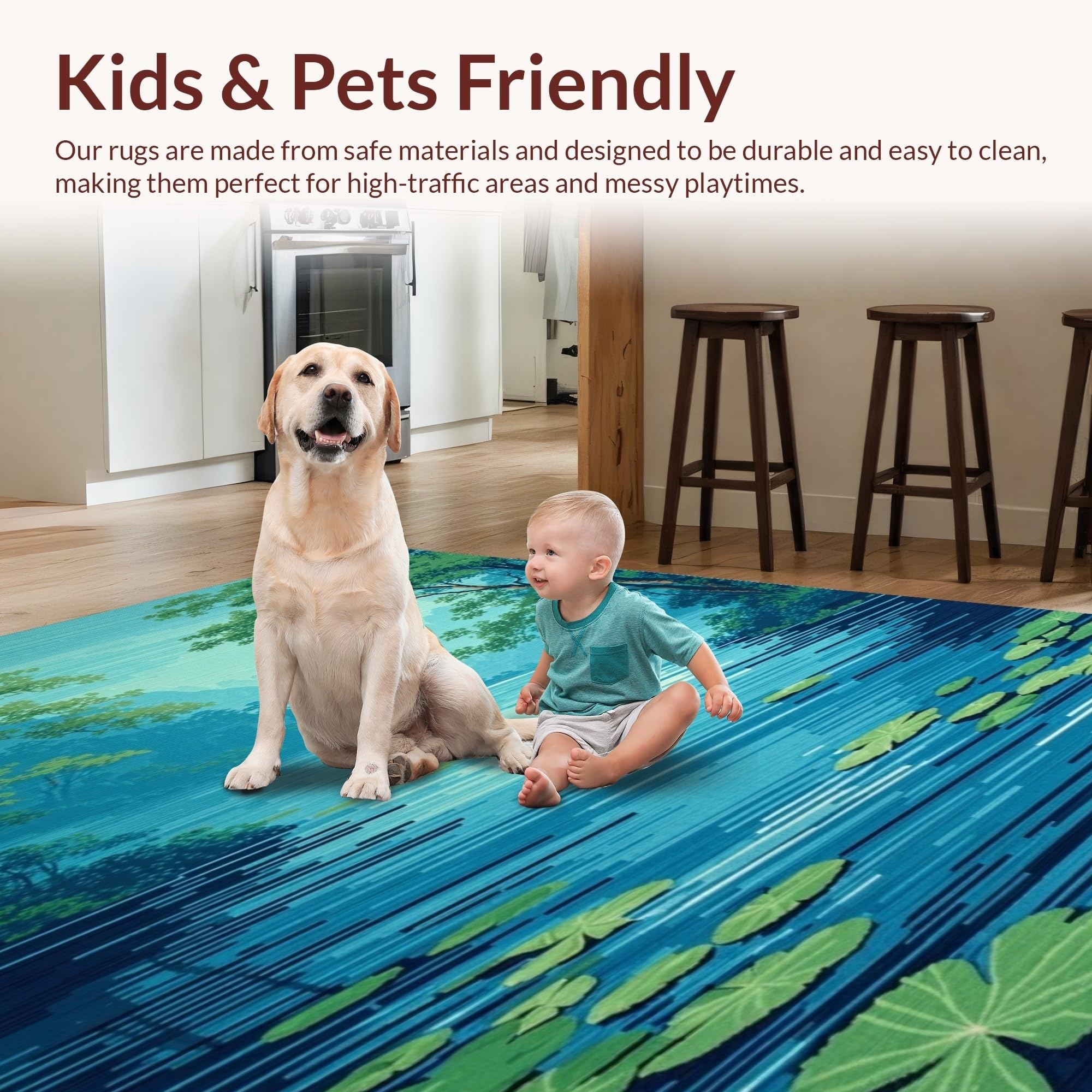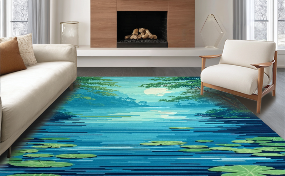 Ultra Soft Area Rug, Non Slip, Stain Resistant, Washable Area Rugs for Living Room, Bedroom, Joyful Nature-Themed Artistic Touch(Blue) Overview: