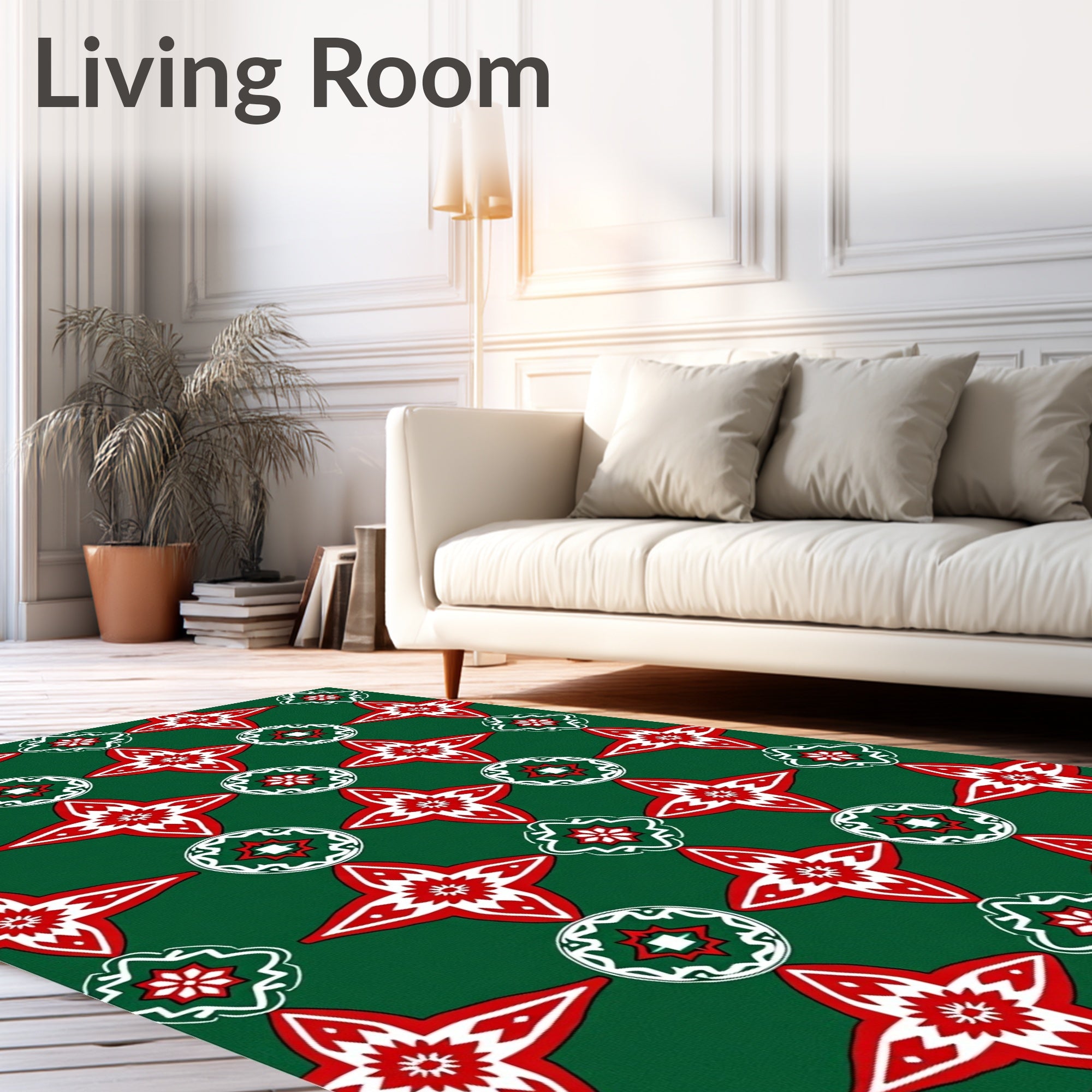 Ultra Soft Area Rug, Non Slip, Stain Resistant, Washable Area Rugs for Living Room, Bedroom, Joyful Nordic Yuletide Celebration Decorative Flooring(Green) Overview: