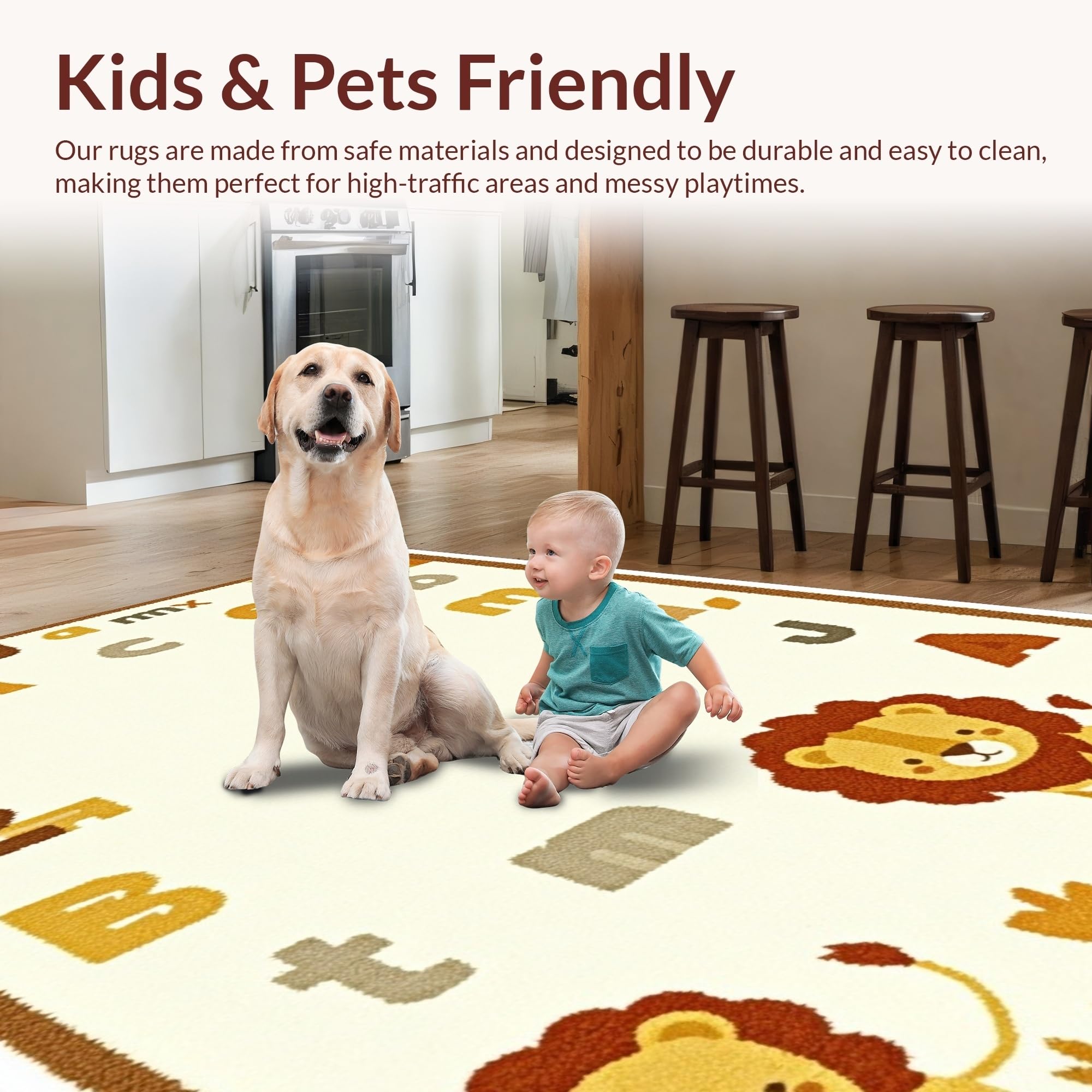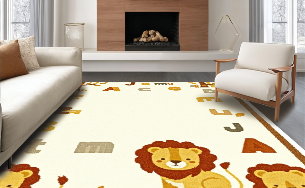 Ultra Soft Area Rug, Non Slip, Stain Resistant, Washable Area Rugs for Living Room, Bedroom, Joyful Nursery Learning Landscape(Beige) Overview: