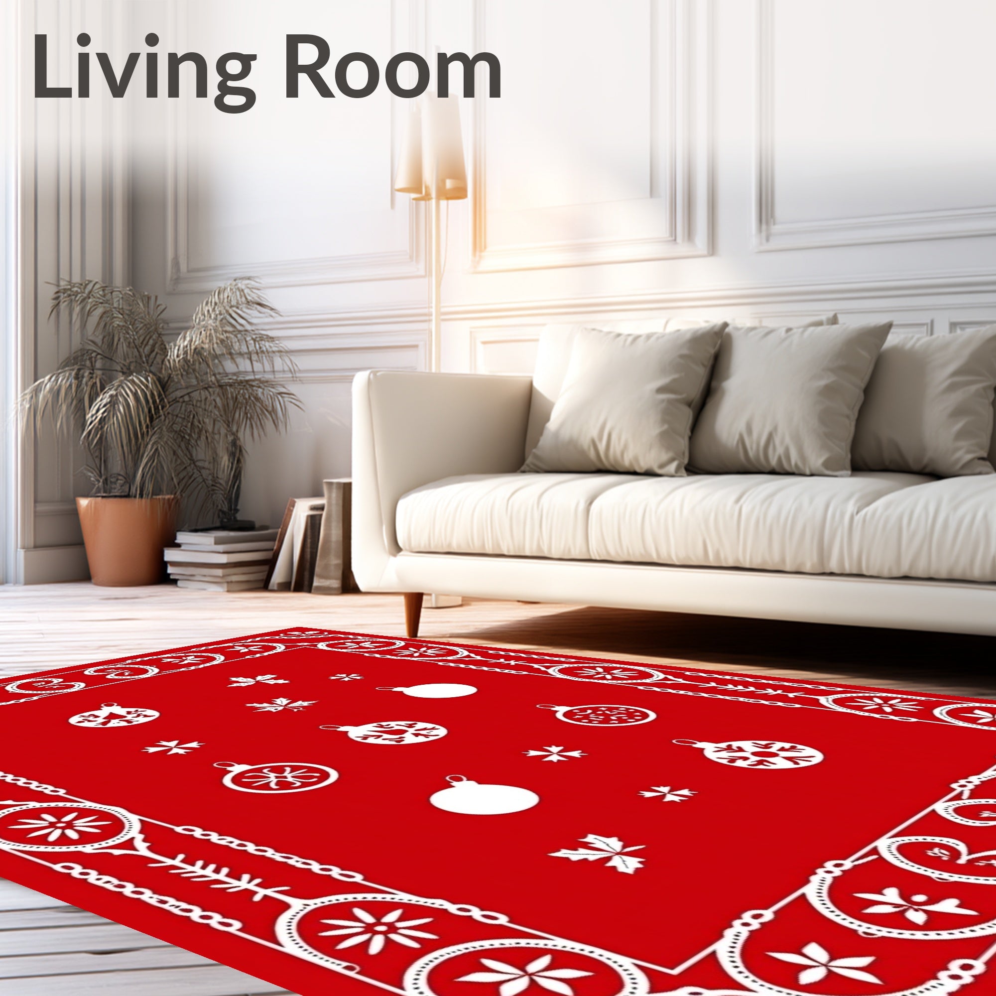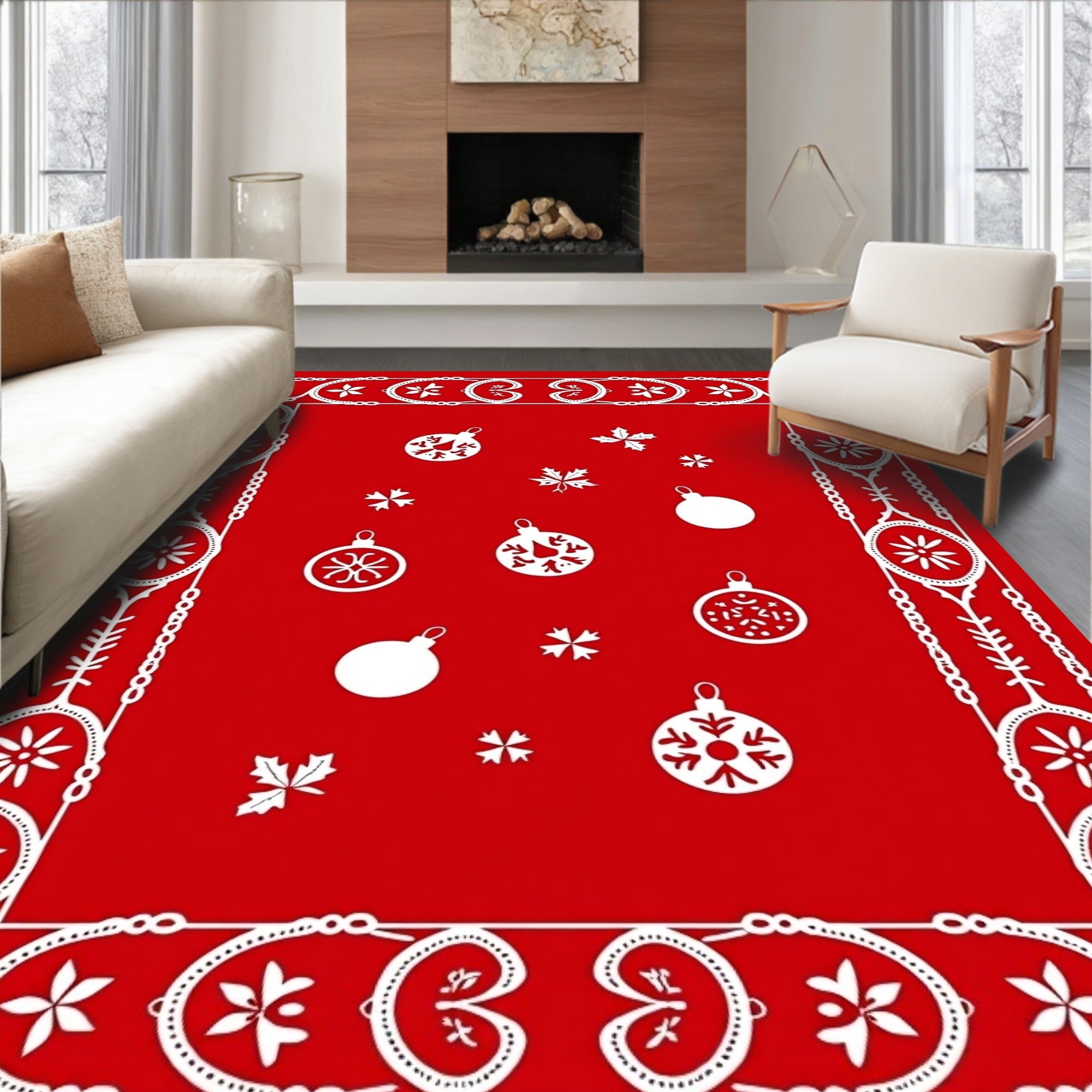 Ultra Soft Area Rug, Non Slip, Stain Resistant, Washable Area Rugs for Living Room, Bedroom, Joyful Ornament Seasonal Hearth Embellishment(Red) Overview: