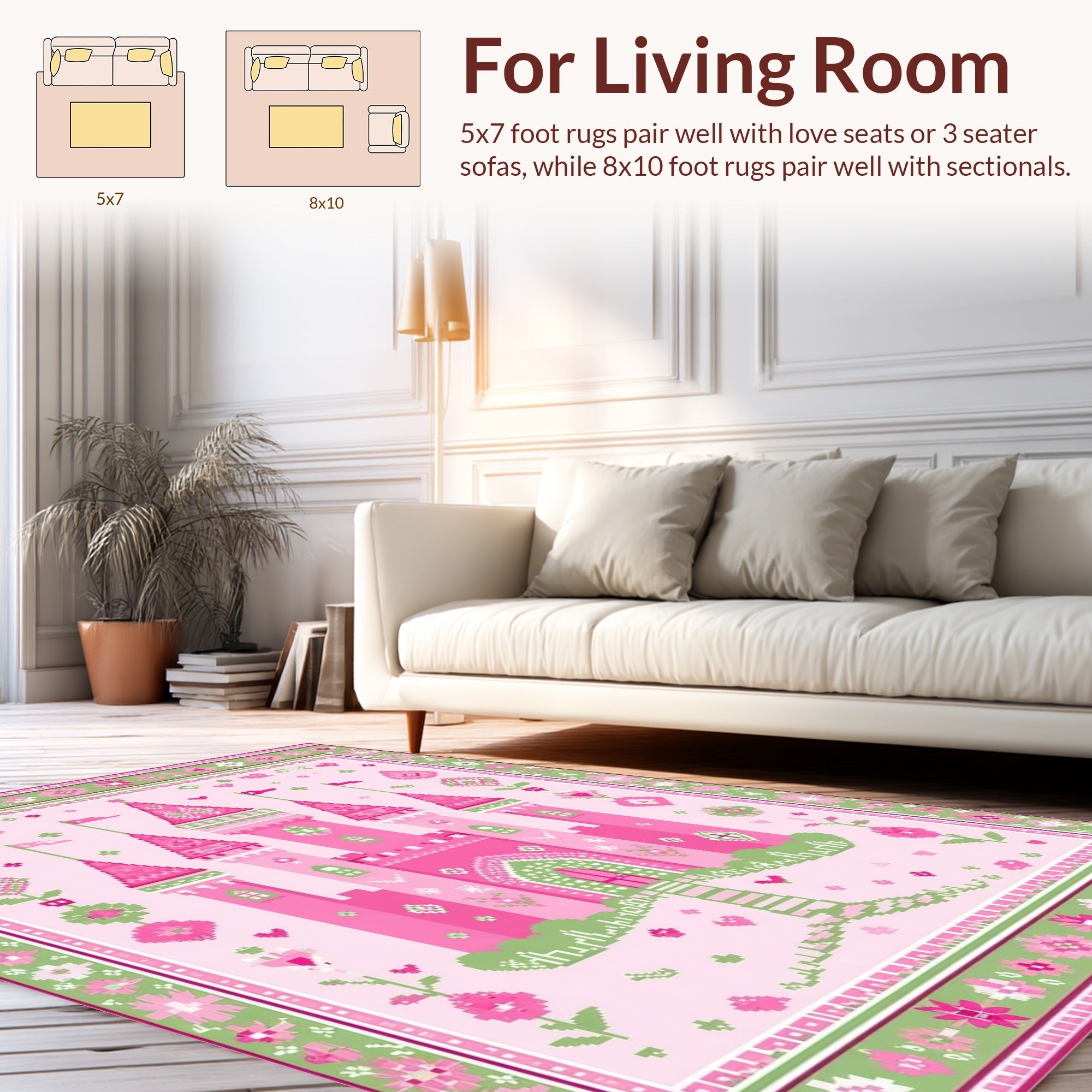 Flatwoven High Traffic Area Rug, Joyful Pastel Dreamscape Design, Non Slip, Stain Resistant, Washable Area Rugs for Living Room, Bedroom (Pink) Overview: