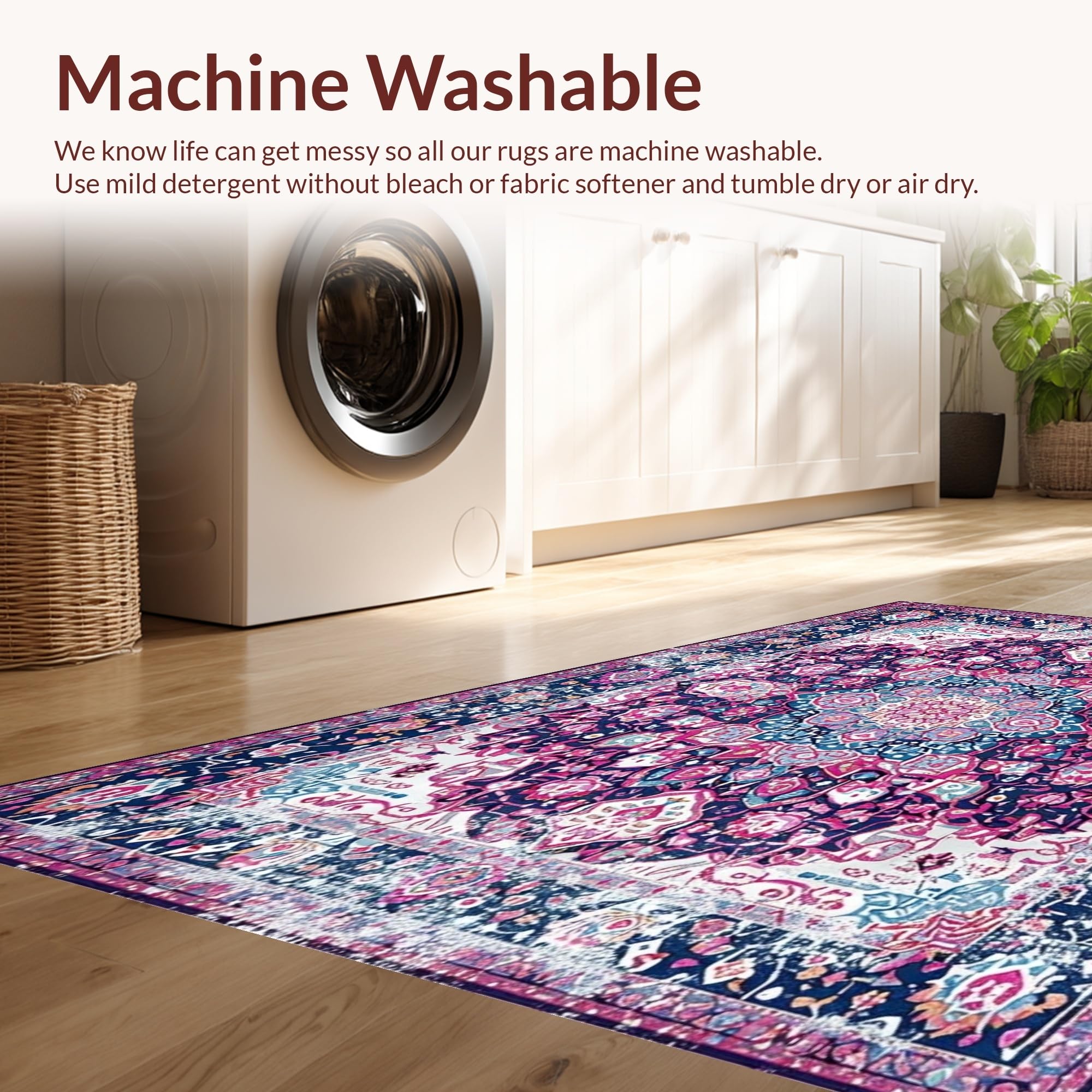 - Machine Washable: Our rugs can be easily thrown in the wash machine.