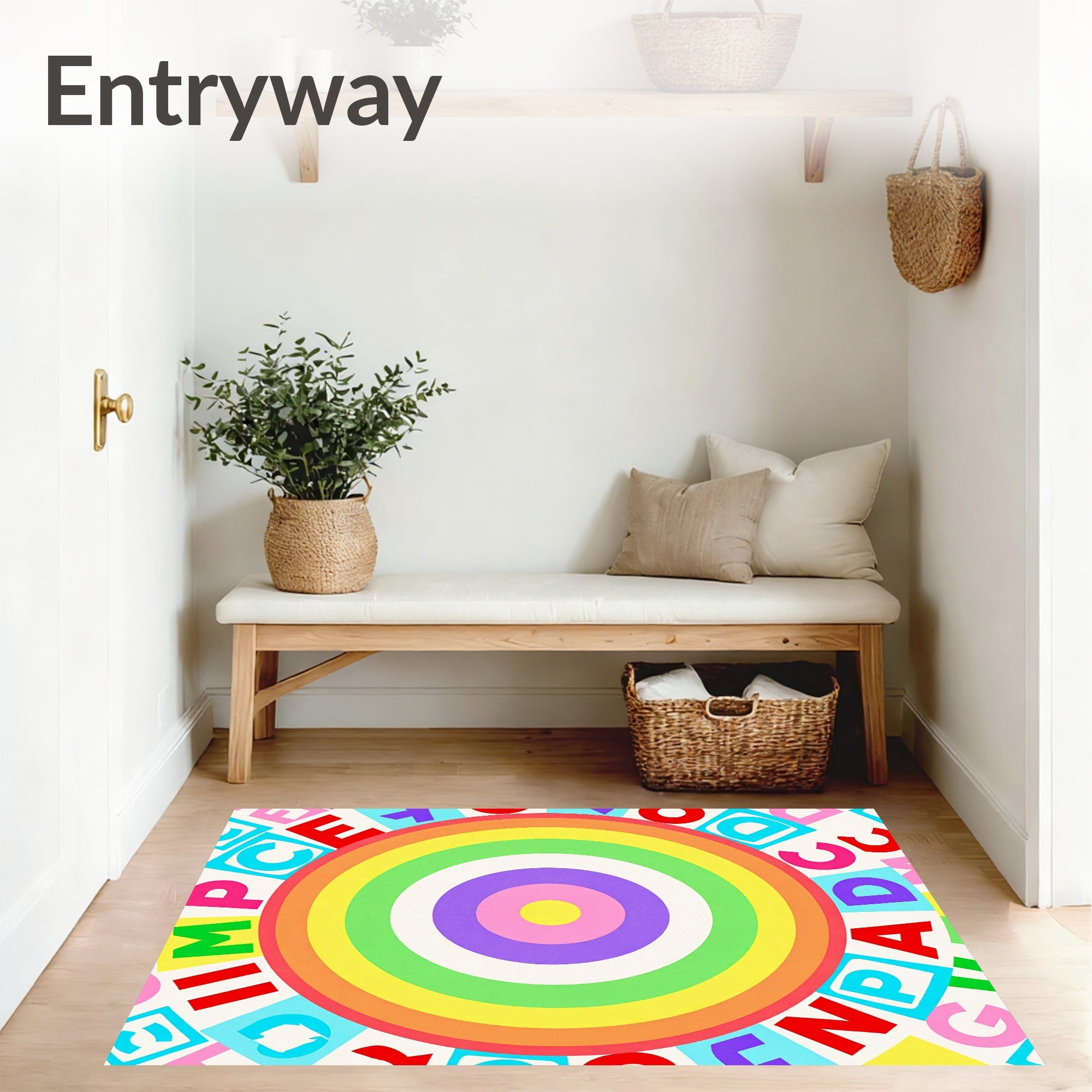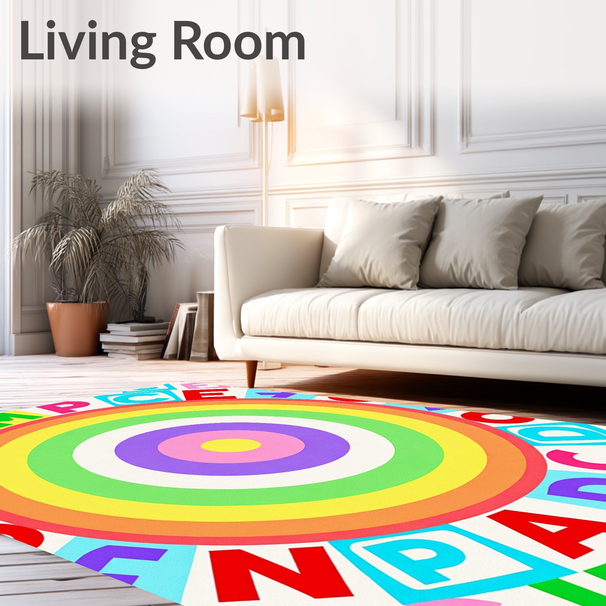 Ultra Soft Area Rug, Non Slip, Stain Resistant, Washable Area Rugs for Living Room, Bedroom, Joyful Preschool ABC Discovery Circular Early Development(Red) Overview: