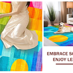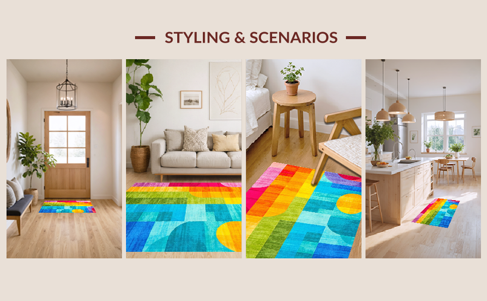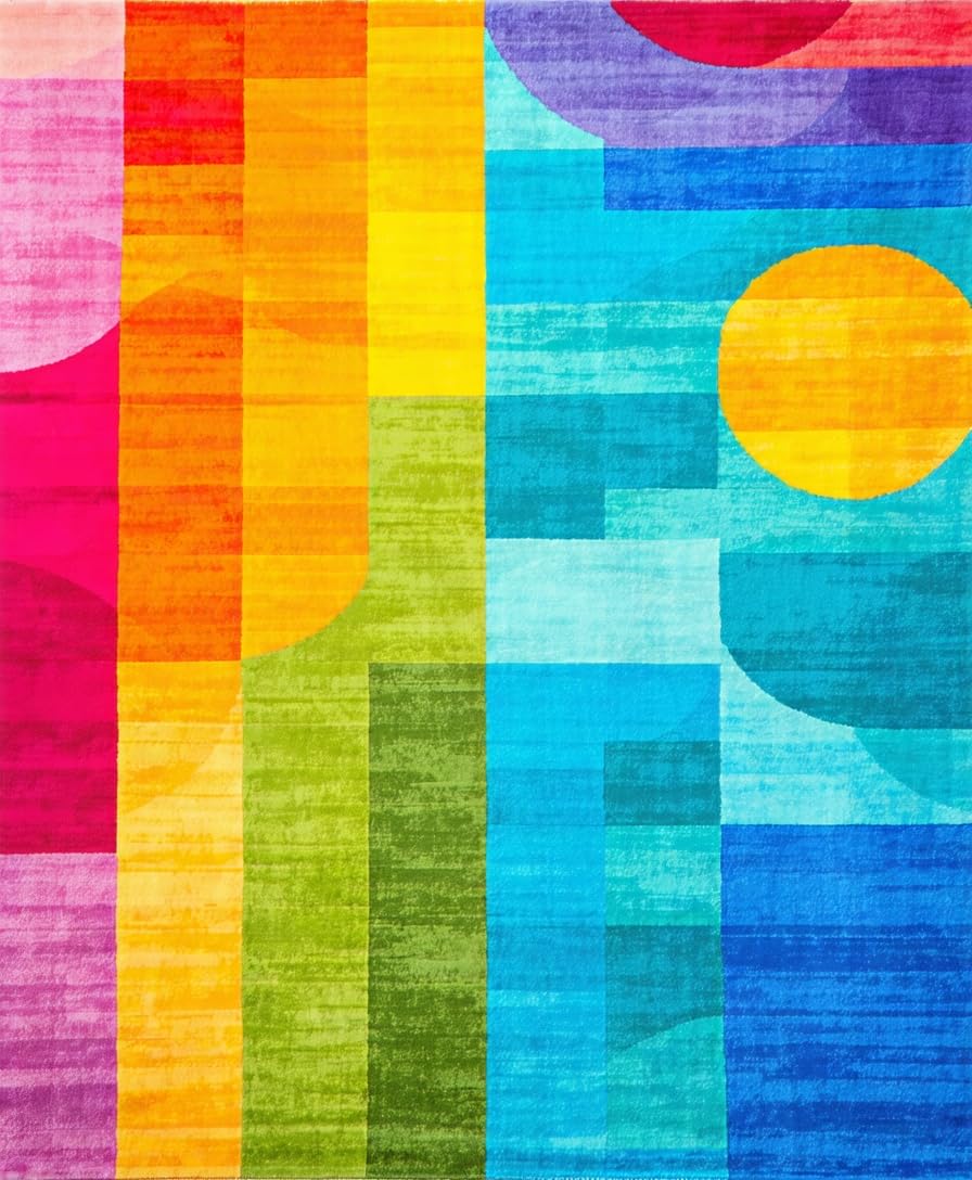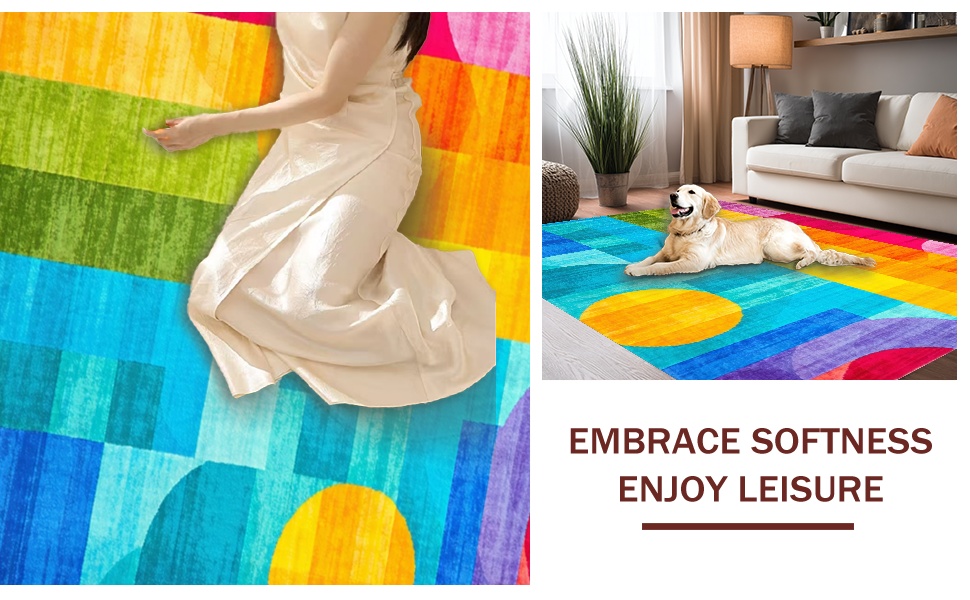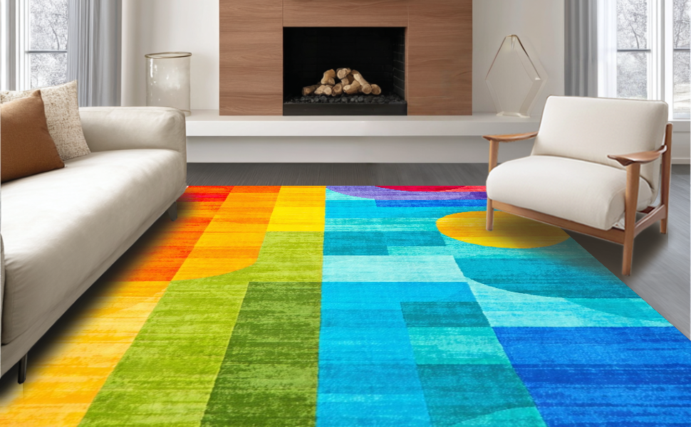 Ultra Soft Area Rug, Non Slip, Stain Resistant, Washable Area Rugs for Living Room, Bedroom, Joyful Rainbow Radiant Design(Blue) Overview: