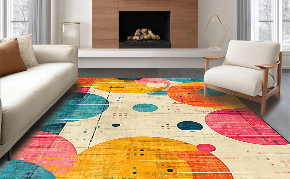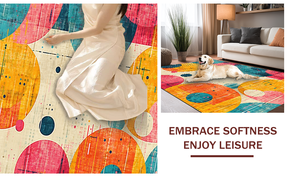 Ultra Soft Area Rug, Non Slip, Stain Resistant, Washable Area Rugs for Living Room, Bedroom, Joyful Round Interactive Floor Cushions(Yellow) Overview: