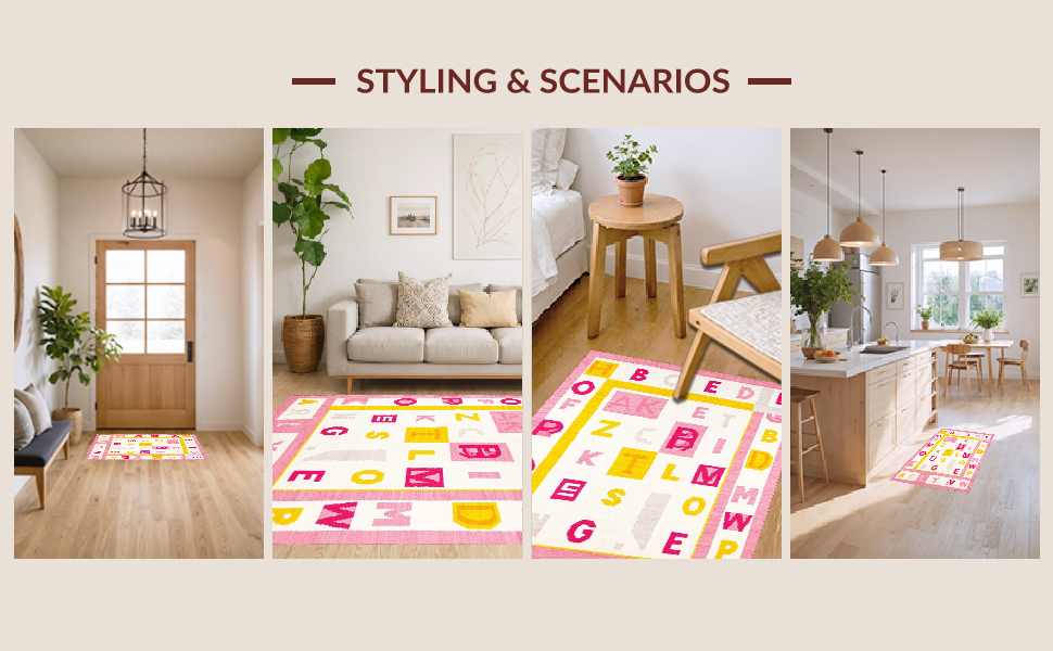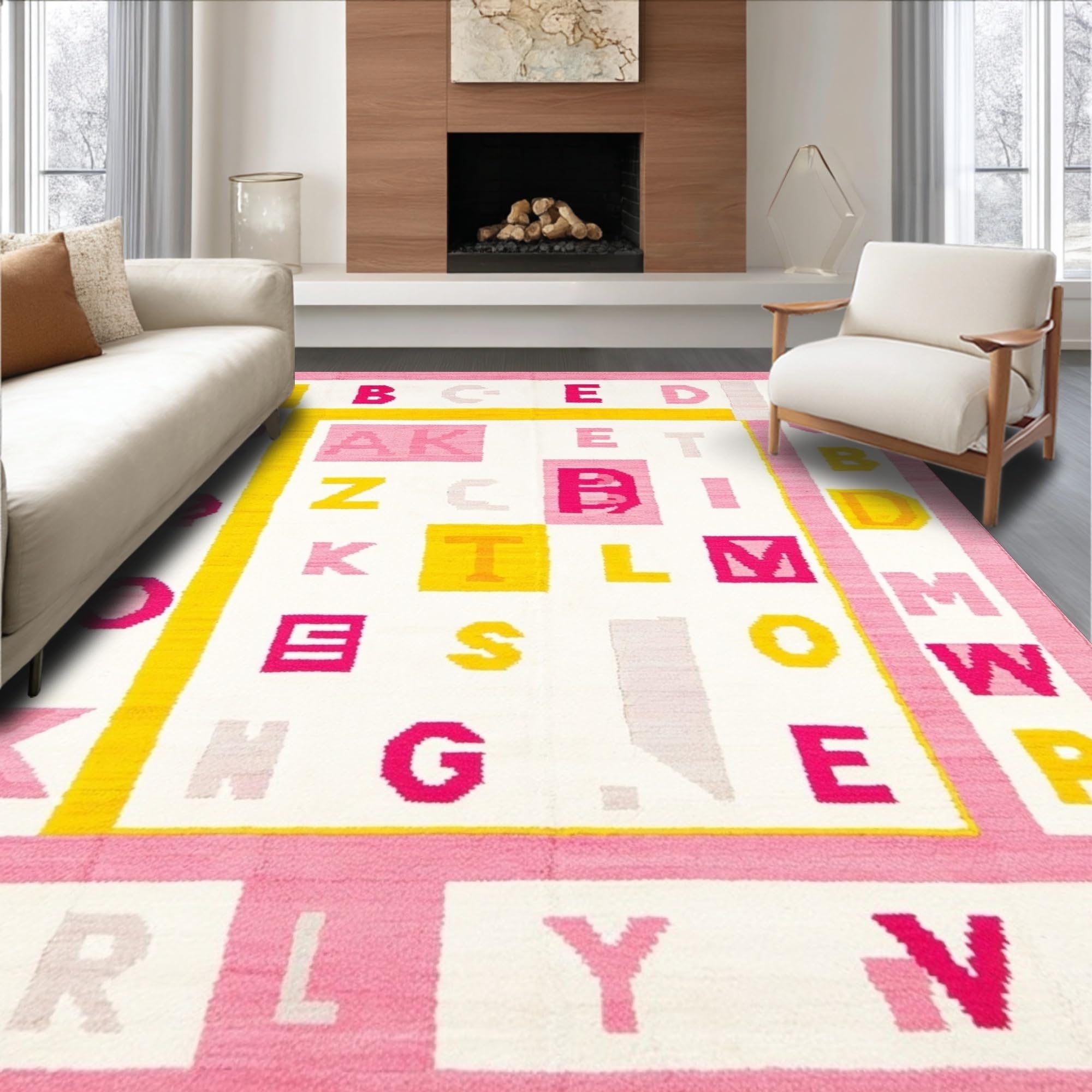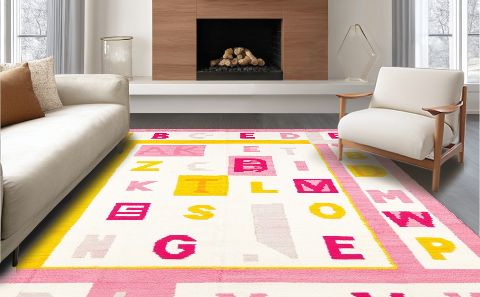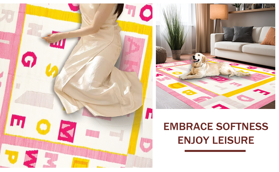 Ultra Soft Area Rug, Non Slip, Stain Resistant, Washable Area Rugs for Living Room, Bedroom, Joyful Round Learning Aesthetic(Pink) Overview: