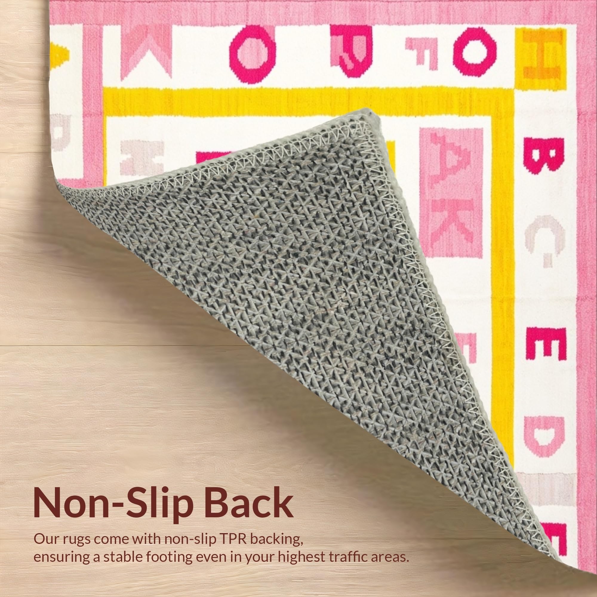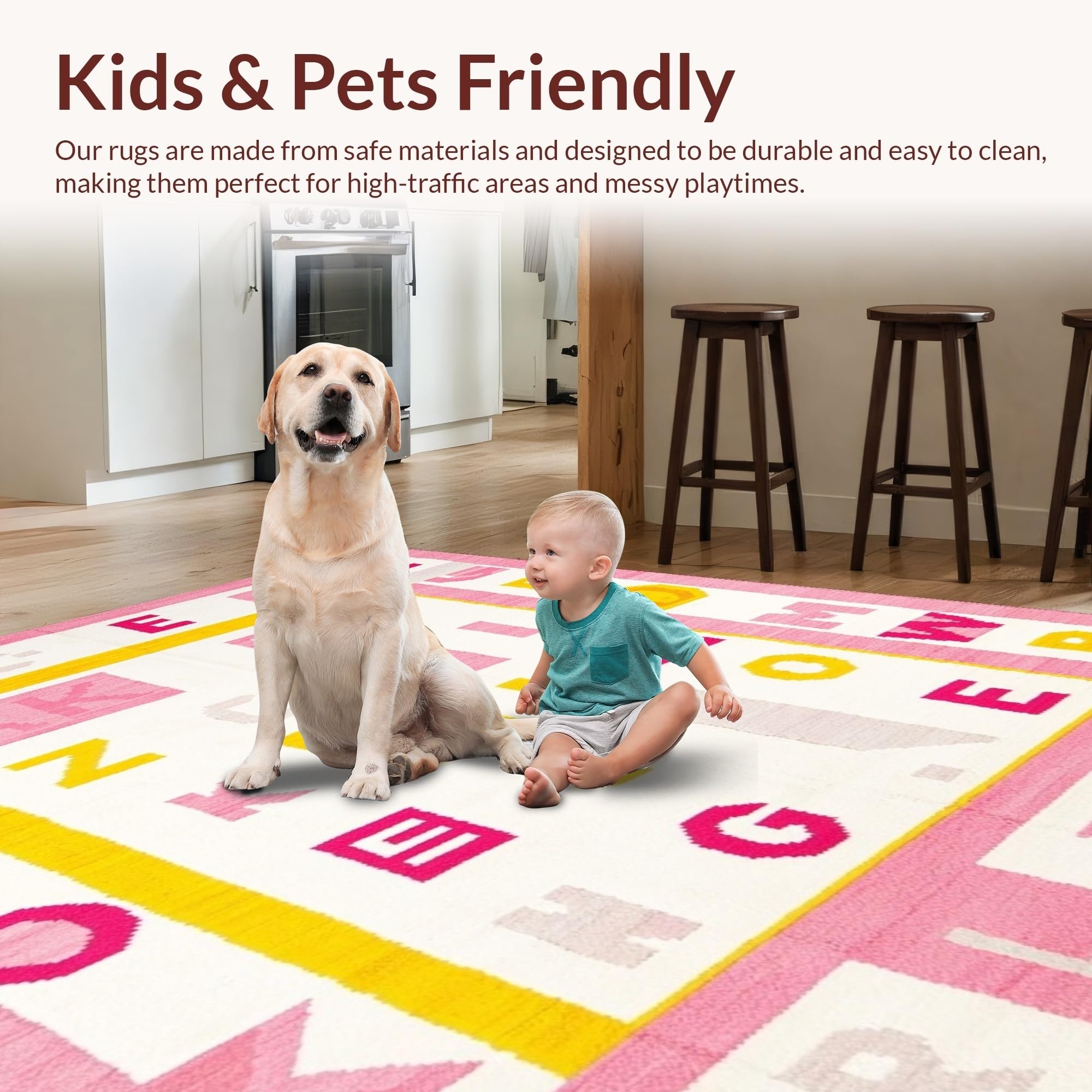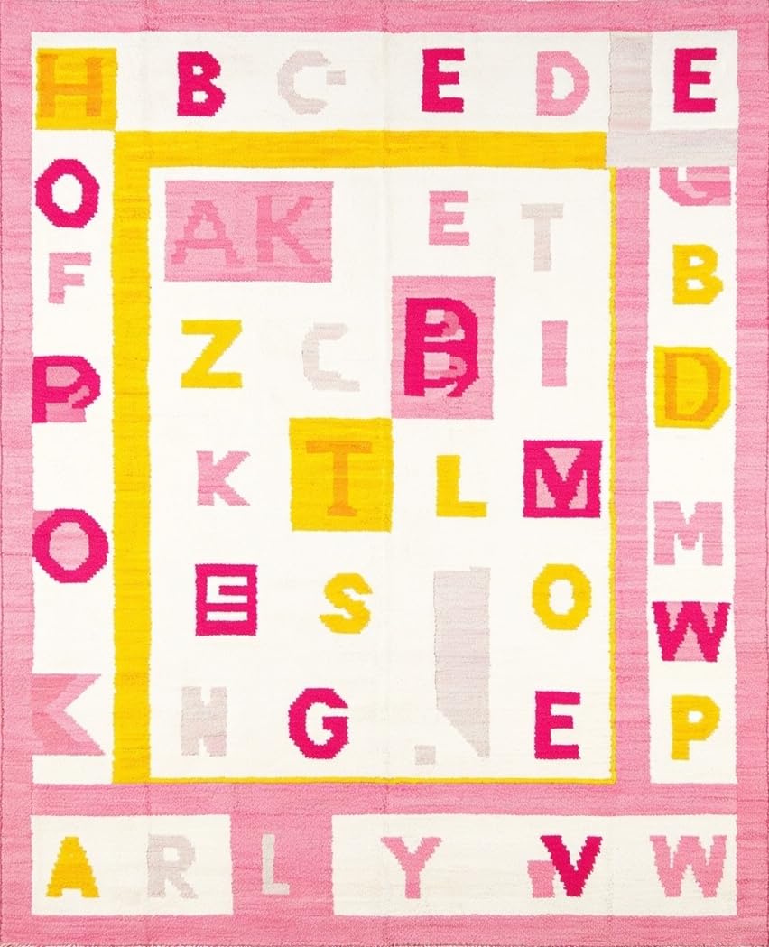 Ultra Soft Area Rug, Non Slip, Stain Resistant, Washable Area Rugs for Living Room, Bedroom, Joyful Round Learning Aesthetic(Pink) Overview: