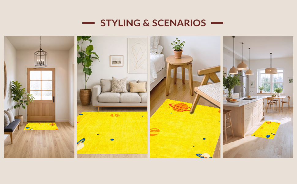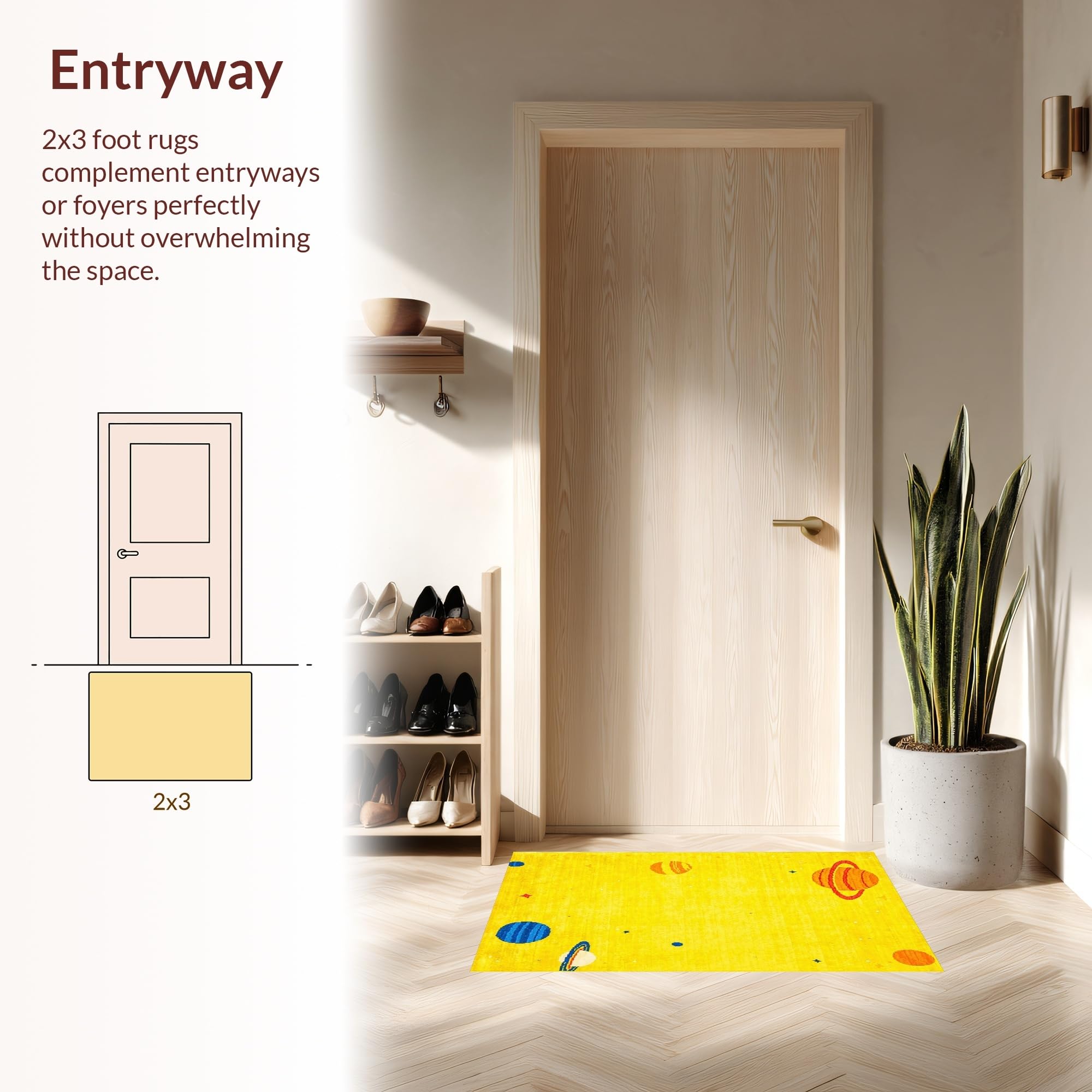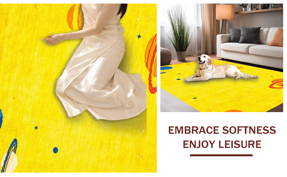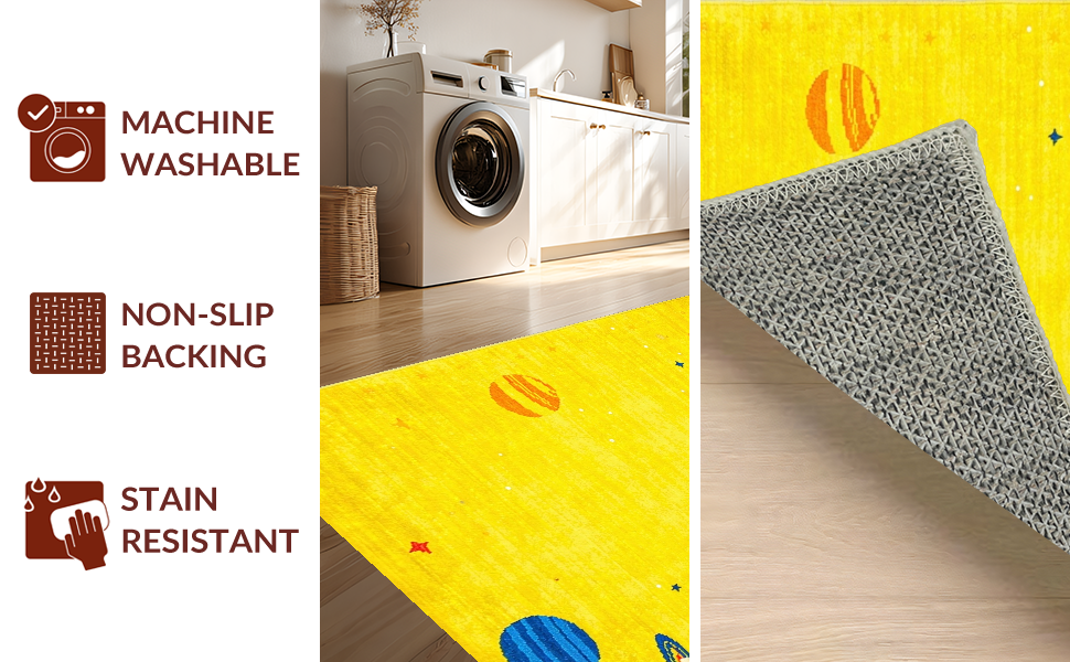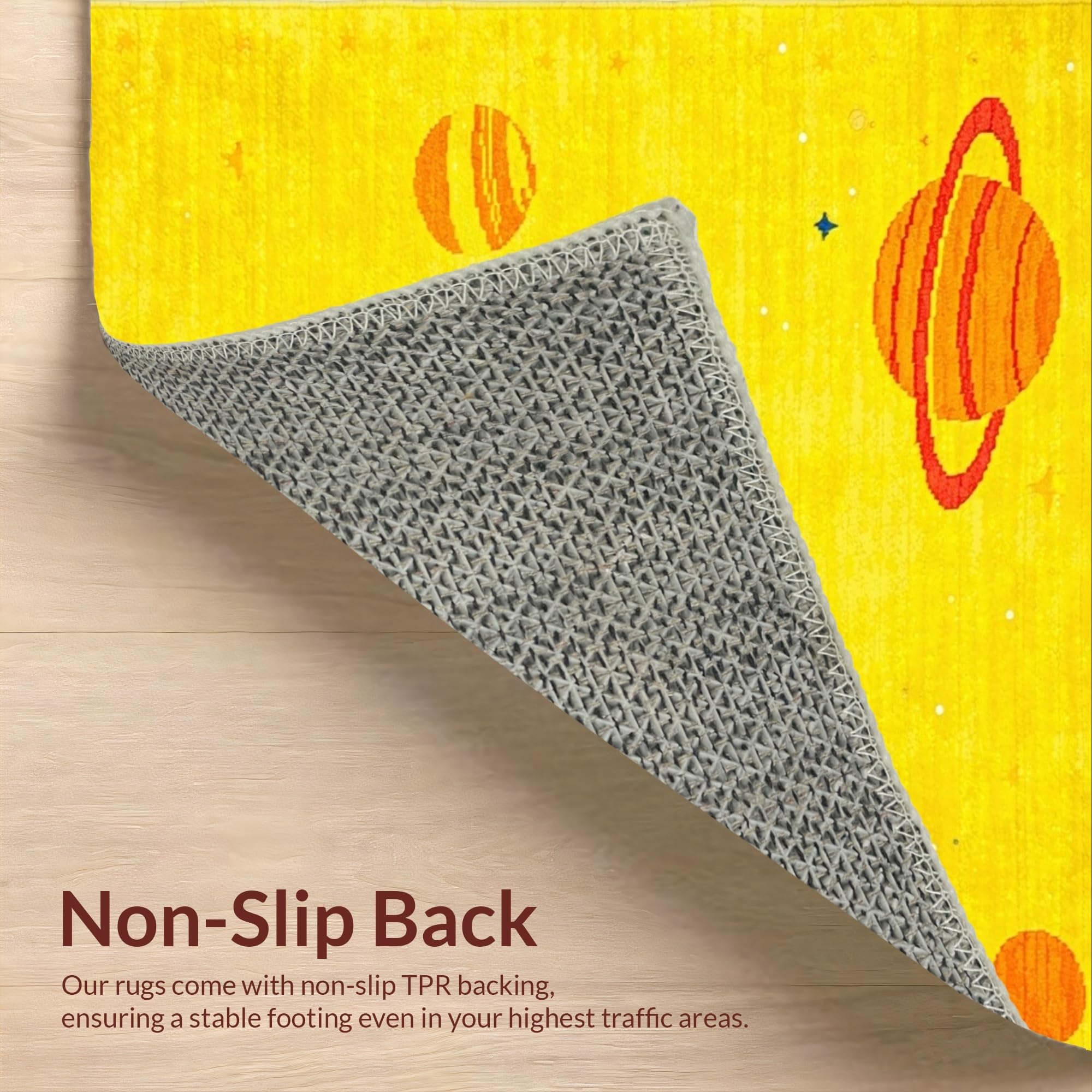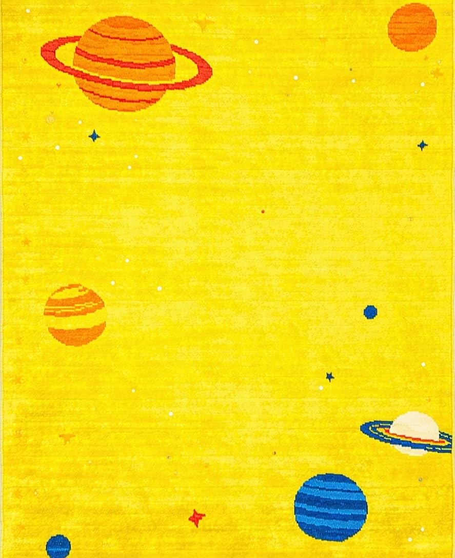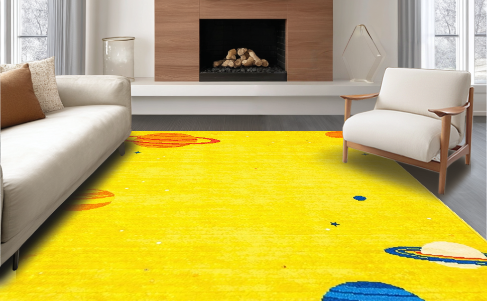 Ultra Soft Area Rug, Non Slip, Stain Resistant, Washable Area Rugs for Living Room, Bedroom, Joyful Round Planetary Design(Yellow) Overview: