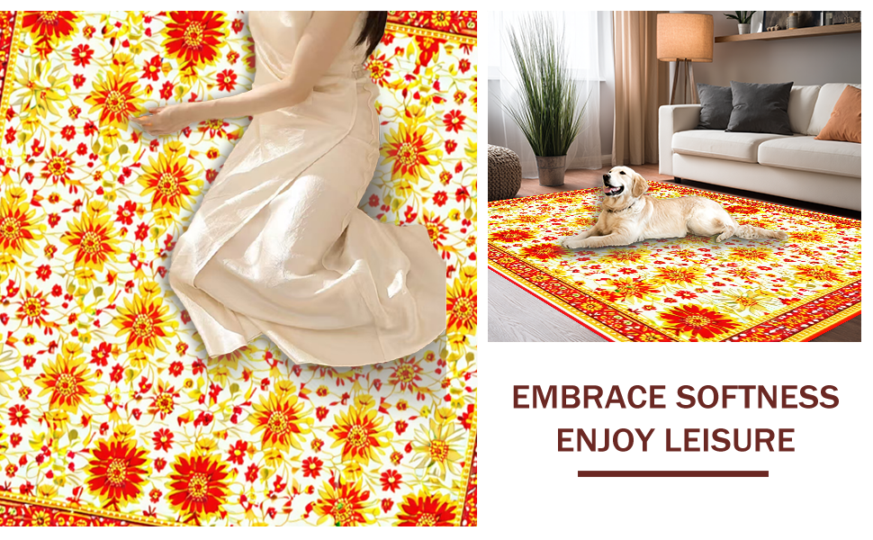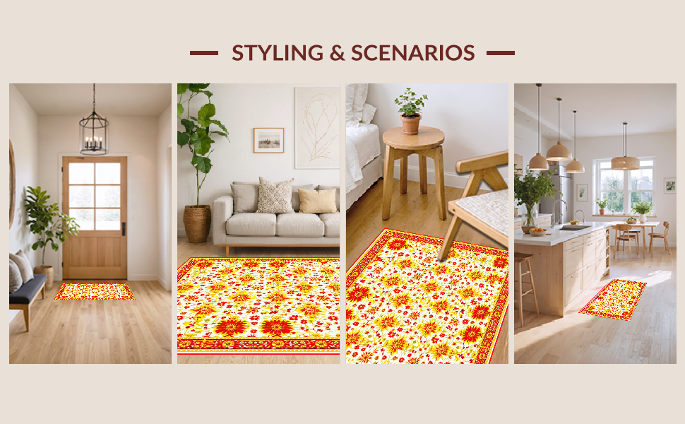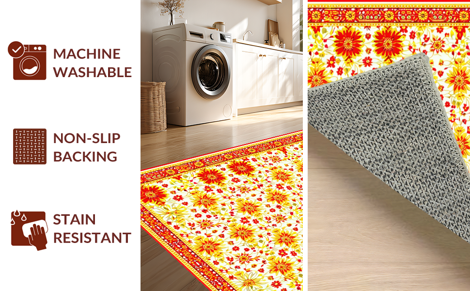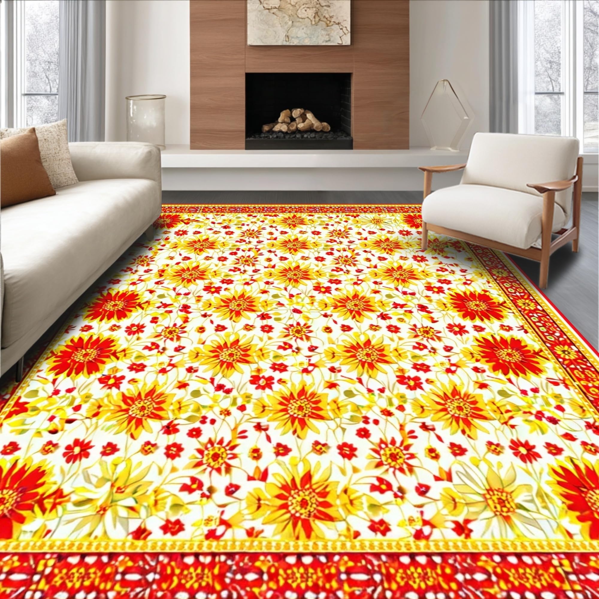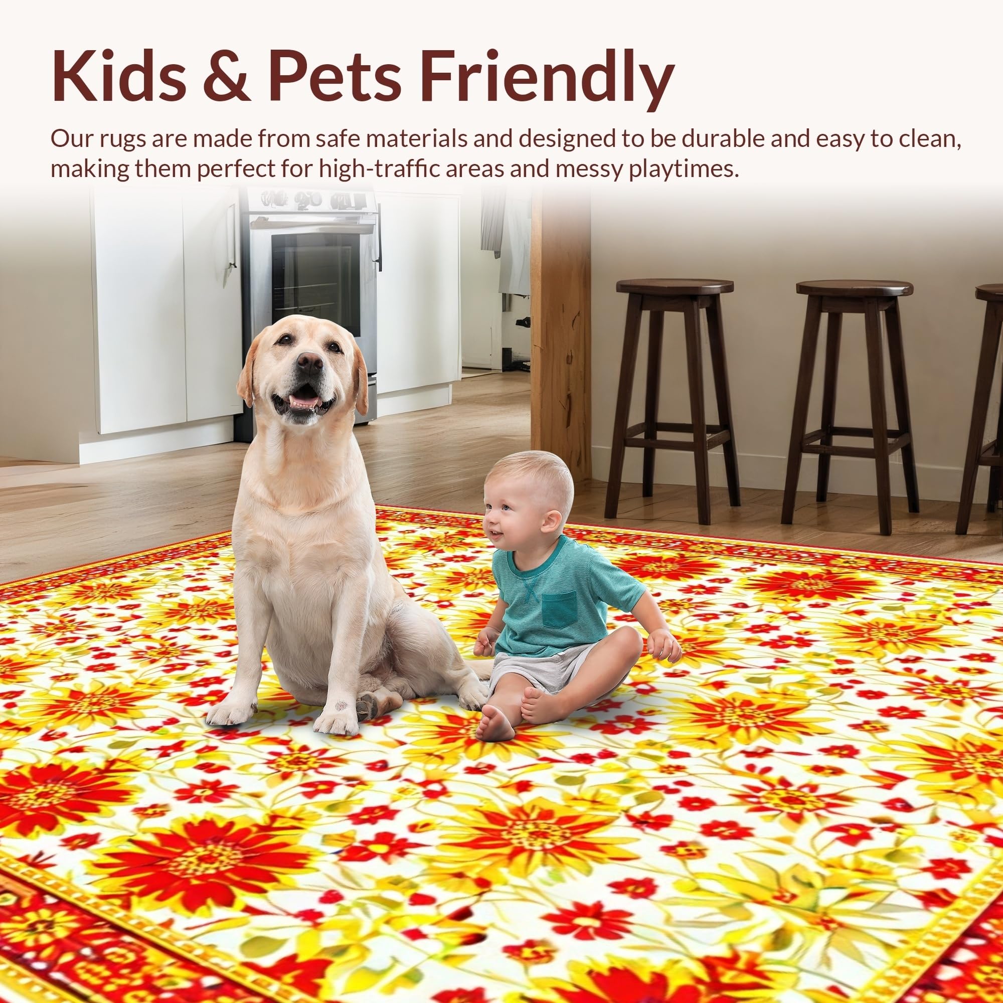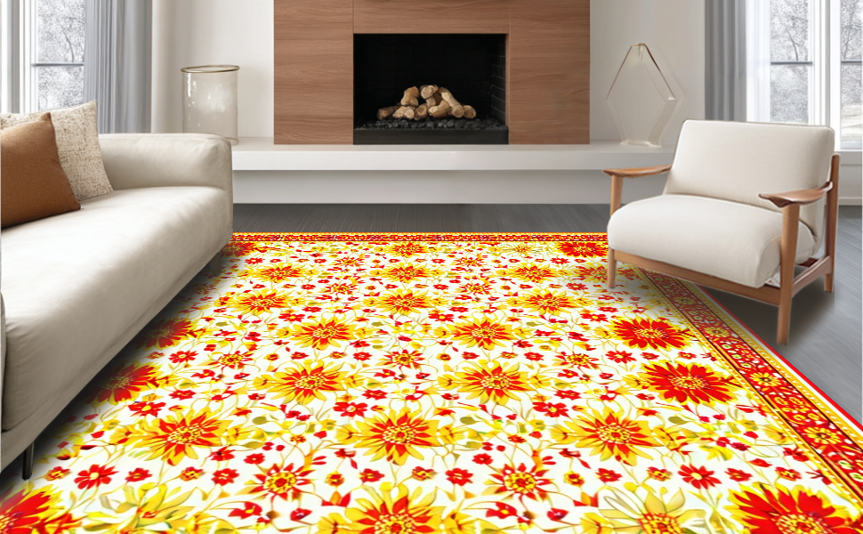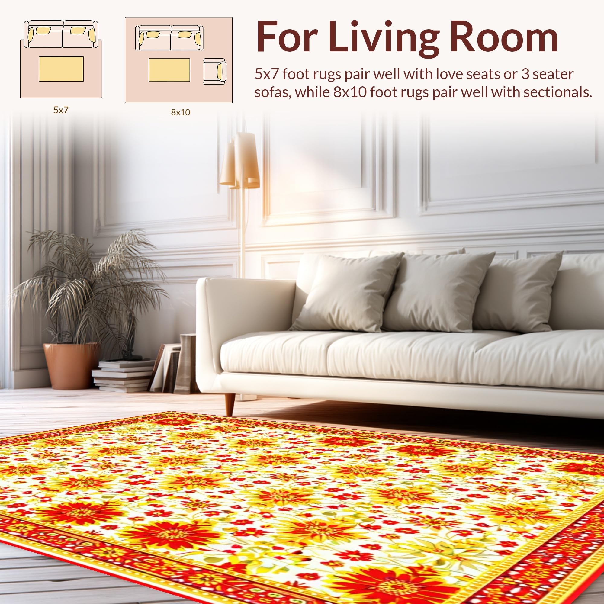 Ultra Soft Area Rug, Non Slip, Stain Resistant, Washable Area Rugs for Living Room, Bedroom, Joyful Rustic Bloom Design(Red) Overview: