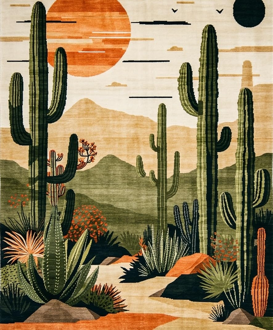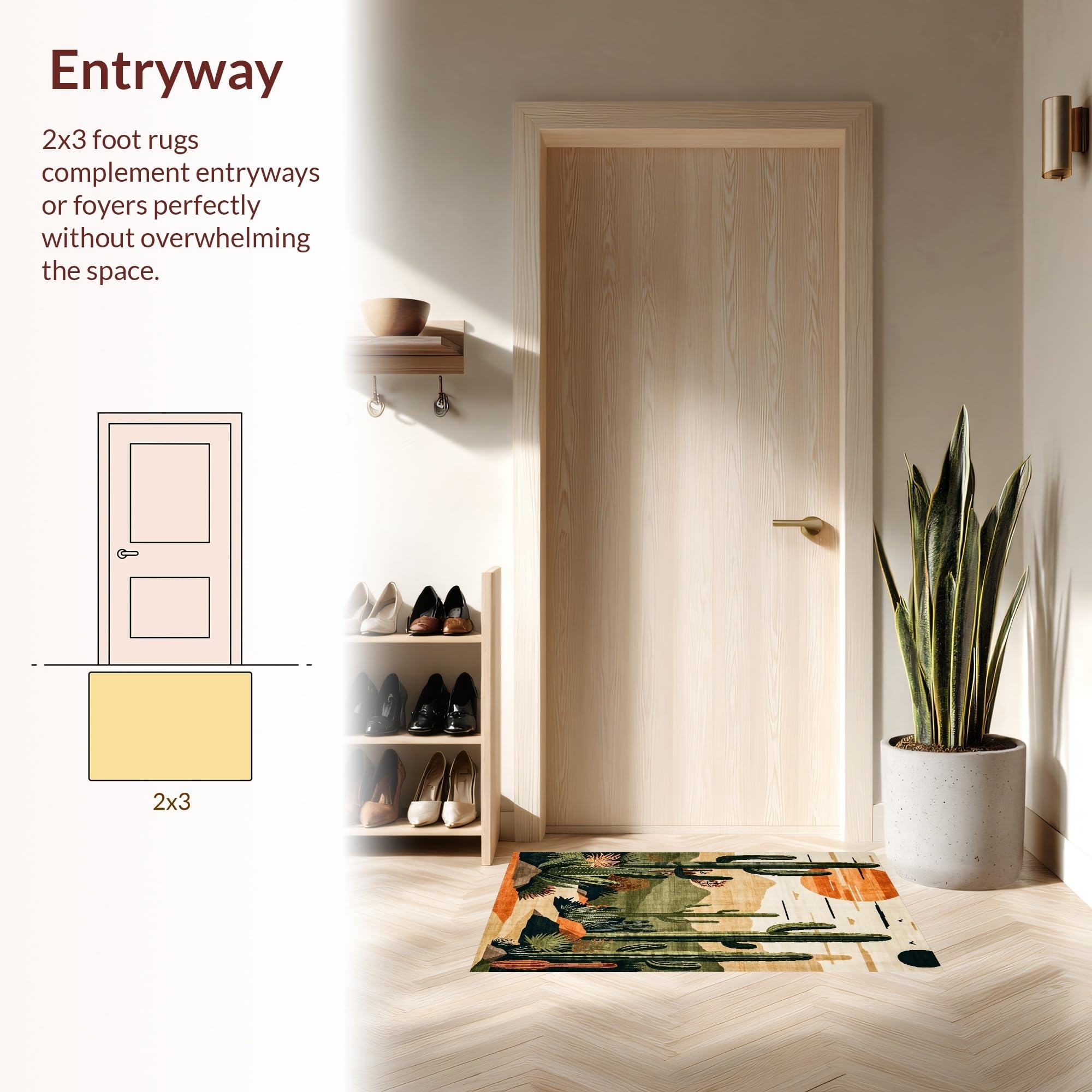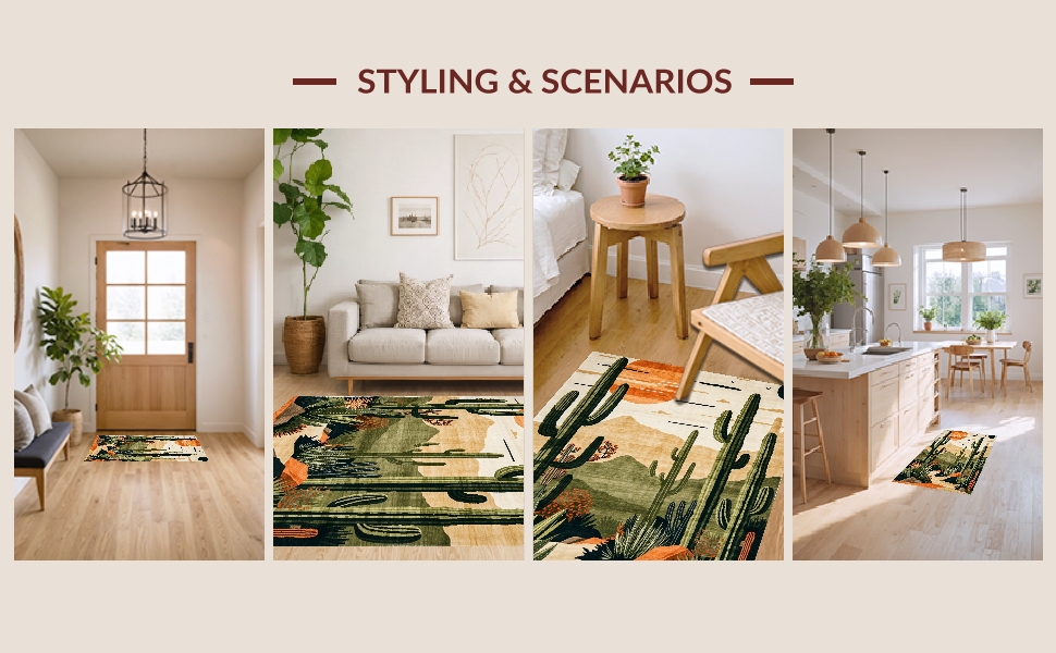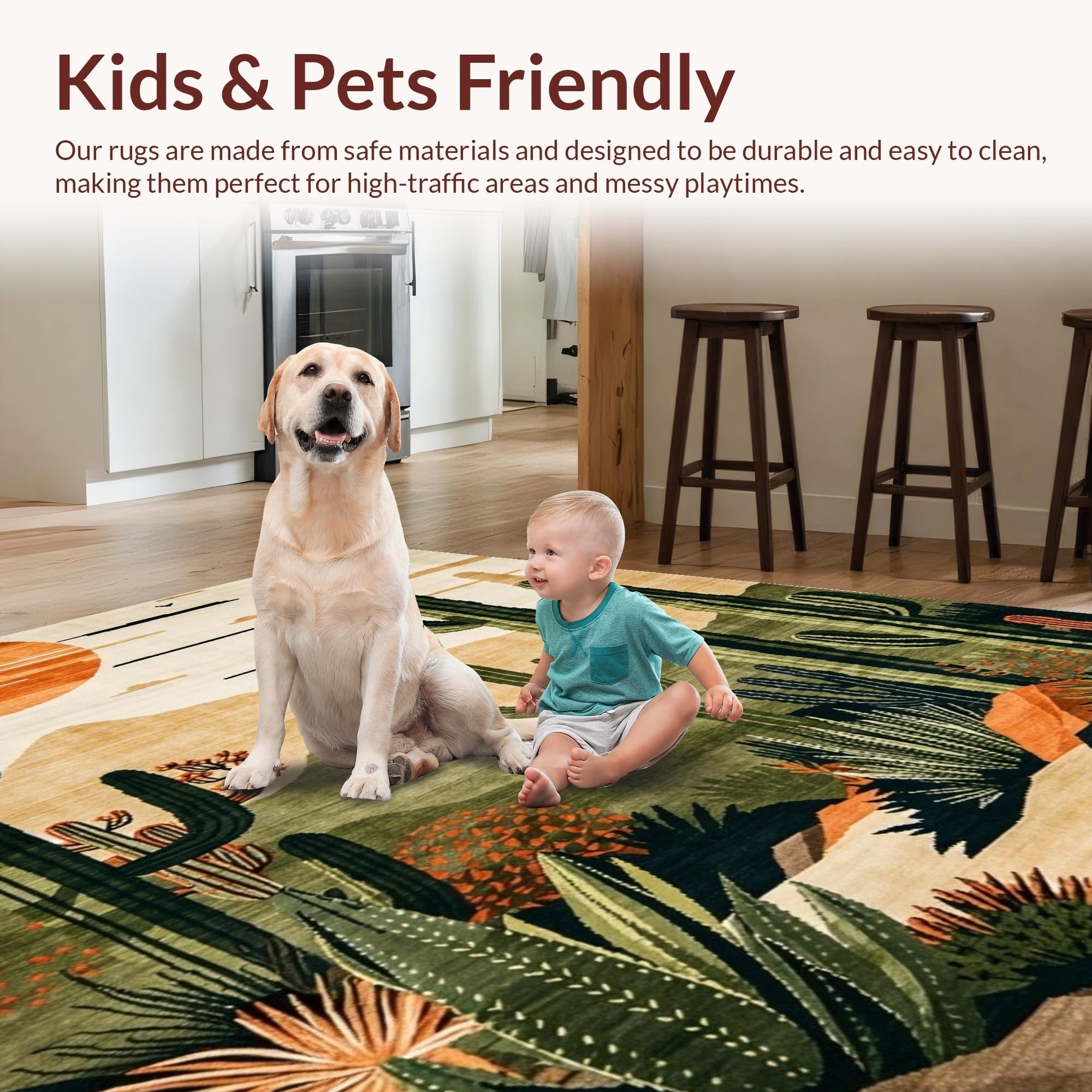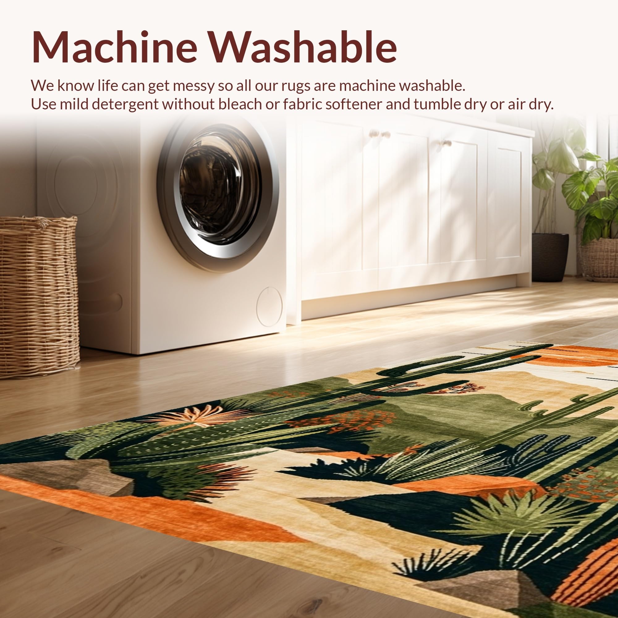 Ultra Soft Area Rug, Non Slip, Stain Resistant, Washable Area Rugs for Living Room, Bedroom, Joyful Rustic Cactus Imagery(Beige) Overview: