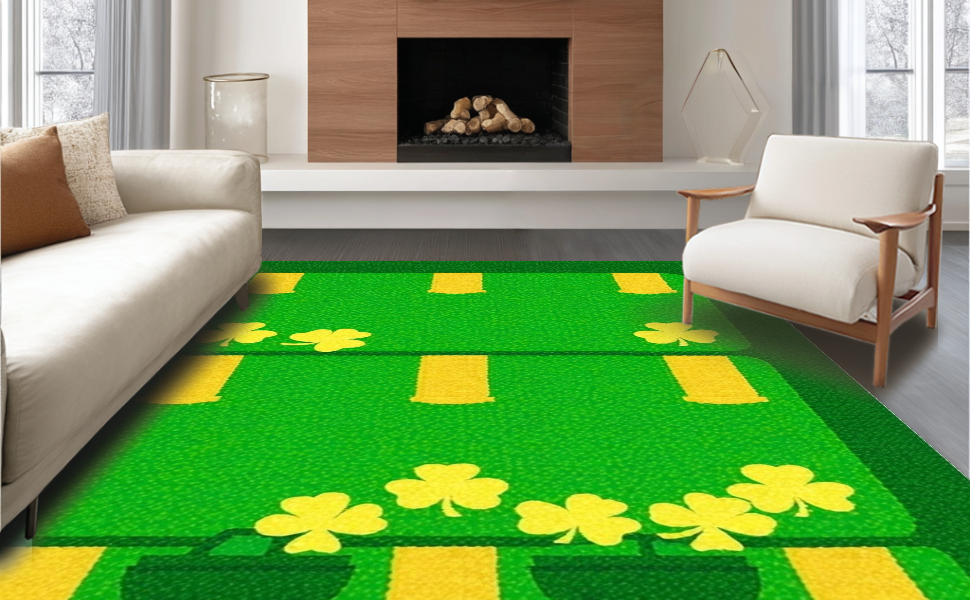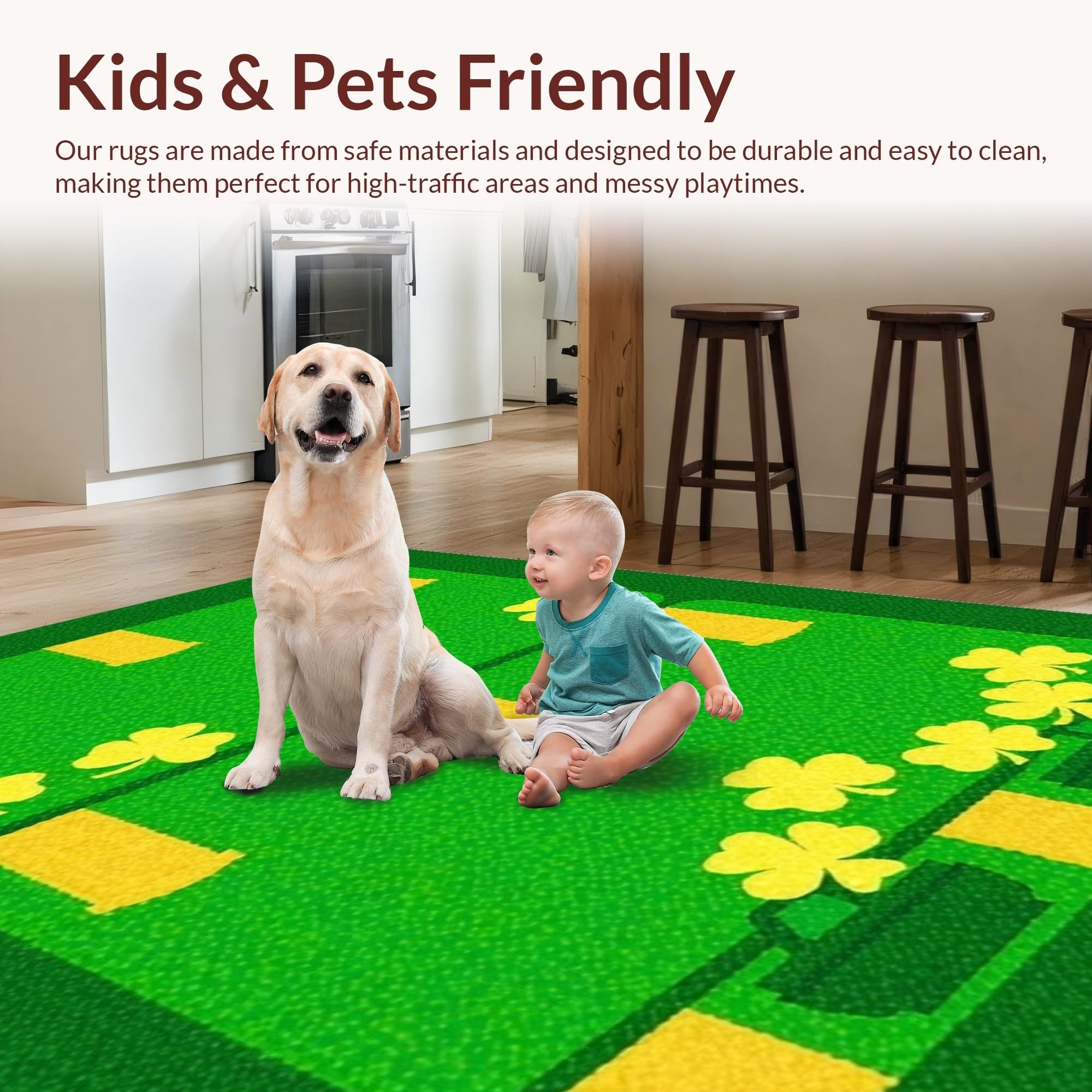 Ultra Soft Area Rug, Non Slip, Stain Resistant, Washable Area Rugs for Living Room, Bedroom, Joyful Rustic Truck Imagery(Green) Overview:
