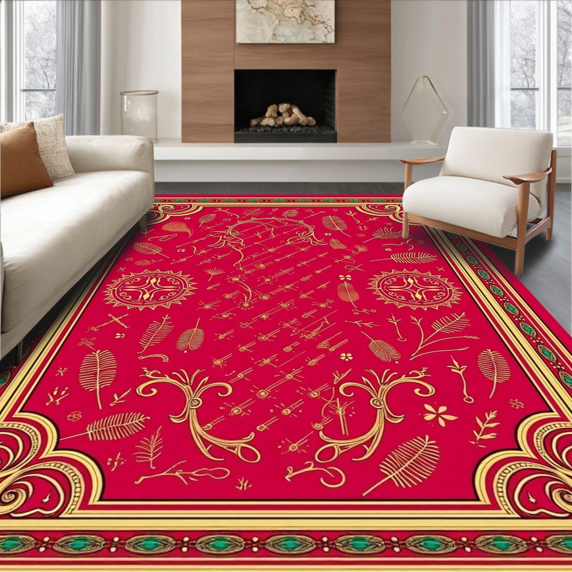 Ultra Soft Area Rug, Non Slip, Stain Resistant, Washable Area Rugs for Living Room, Bedroom, Joyful Season Magnificent Artistic Statement(Red) Overview: