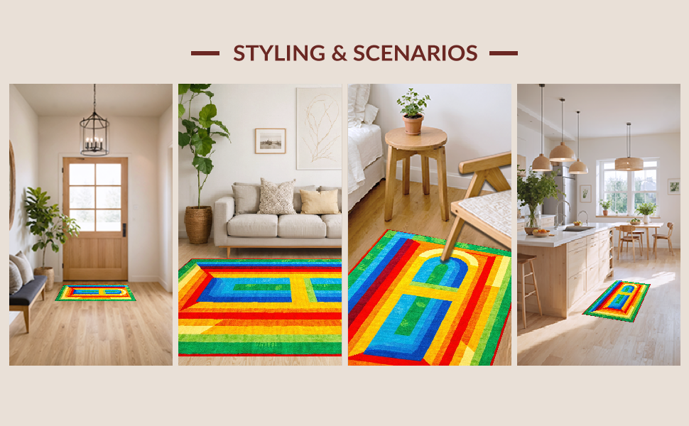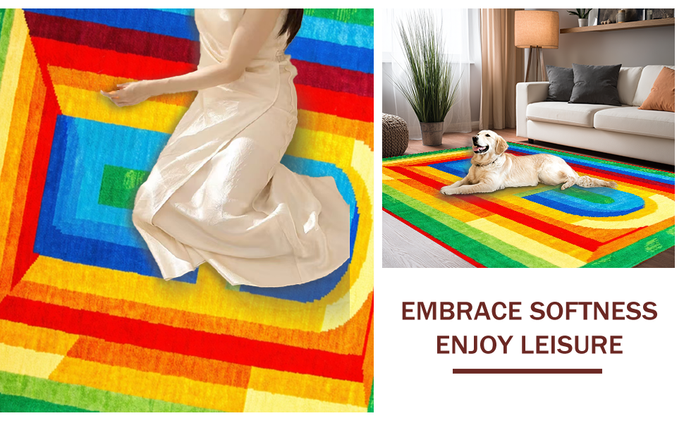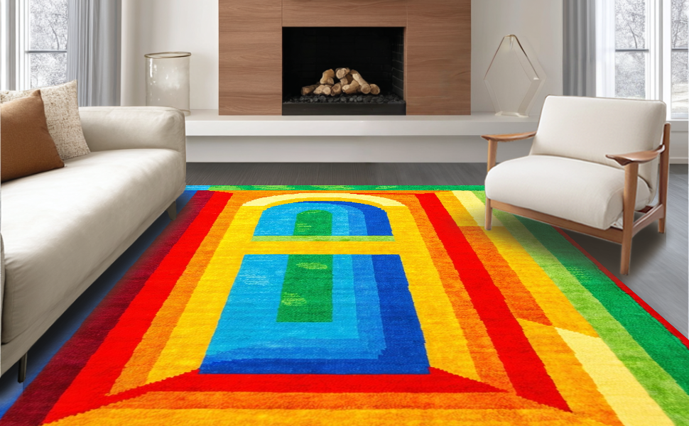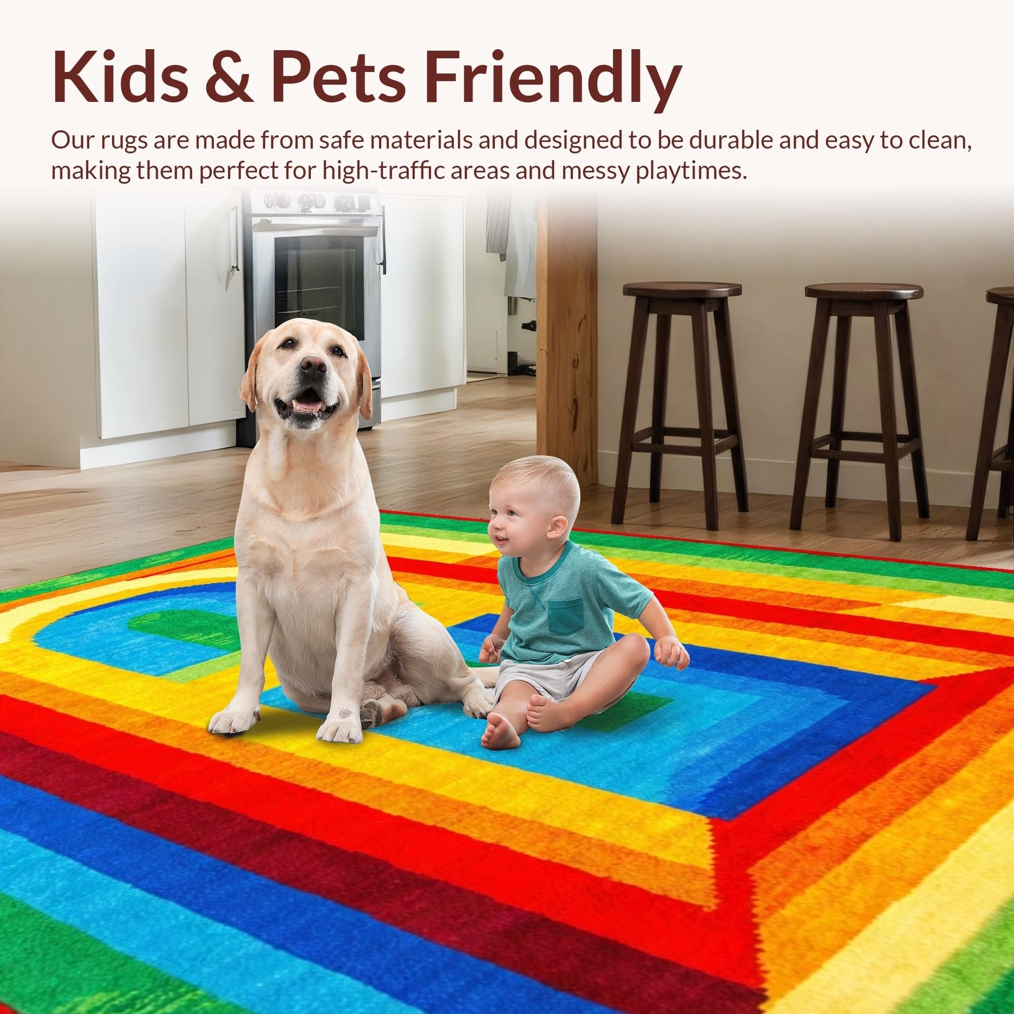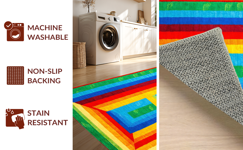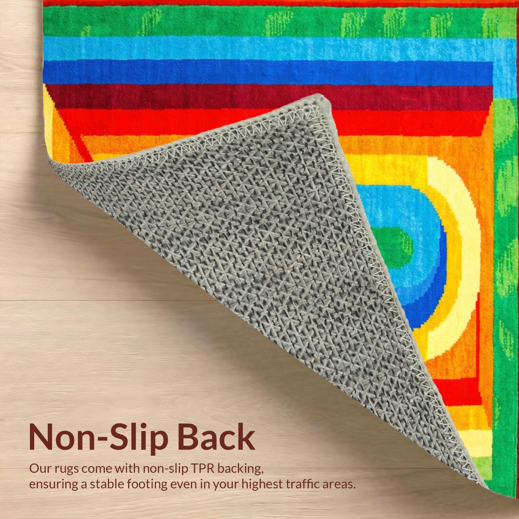 Ultra Soft Area Rug, Non Slip, Stain Resistant, Washable Area Rugs for Living Room, Bedroom, Joyful Spectrum of Learning Shapes(Green) Overview: