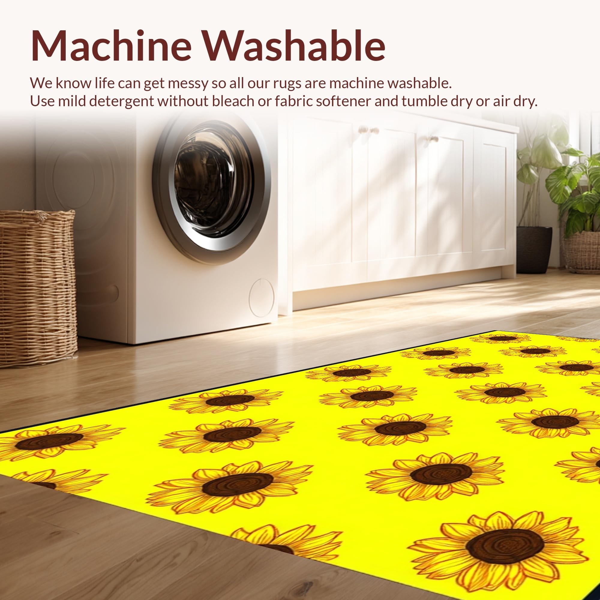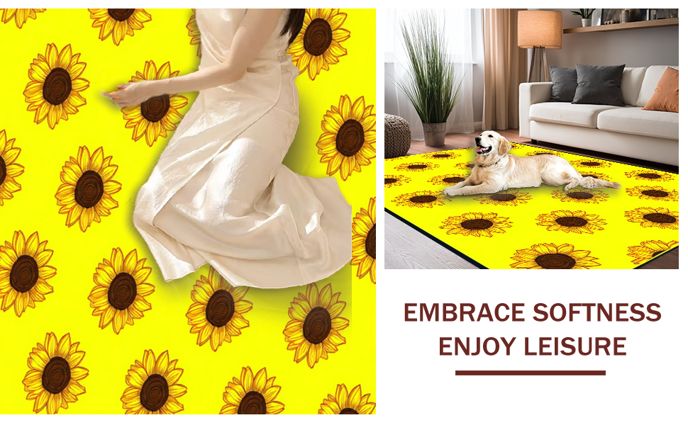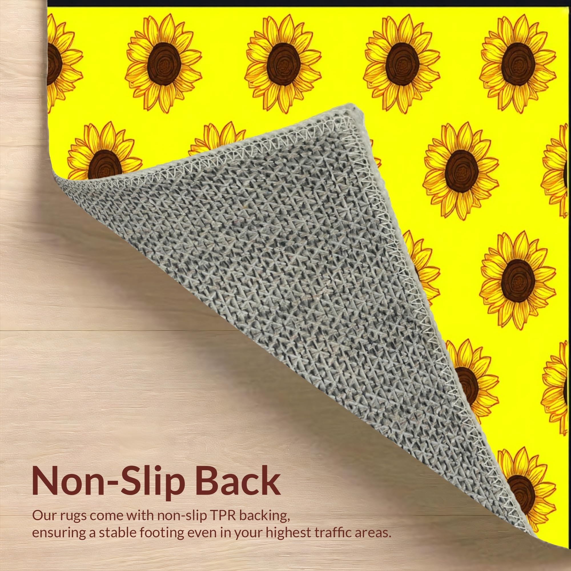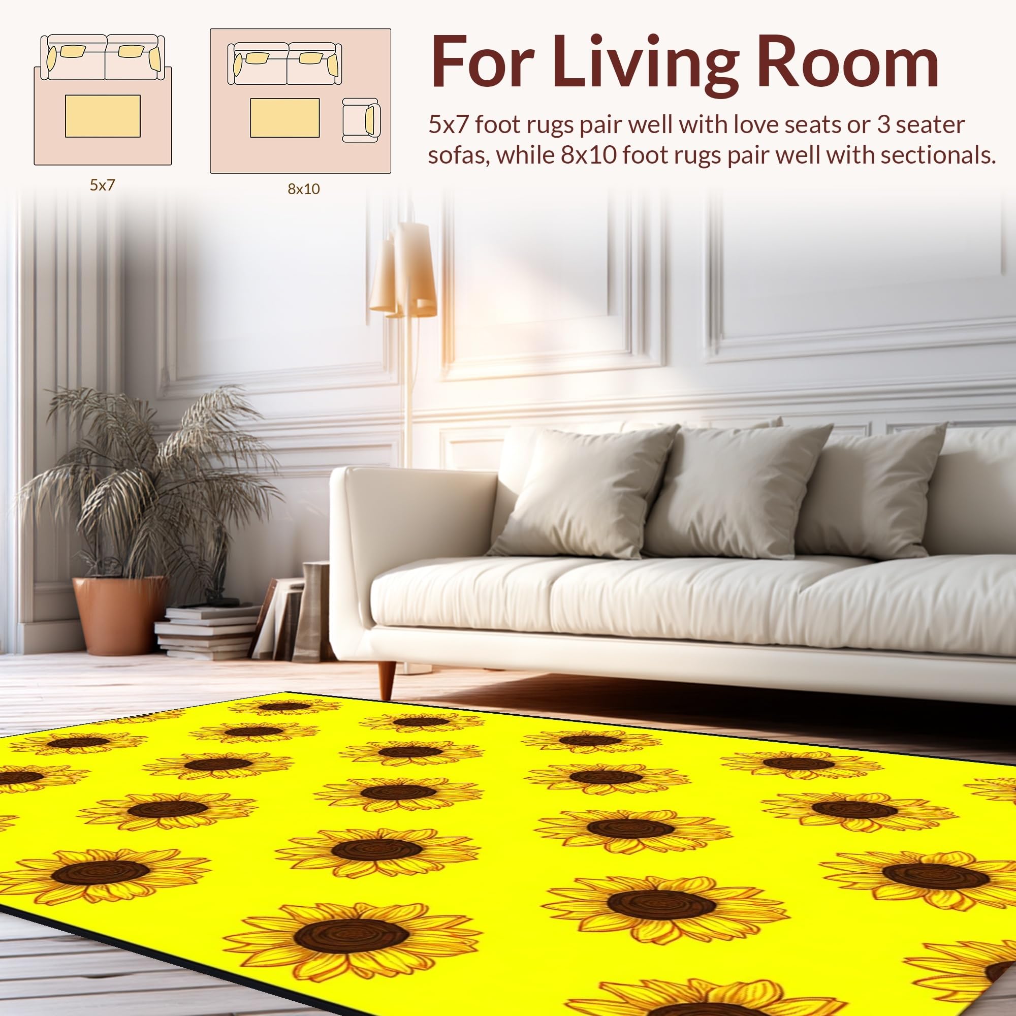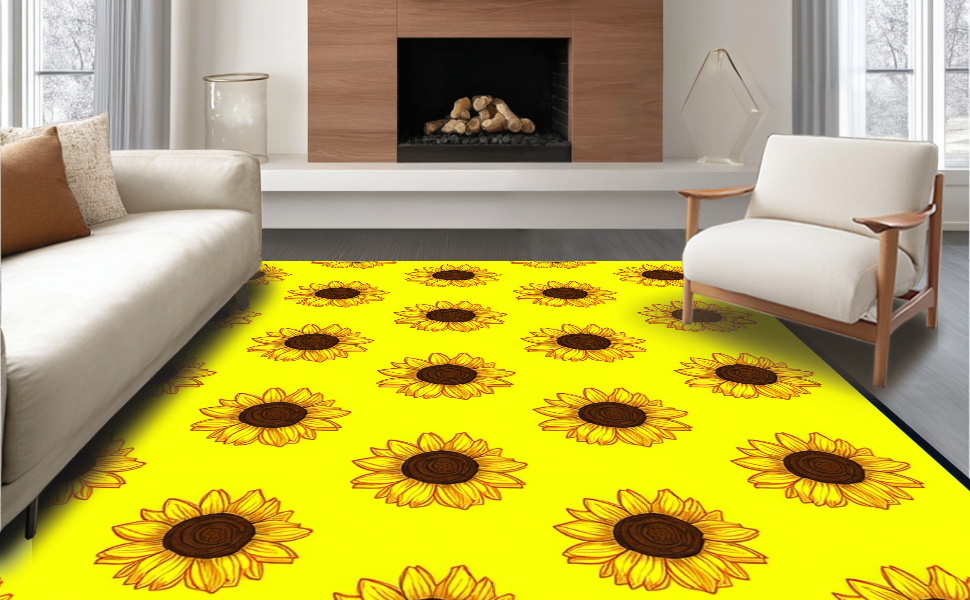 Ultra Soft Area Rug, Non Slip, Stain Resistant, Washable Area Rugs for Living Room, Bedroom, Joyful Sunflower Inspired Decor(Yellow) Overview: