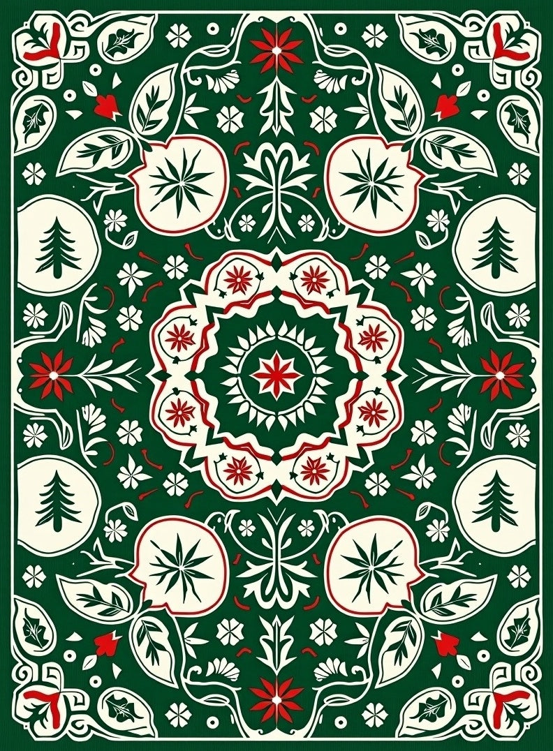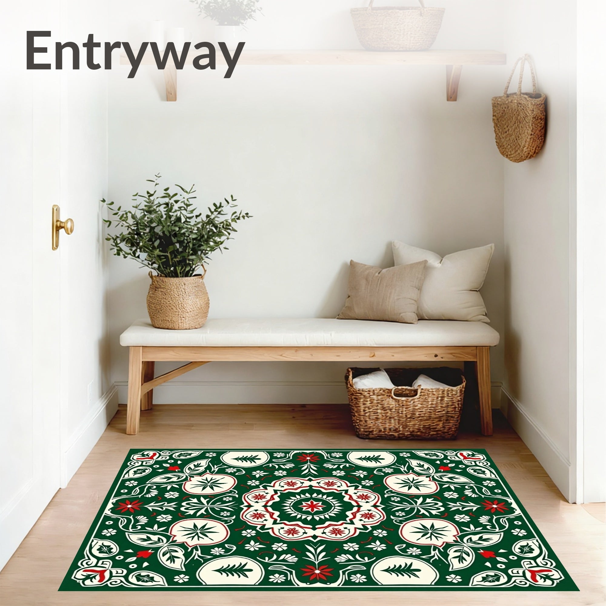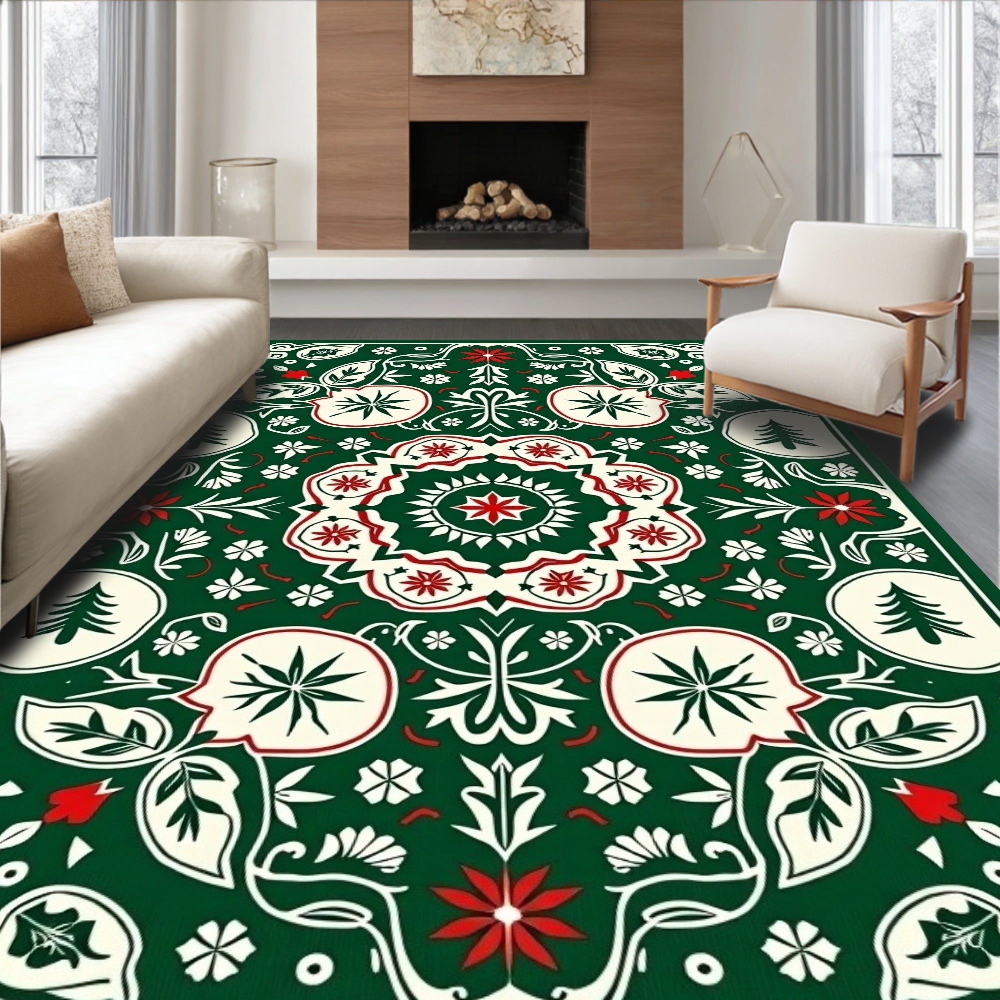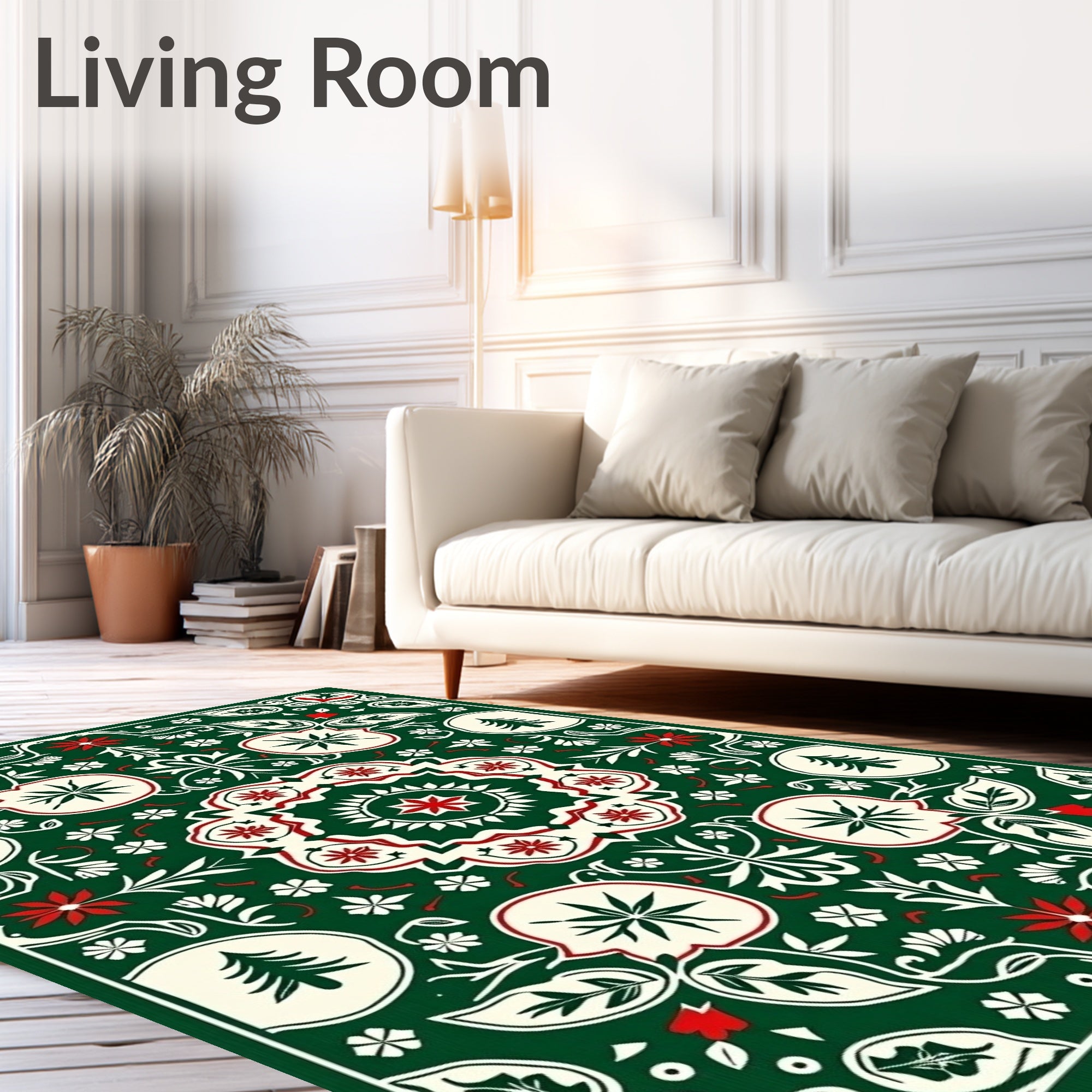 Ultra Soft Area Rug, Non Slip, Stain Resistant, Washable Area Rugs for Living Room, Bedroom, Joyful Winter Celebration Mosaic Decorative(Green) Overview: