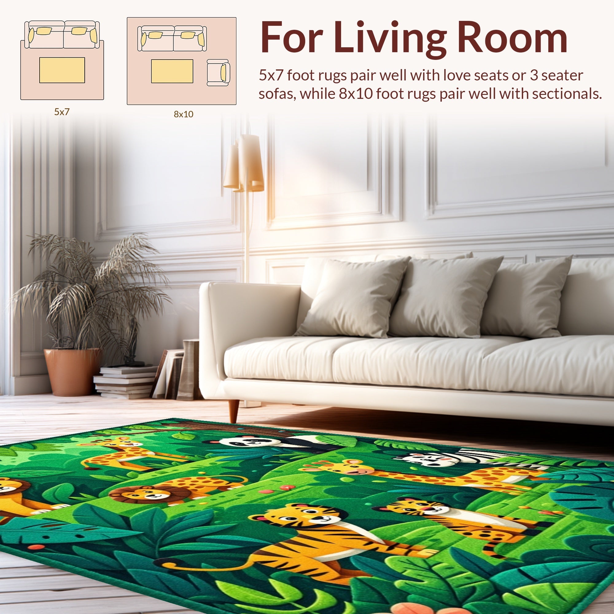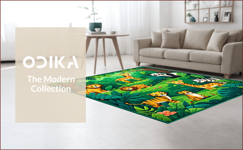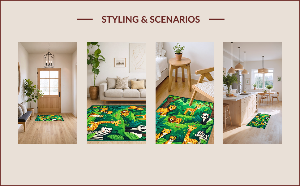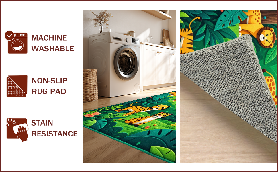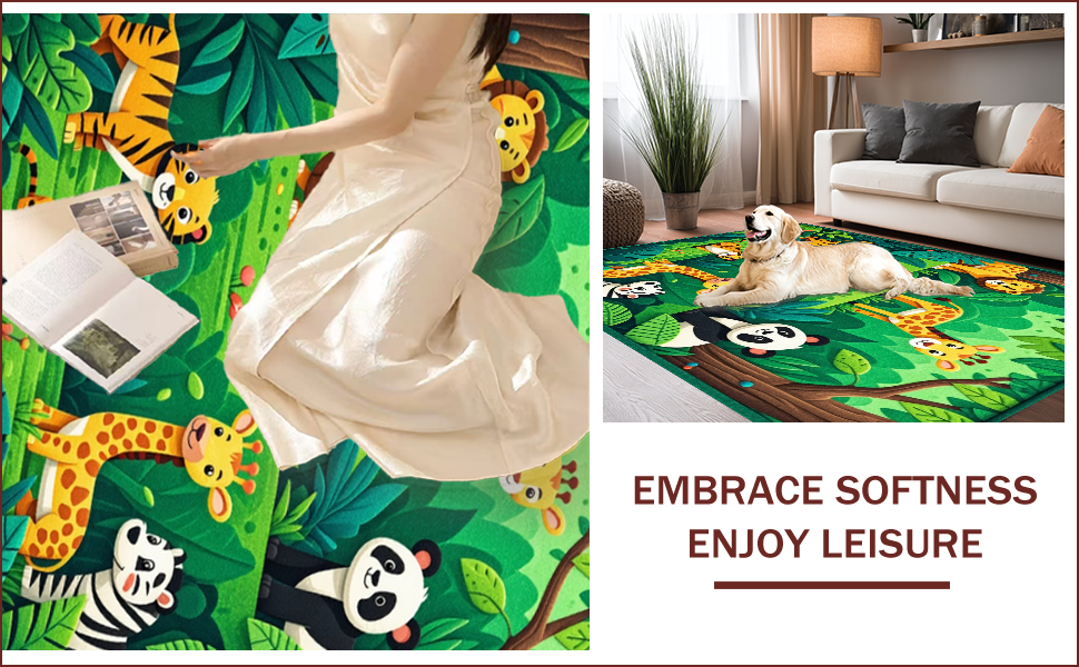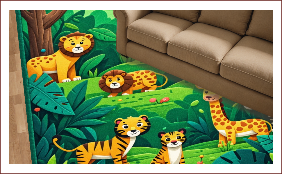 Ultra Soft Area Rug, Non Slip, Stain Resistant, Washable Area Rugs for Living Room, Bedroom, Jungle Animals Nursery Rug(Green) Overview: