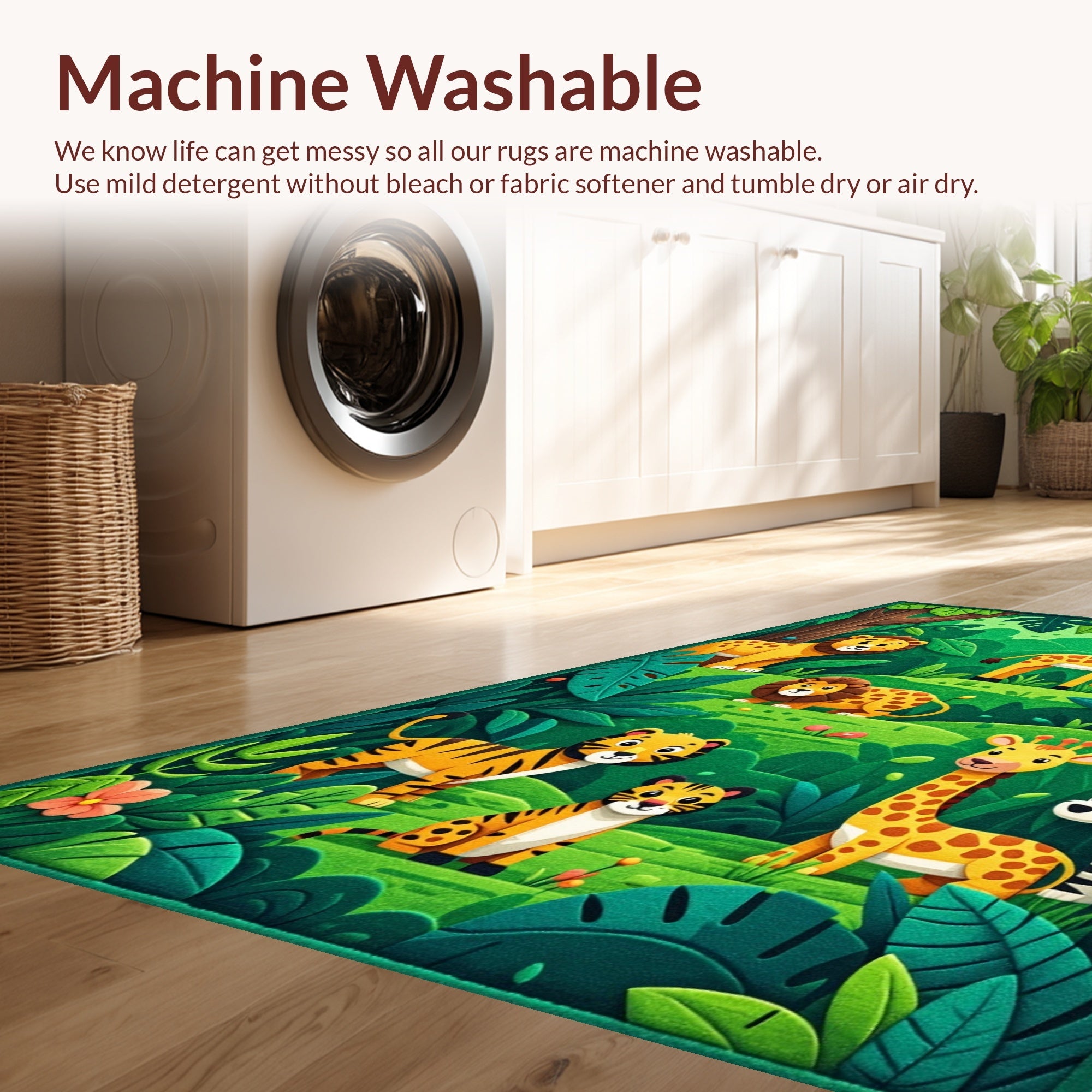 - Machine Washable: Our rugs can be easily thrown in the wash machine.