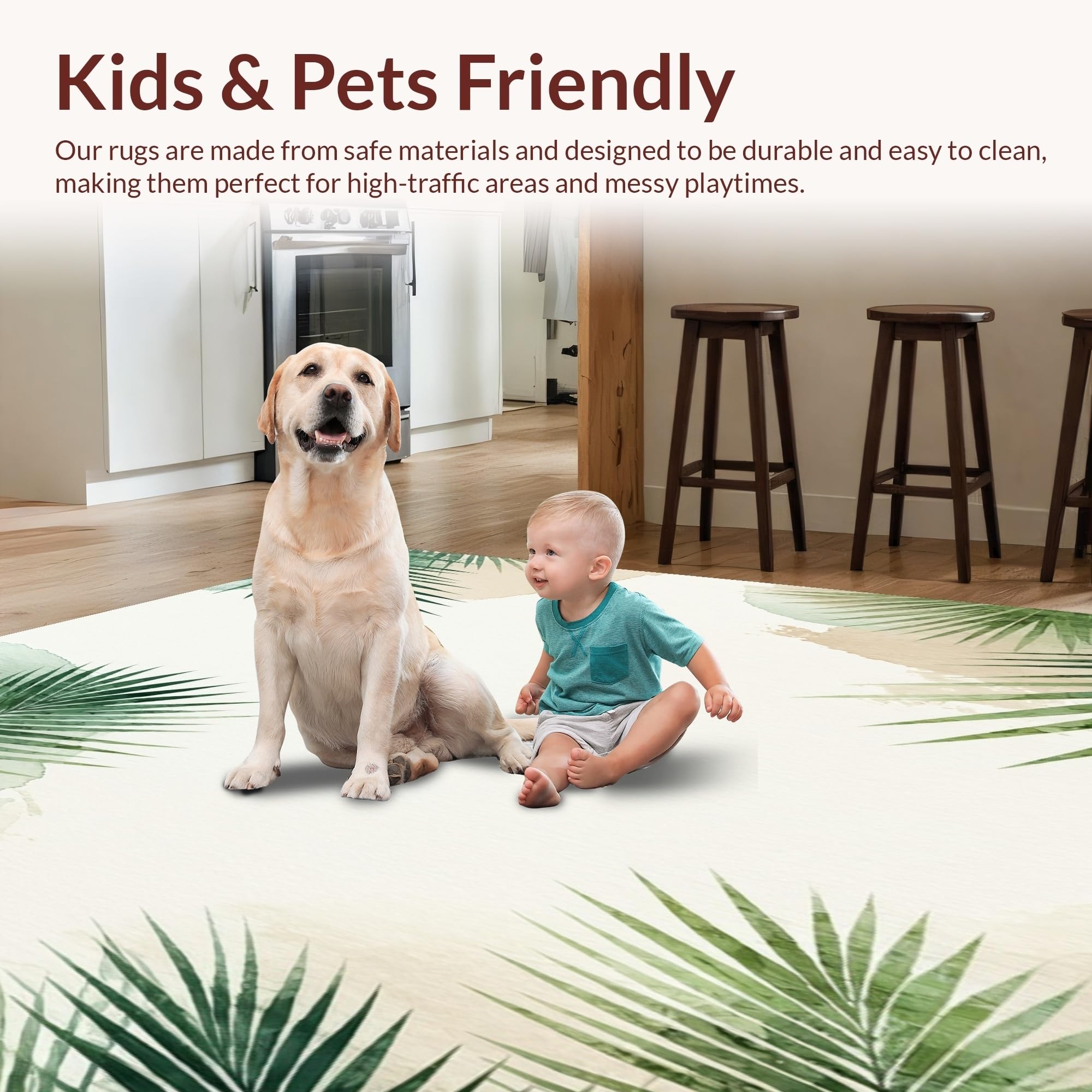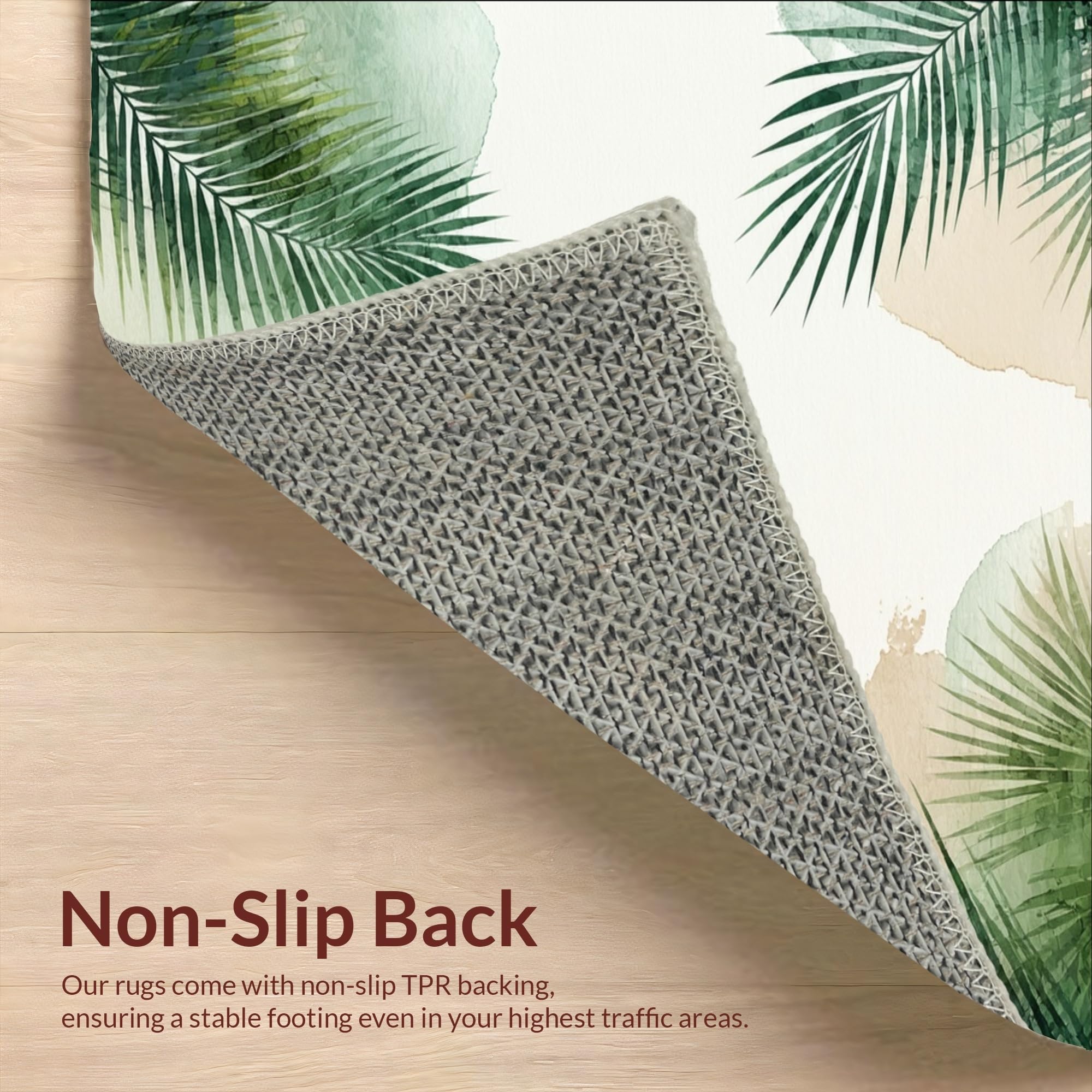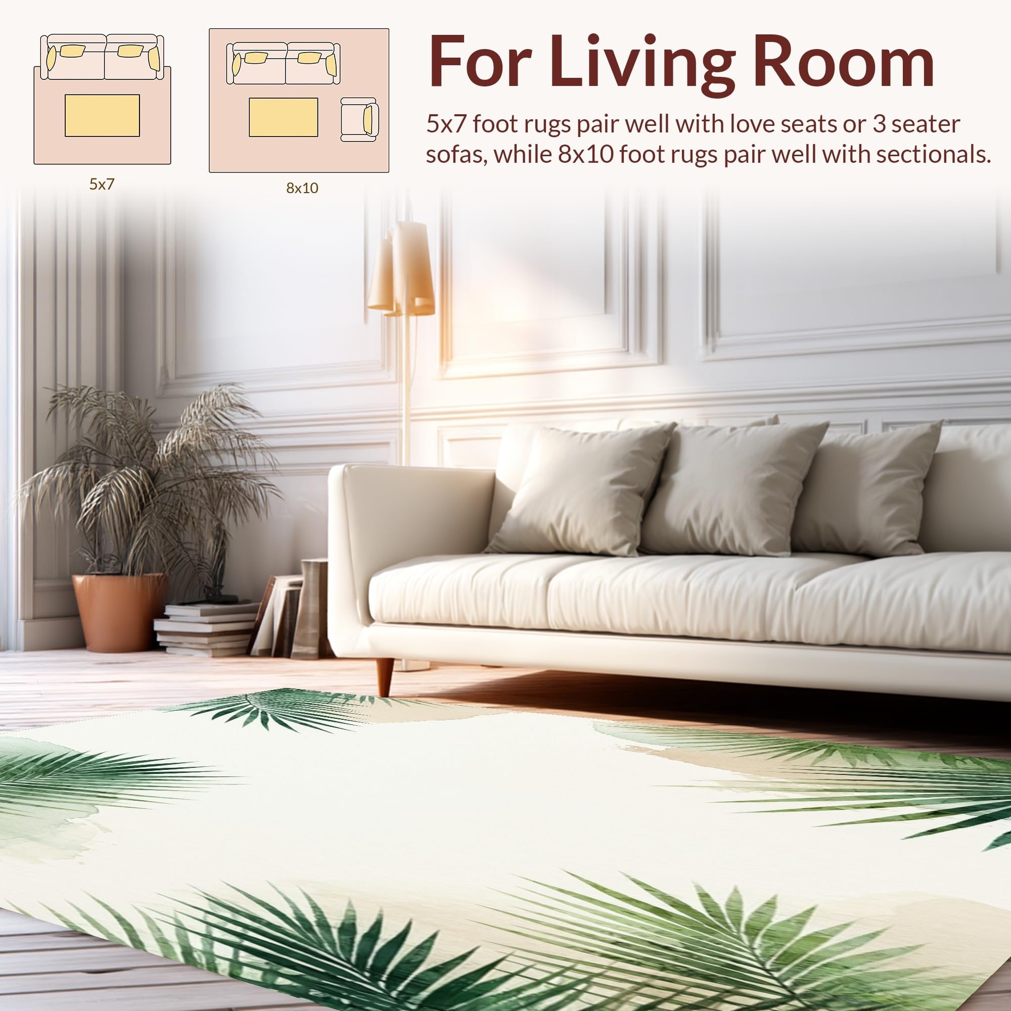 Ultra Soft Area Rug, Non Slip, Stain Resistant, Washable Area Rugs for Living Room, Bedroom, Jungle Serenity Area Green Beige Palm Frond Design(Beige) Overview: