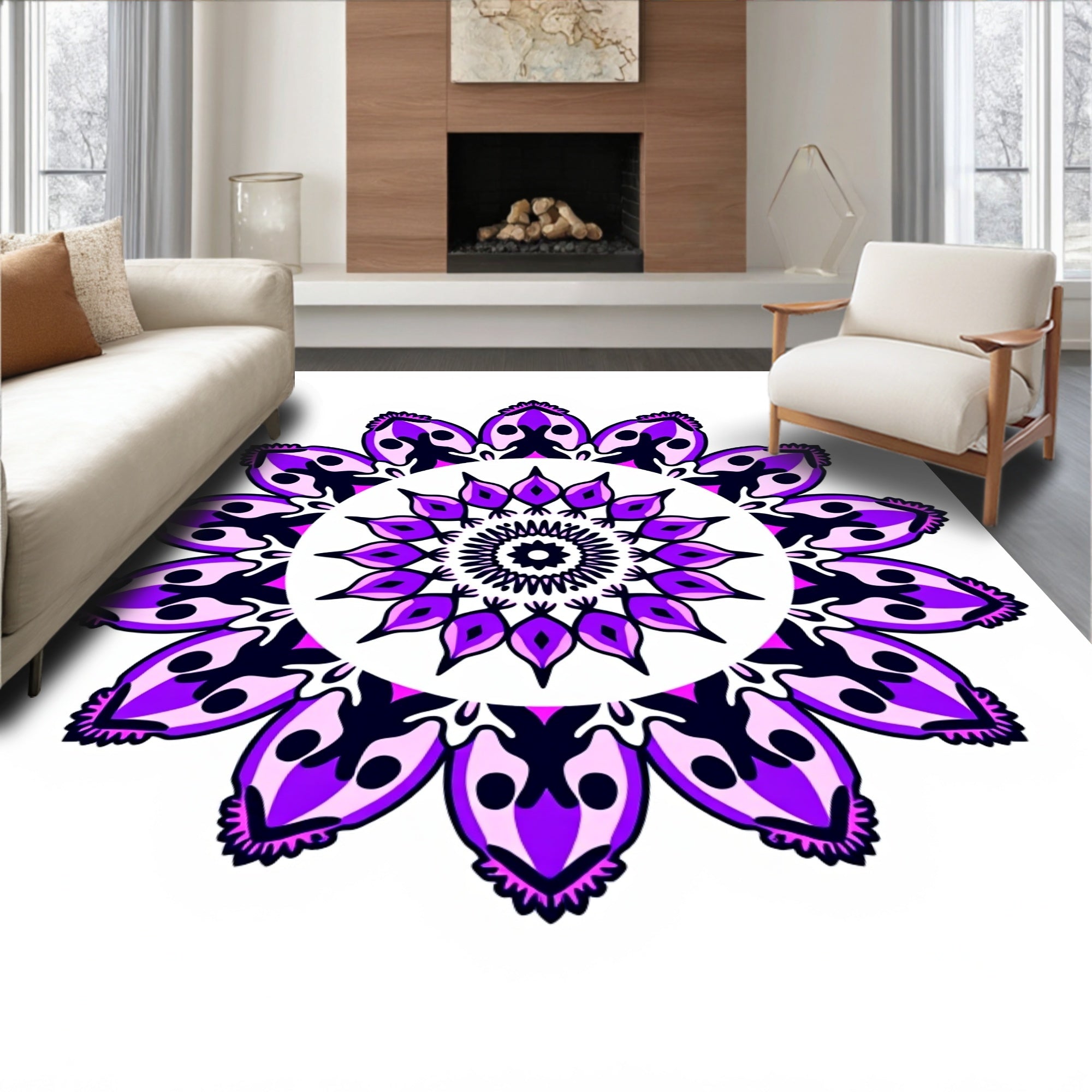 Ultra Soft Area Rug, Non Slip, Stain Resistant, Washable Area Rugs for Living Room, Bedroom, Kaleidoscope with Symmetrical Radiating Petals(Purple) Overview:
