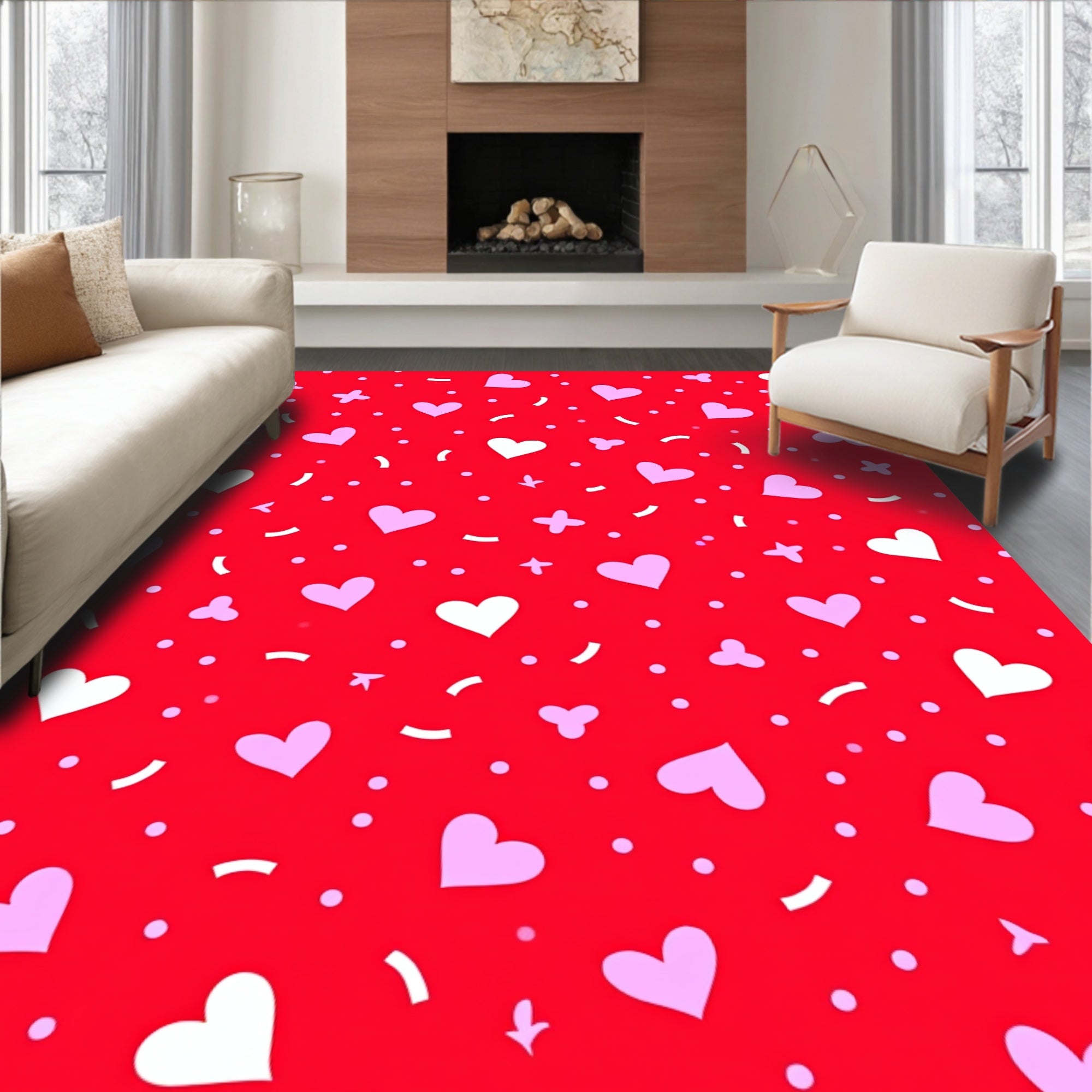 Flatwoven High Traffic Area Rug, Kawaii Motif with Sugar Sprinkle Dots Design, Non Slip, Stain Resistant, Washable Area Rugs for Living Room, Bedroom (Red) Overview: