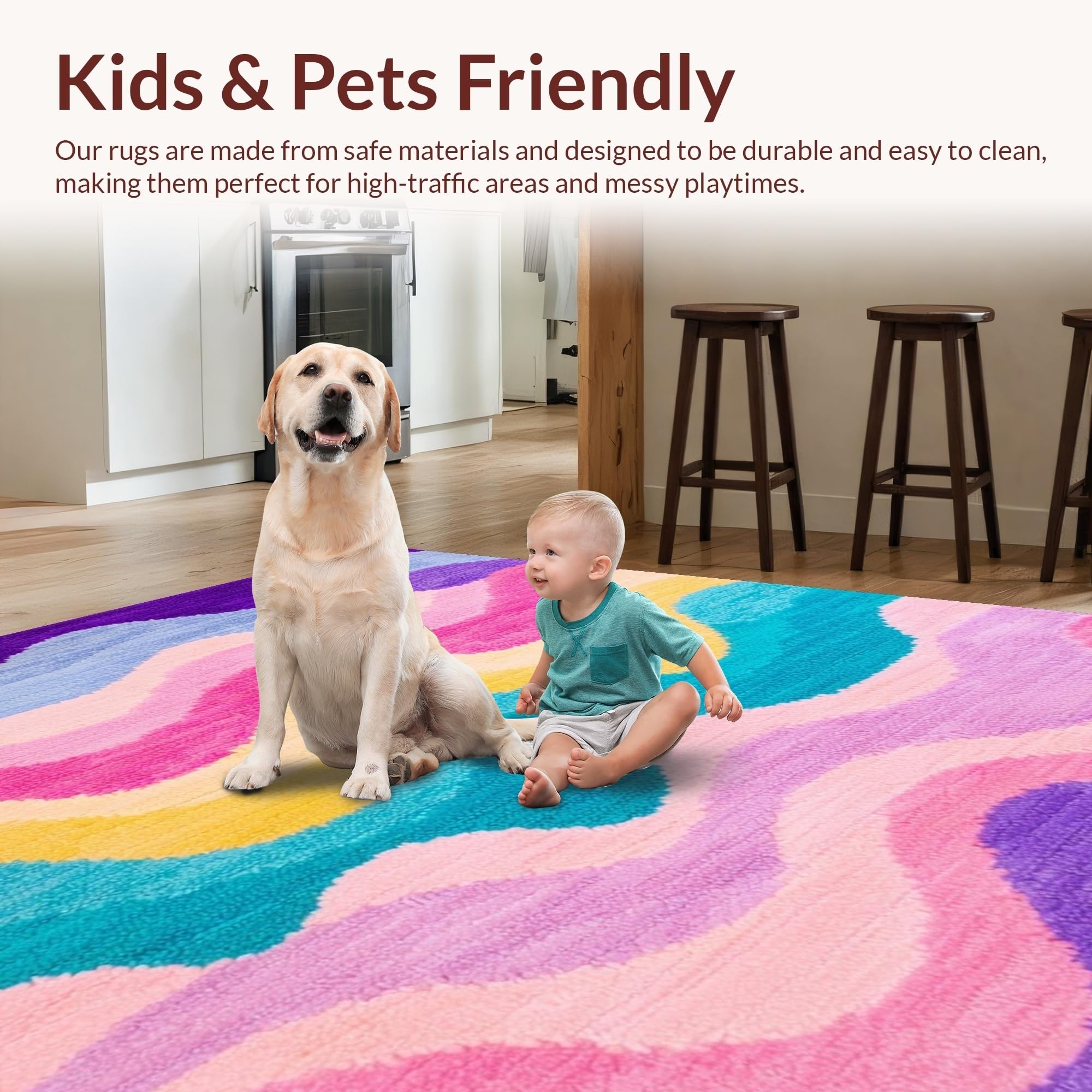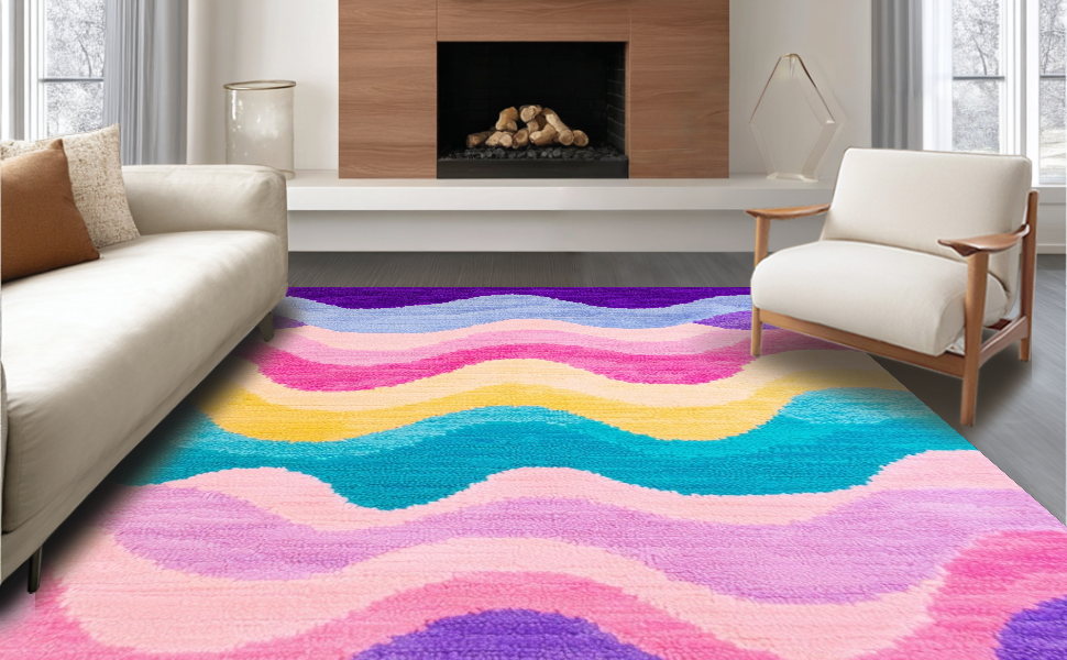 Ultra Soft Area Rug, Non Slip, Stain Resistant, Washable Area Rugs for Living Room, Bedroom, Kawaii Pastel Dreamscape Motif(Purple) Overview: