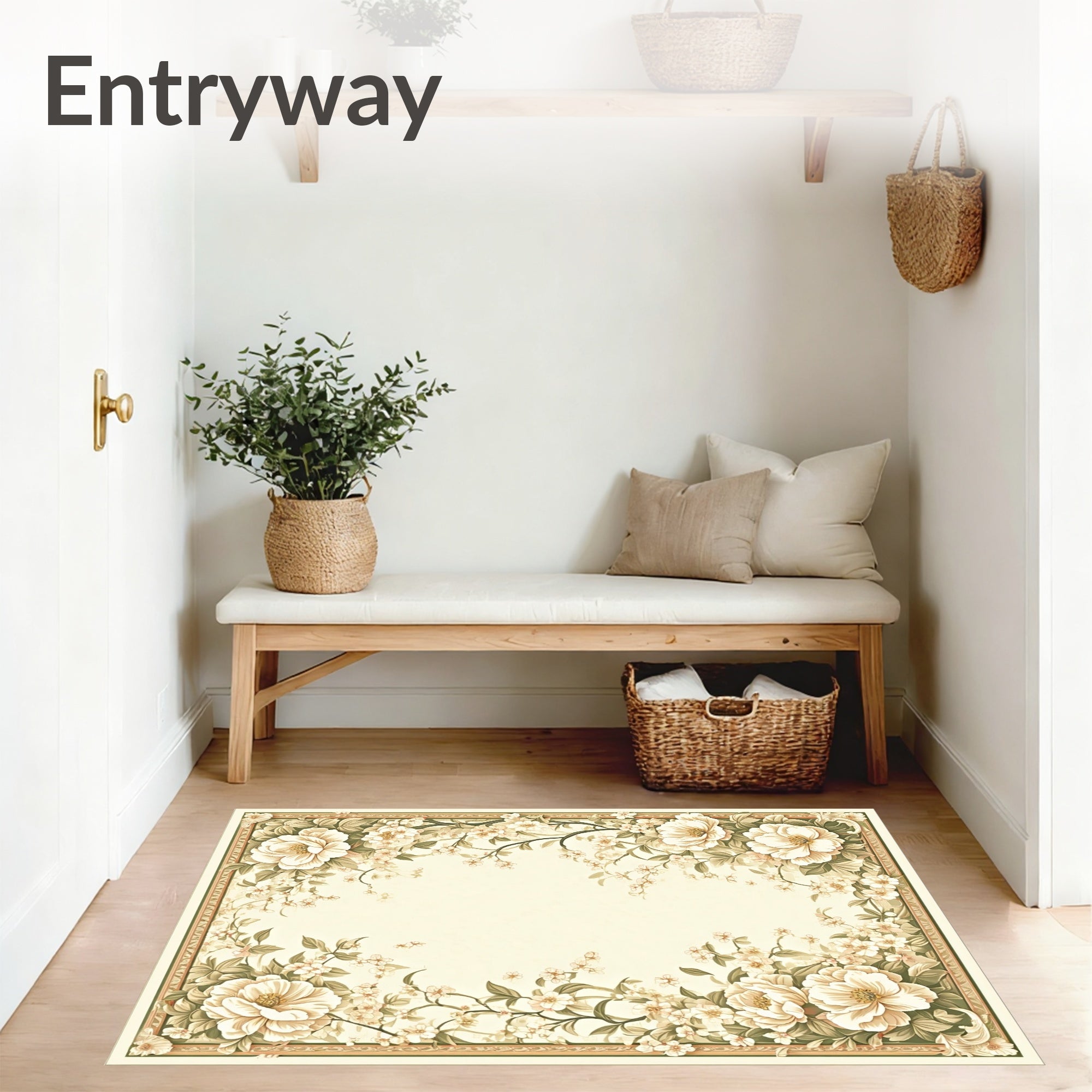 Flatwoven High Traffic Area Rug, Khaki Anti Fatigue for Sink, Non Slip, Stain Resistant, Washable Area Rugs for Living Room, Bedroom (Beige) Overview: