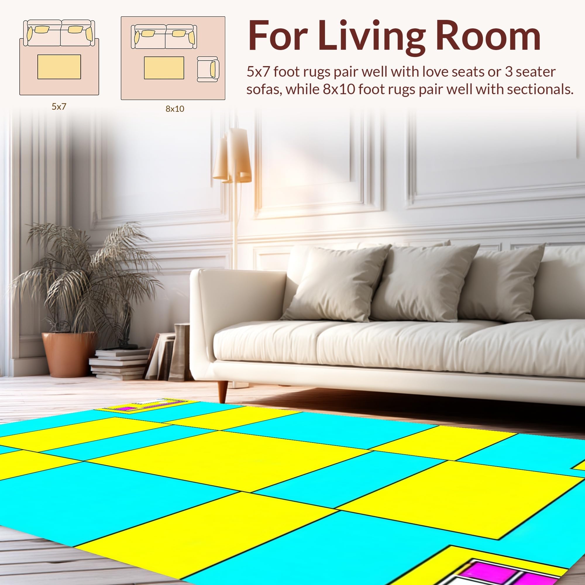 Ultra Soft Area Rug, Non Slip, Stain Resistant, Washable Area Rugs for Living Room, Bedroom, Kid-Friendly Cheerful Game Motif(Blue) Overview: