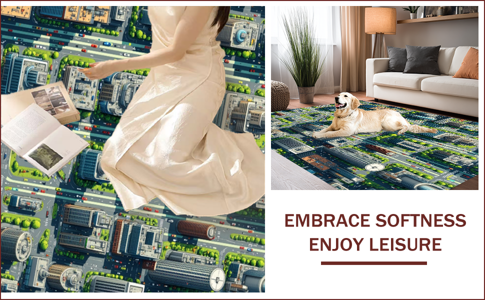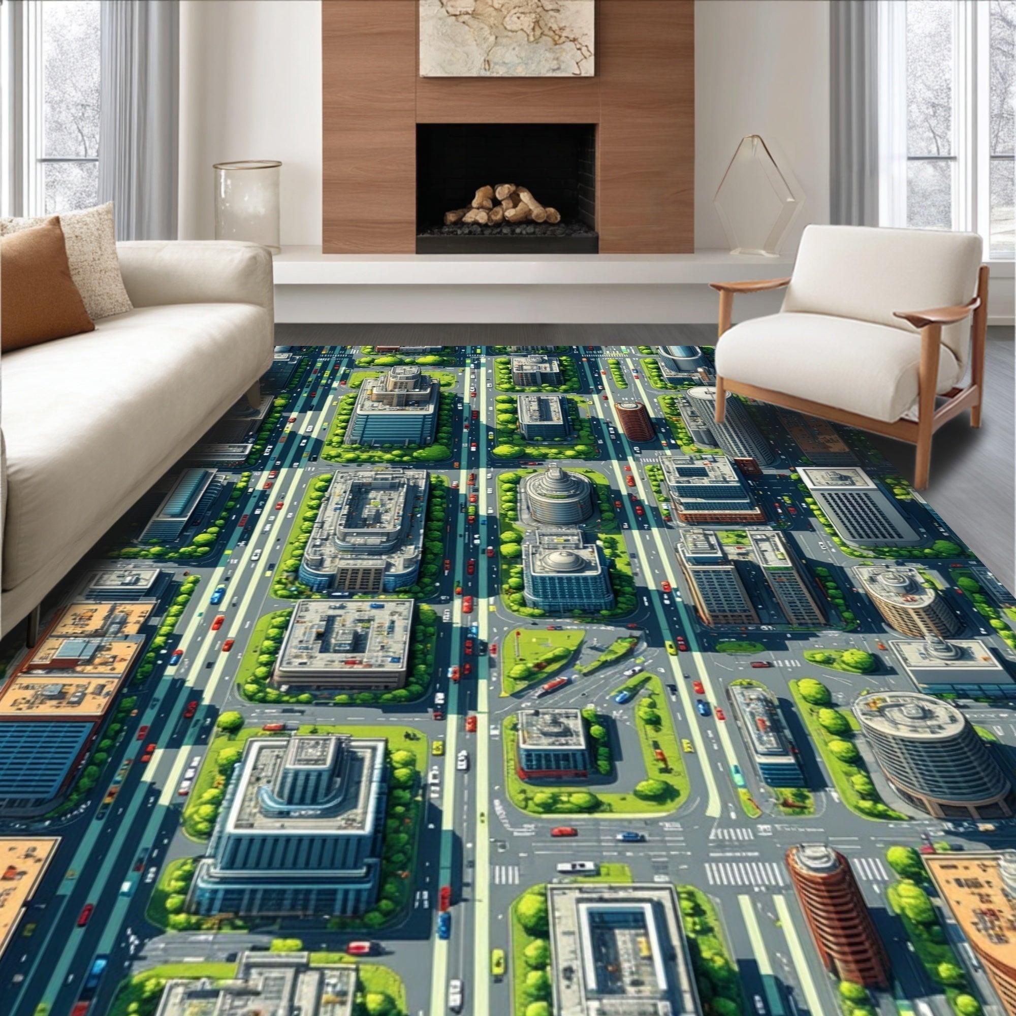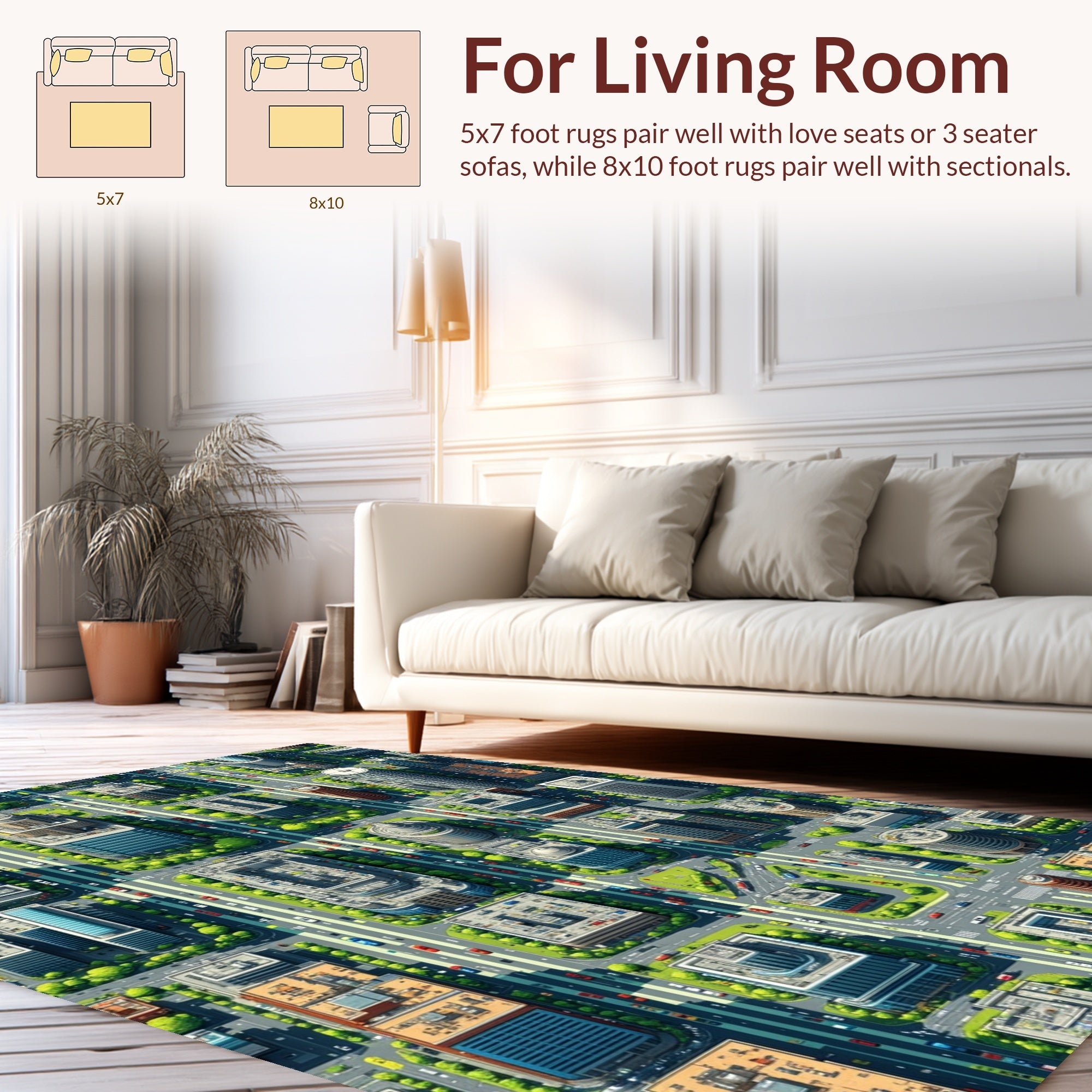 Ultra Soft Area Rug, Non Slip, Stain Resistant, Washable Area Rugs for Living Room, Bedroom, Kids City Road Play Mat(Gray) Overview: