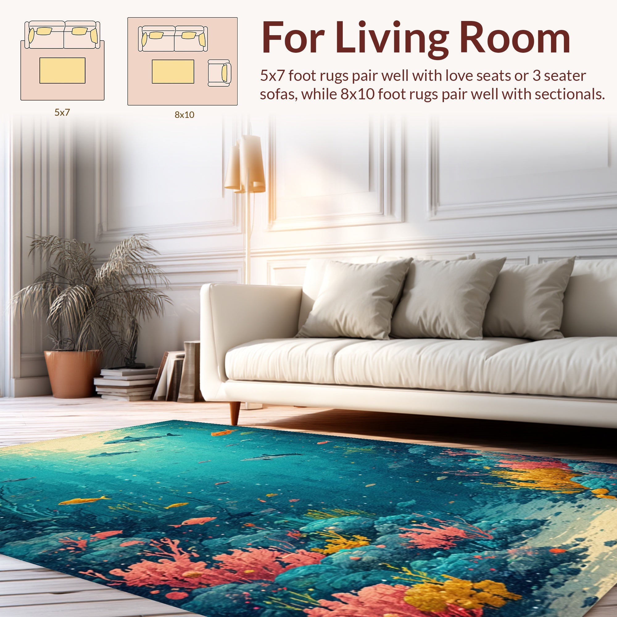 Ultra Soft Area Rug, Non Slip, Stain Resistant, Washable Area Rugs for Living Room, Bedroom, Kids' Ocean Life Area Rug: Playful Sea Creature Carpet(Blue) Overview: