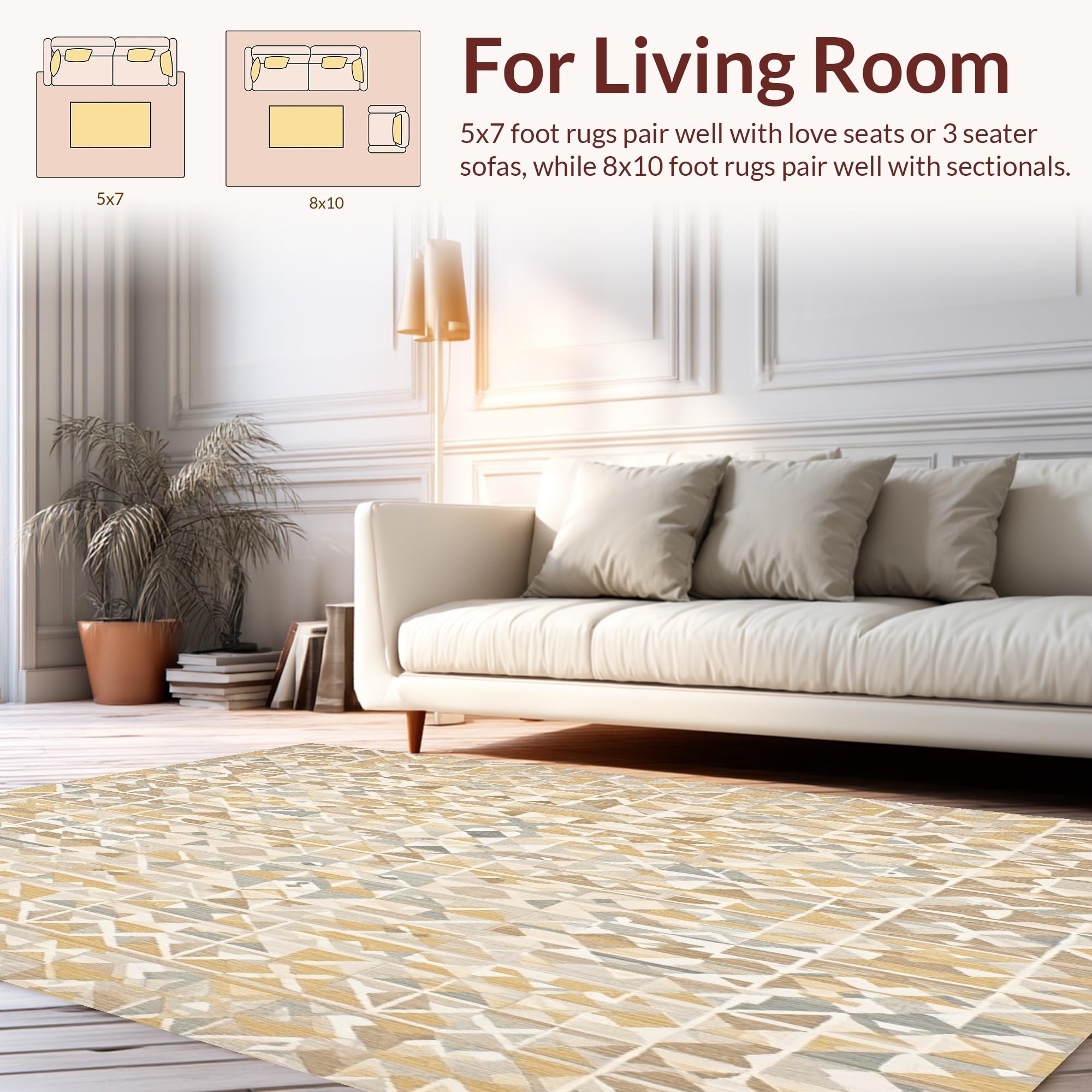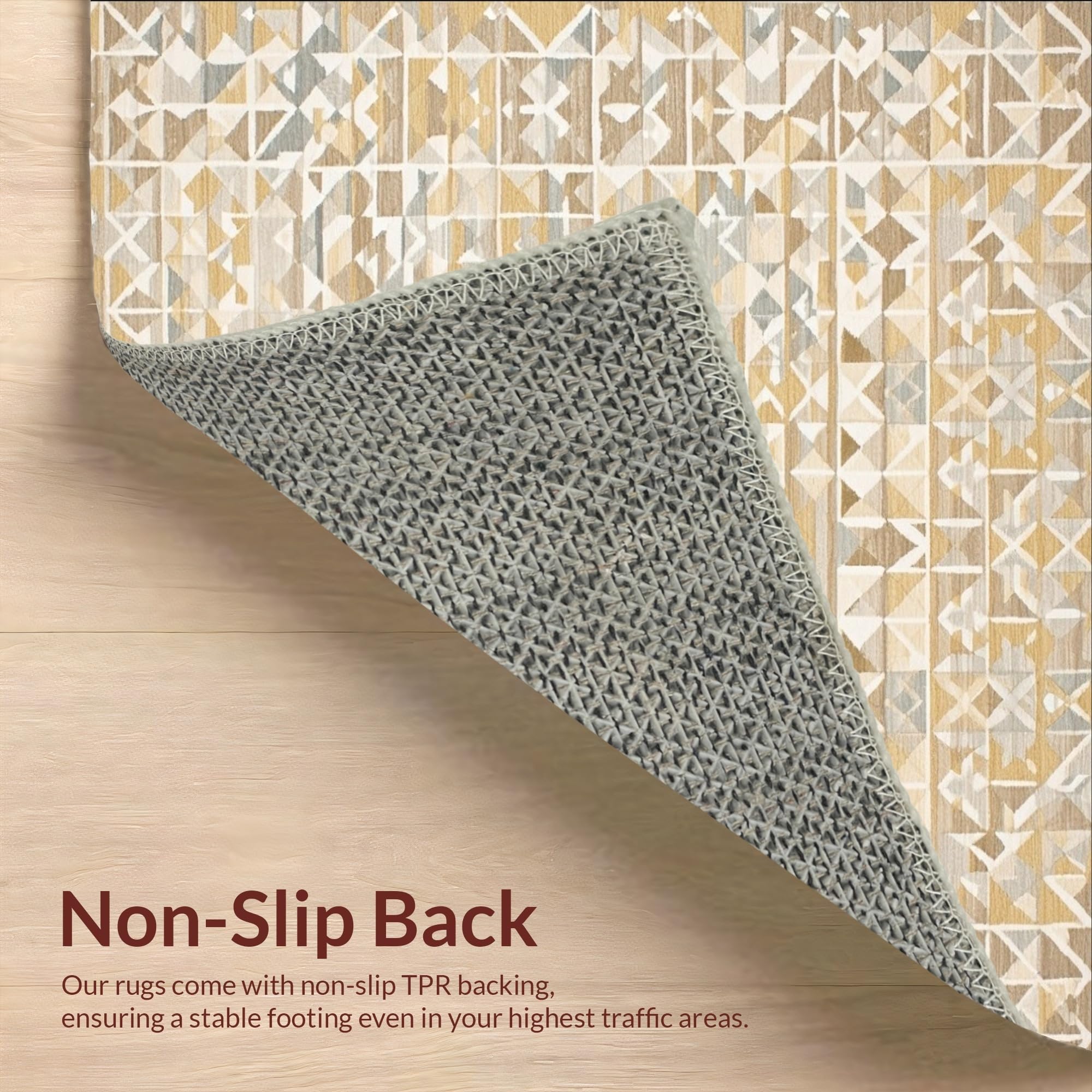 Ultra Soft Area Rug, Non Slip, Stain Resistant, Washable Area Rugs for Living Room, Bedroom, Kids Play Geometric Beige Cotton Montessori Area(Beige) Overview: