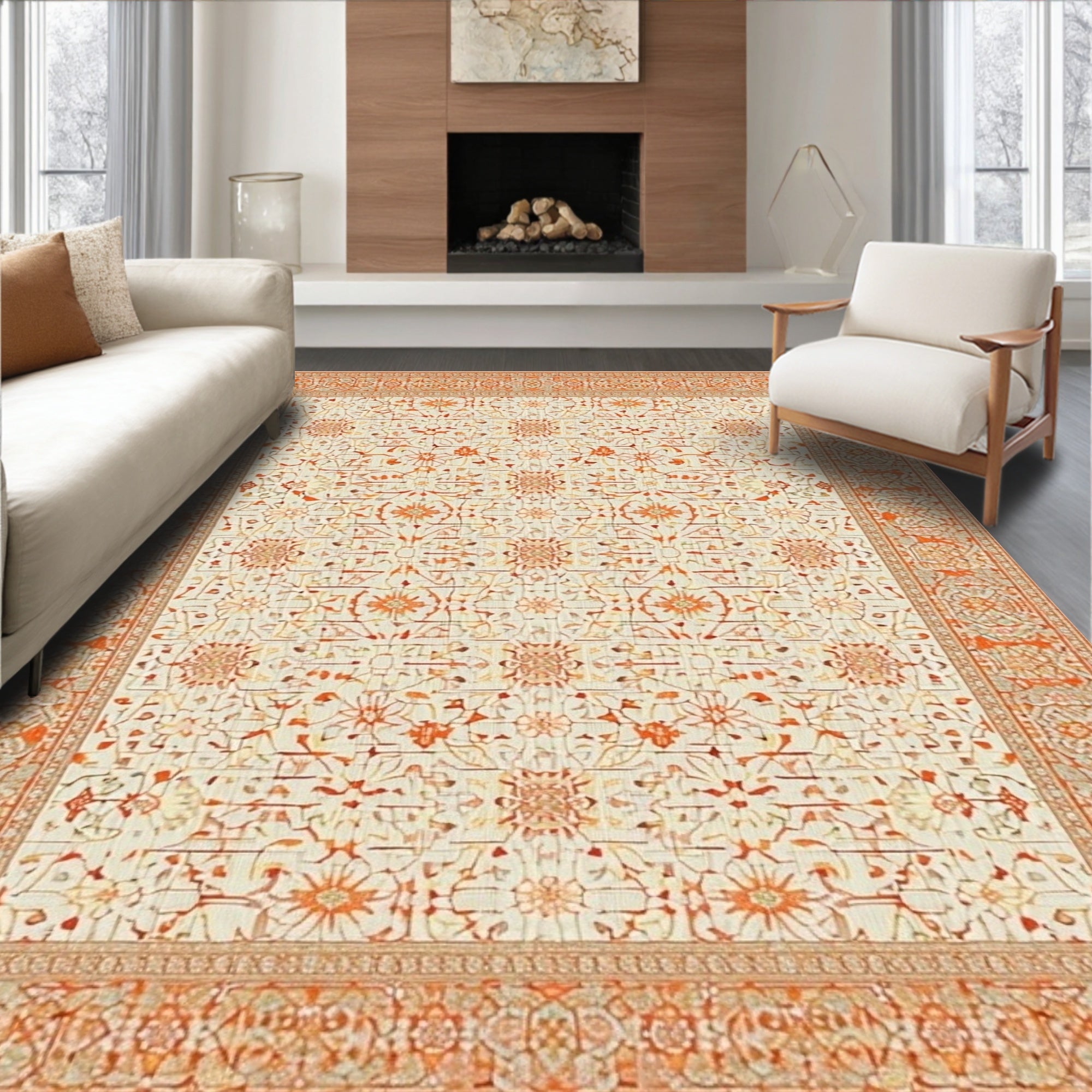 Ultra Soft Area Rug, Non Slip, Stain Resistant, Washable Area Rugs for Living Room, Bedroom, Kitchen Hallway Runner Low Pile Neutral Area(Orange) Overview: