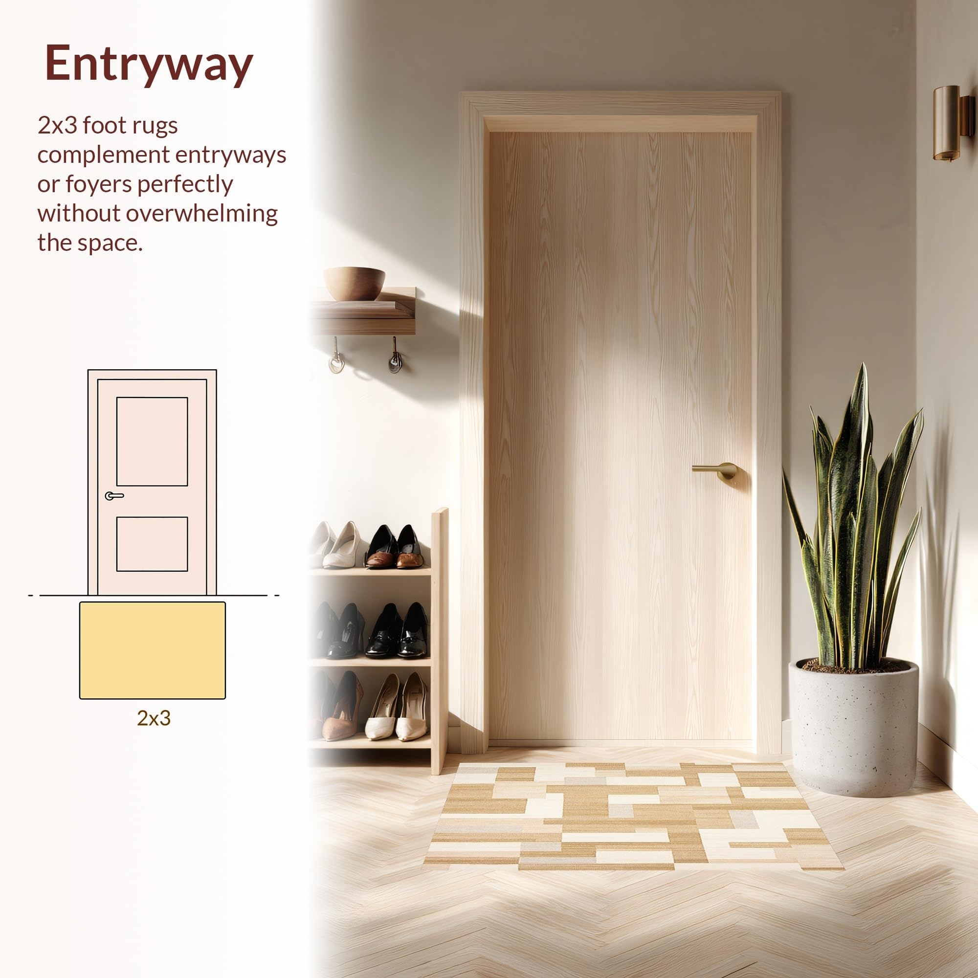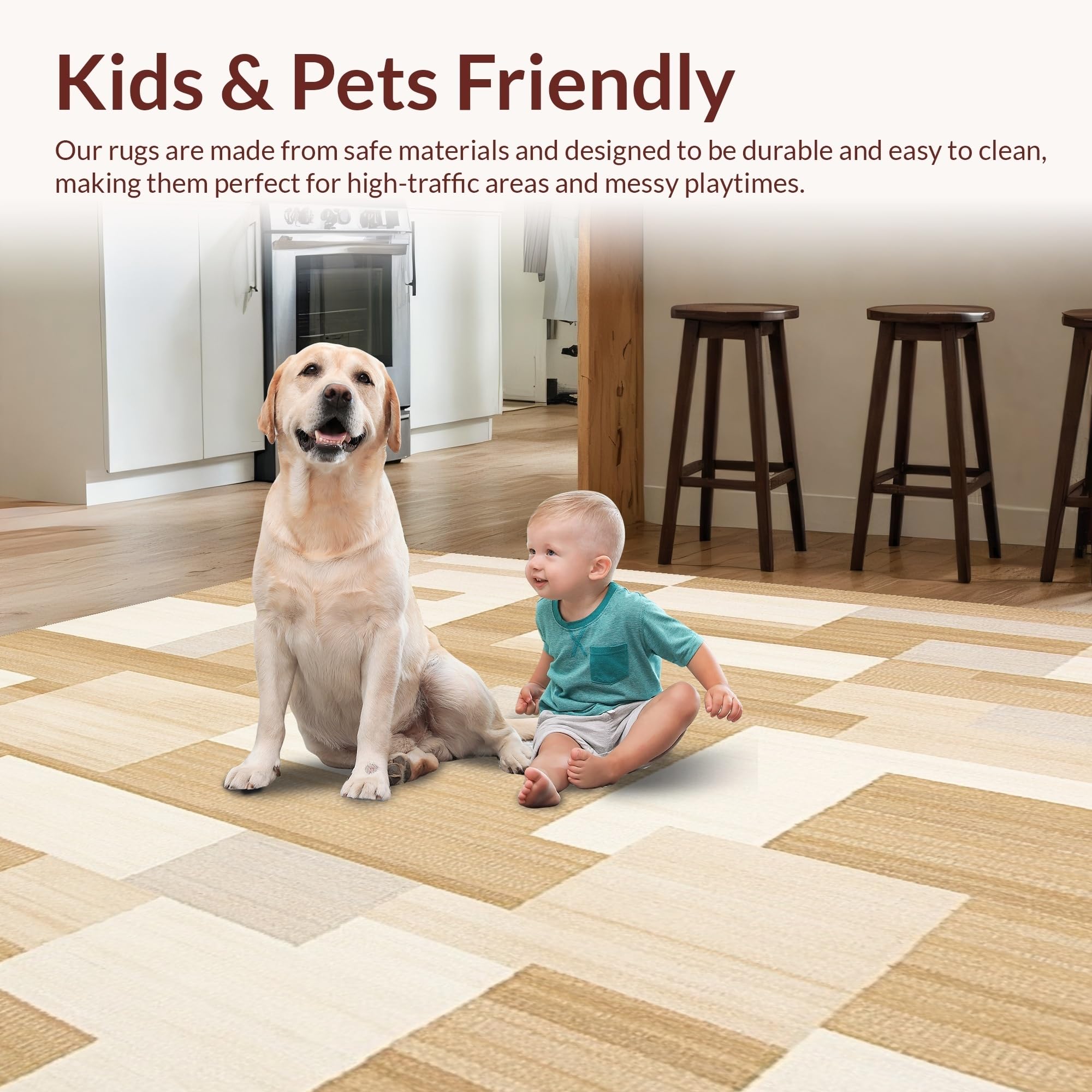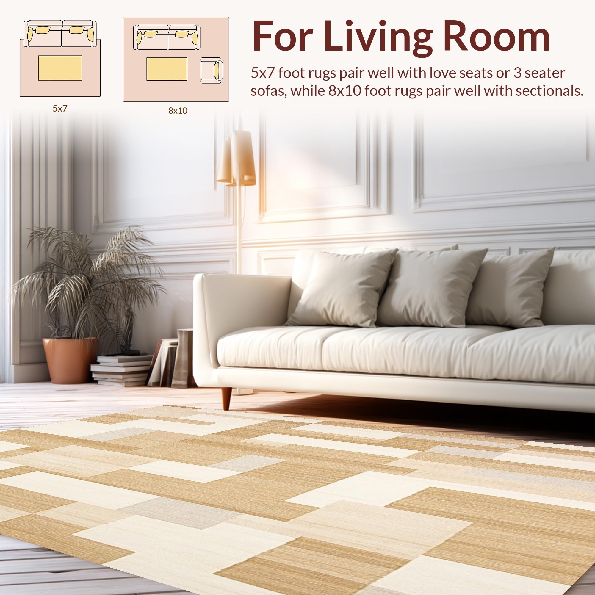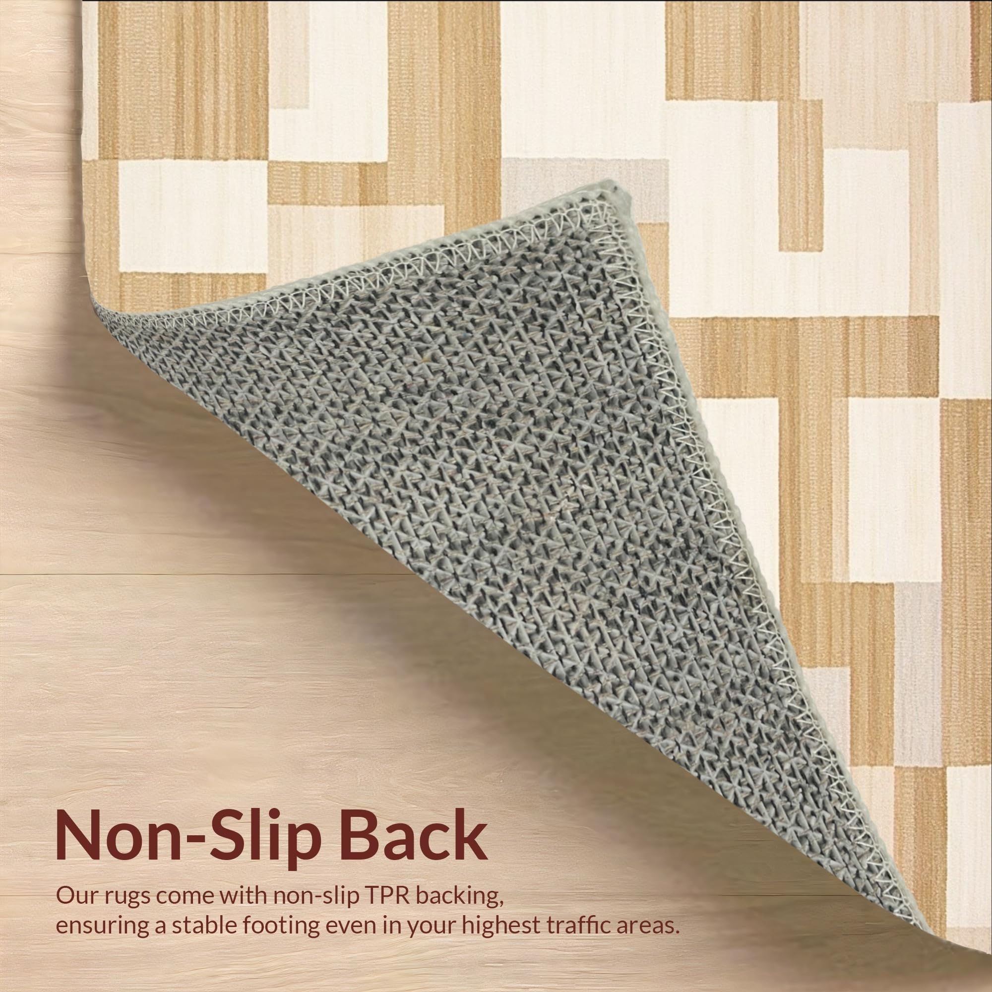 Ultra Soft Area Rug, Non Slip, Stain Resistant, Washable Area Rugs for Living Room, Bedroom, Kitchen Runner Geometric Beige & Camel(Beige) Overview: