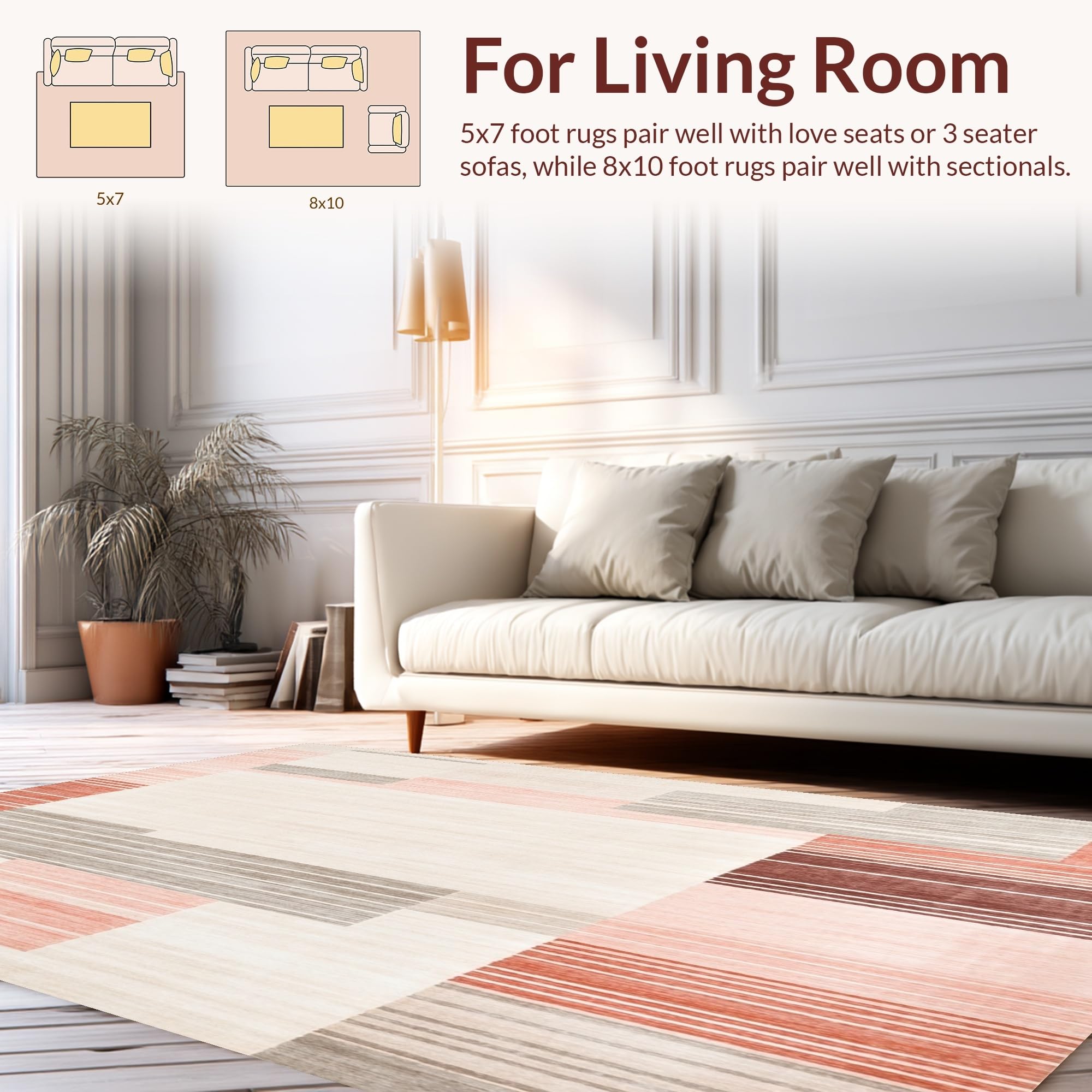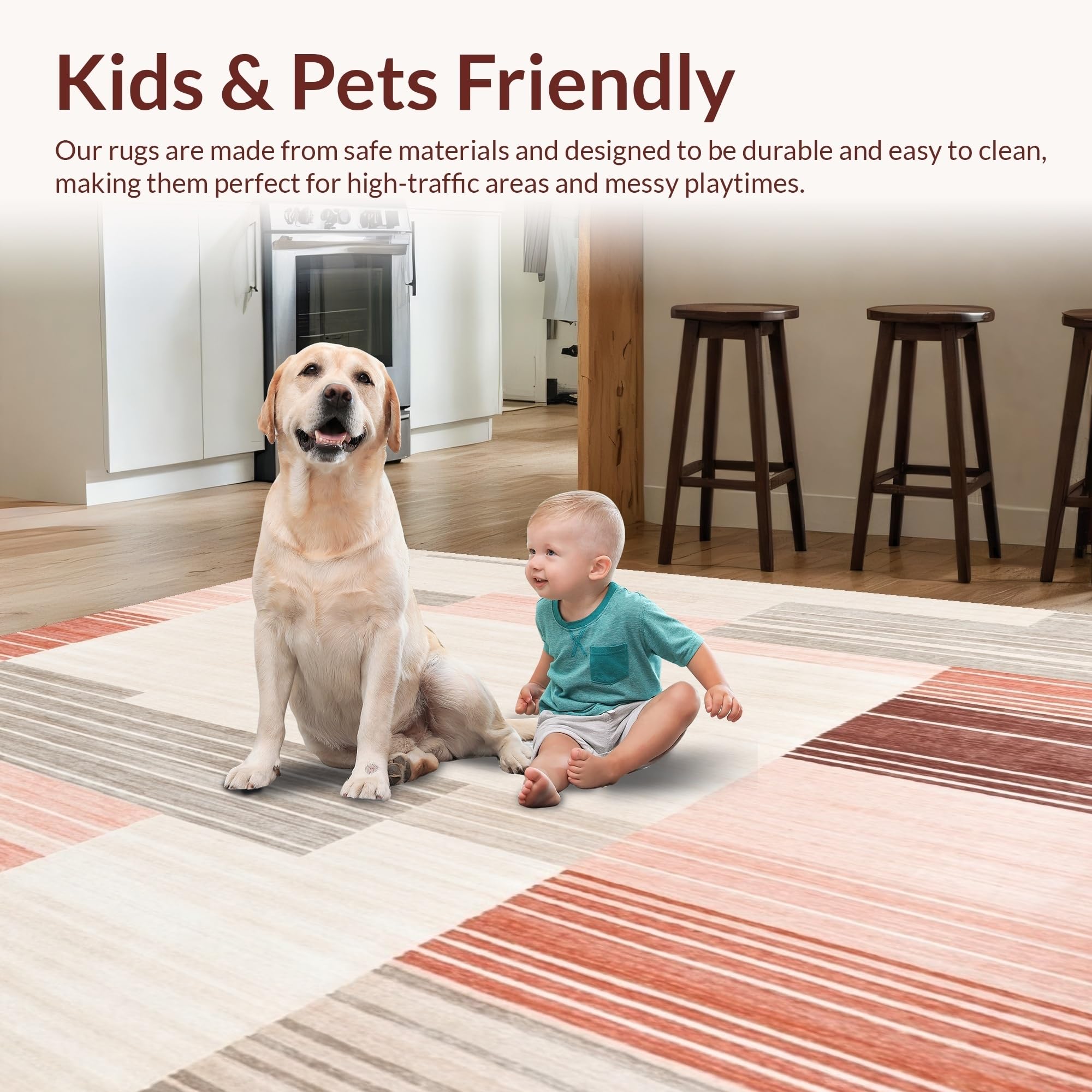 Ultra Soft Area Rug, Non Slip, Stain Resistant, Washable Area Rugs for Living Room, Bedroom, Kitchen Runner Non Slip Striped Beige(Beige) Overview: