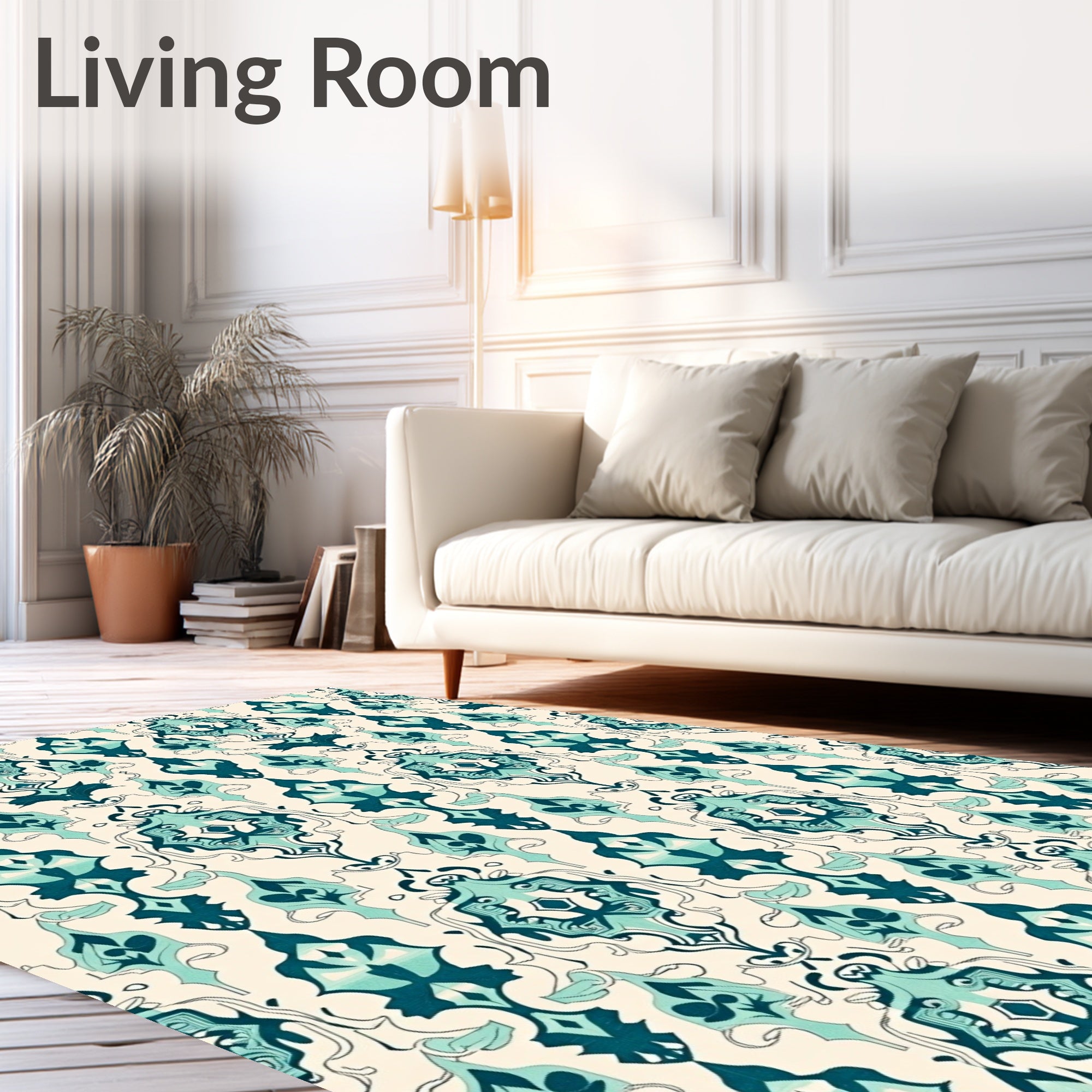 Ultra Soft Area Rug, Non Slip, Stain Resistant, Washable Area Rugs for Living Room, Bedroom, Lagoon Breeze Lattice(Teal) Overview: