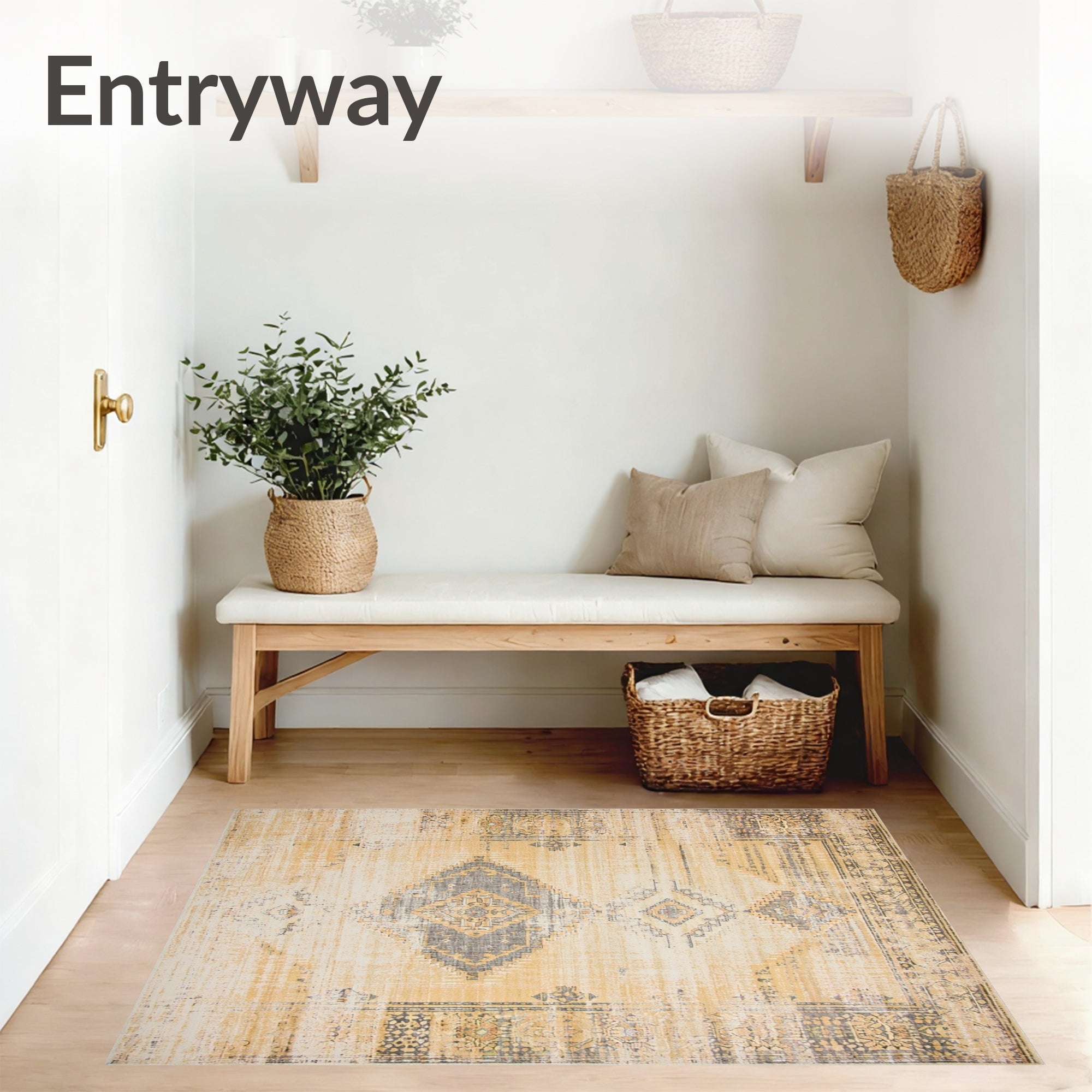 Ultra Soft Area Rug, Non Slip, Stain Resistant, Washable Area Rugs for Living Room, Bedroom, Large Beige Area with a Boho Chic Distressed Design and Earthy Hues(Beige) Overview: