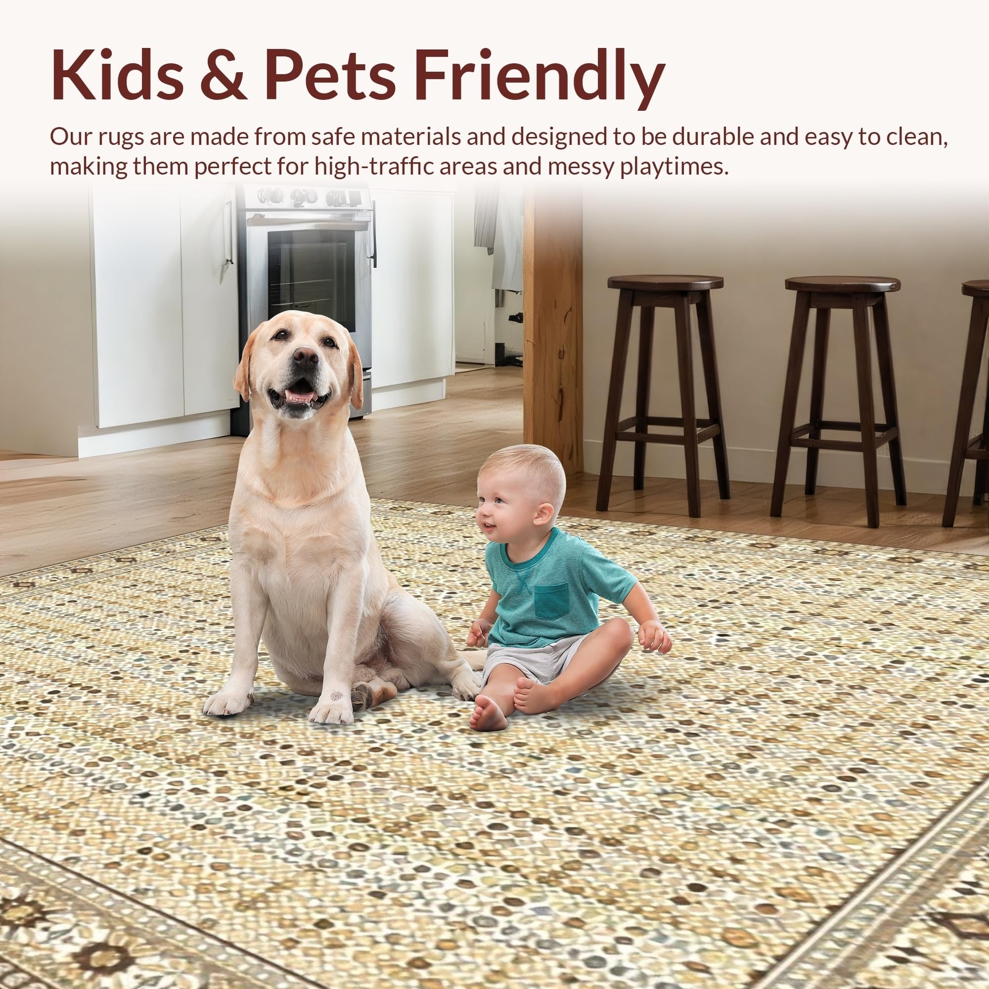 - Kid & Pet Friendly: Ideal for high-traffic indoor areas, this flooring is designed to withstand life's unpredictable messes caused by children or pets.
