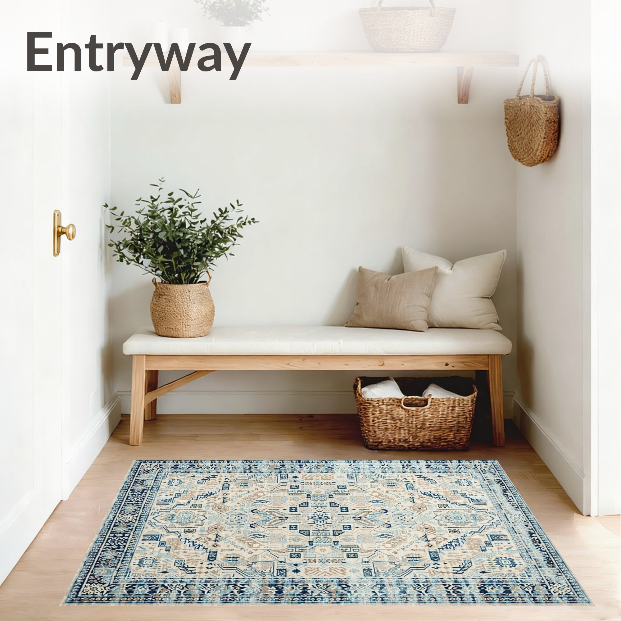 Ultra Soft Area Rug, Non Slip, Stain Resistant, Washable Area Rugs for Living Room, Bedroom, Large Neutral Farmhouse Boho Non Slip Indoor Floor Beige Blue(Beige) Overview: