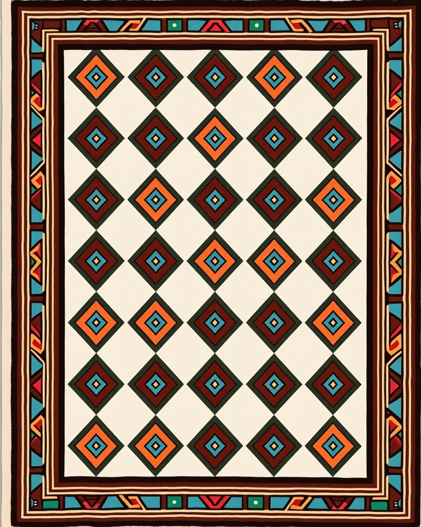 Lattice with Ethnic Border Details Slip Resistant(Brown)