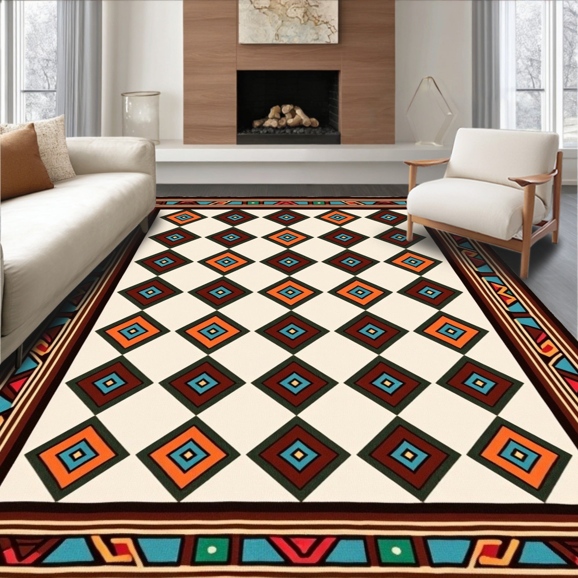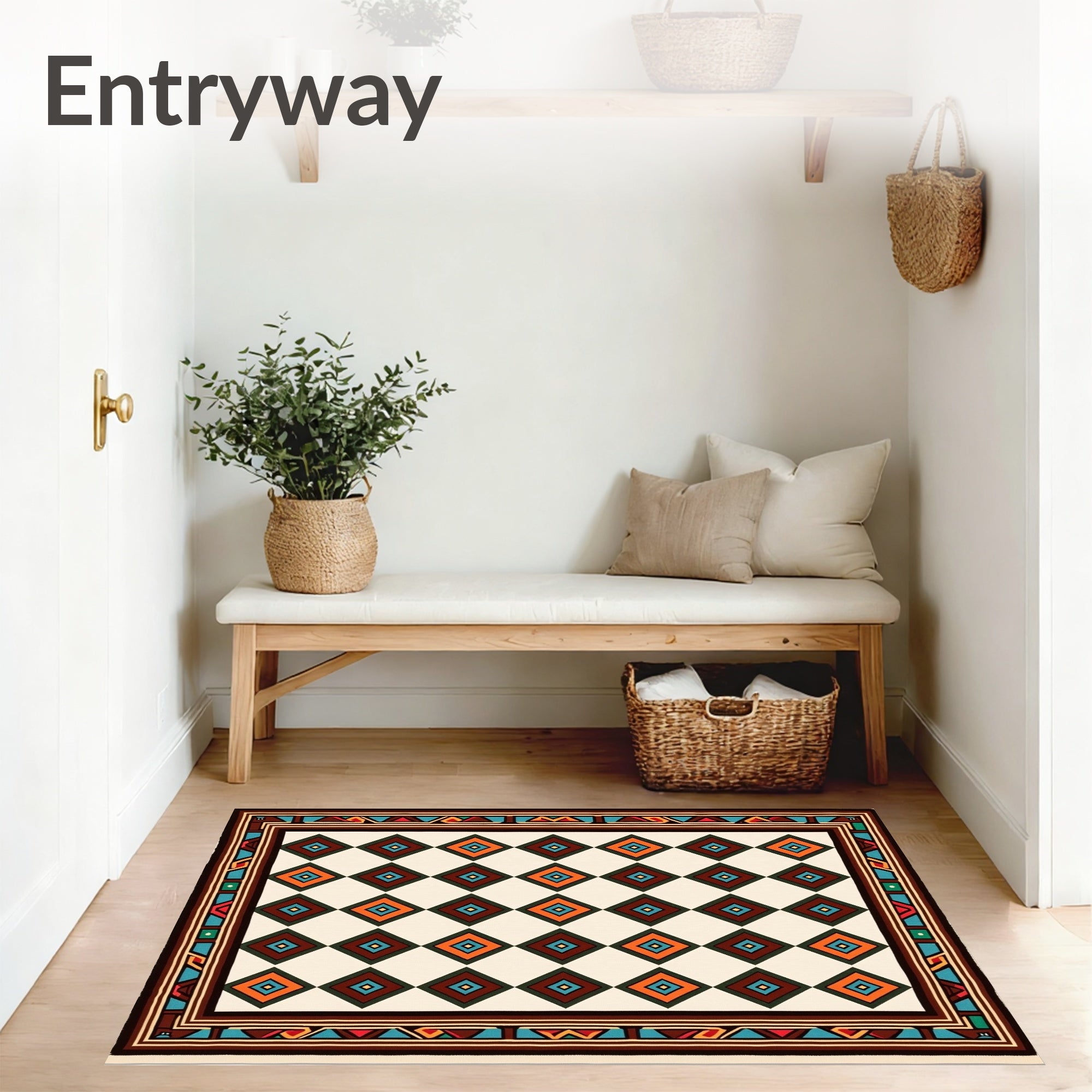 Flatwoven High Traffic Area Rug, Lattice with Ethnic Border Details Slip Resistant, Non Slip, Stain Resistant, Washable Area Rugs for Living Room, Bedroom (Brown) Overview: