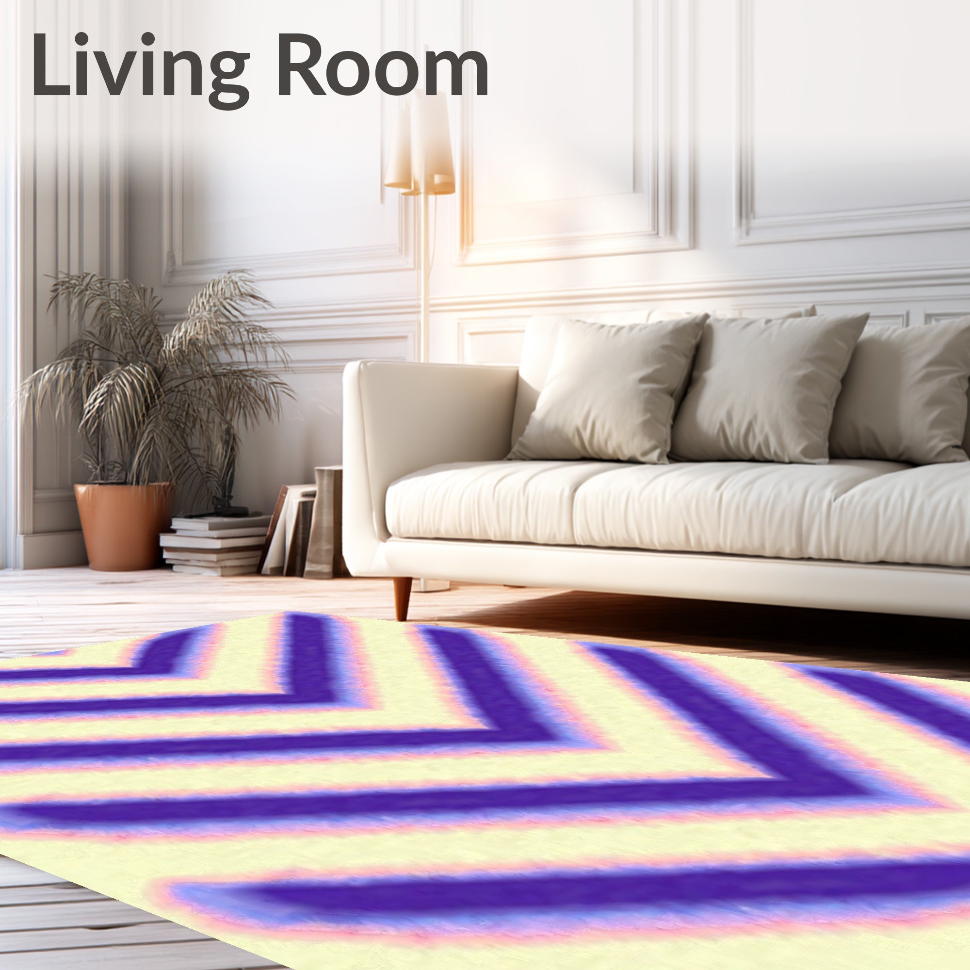 Ultra Soft Area Rug, Non Slip, Stain Resistant, Washable Area Rugs for Living Room, Bedroom, Lavender Ombre Chevron with Gradient Transitions(Purple) Overview: