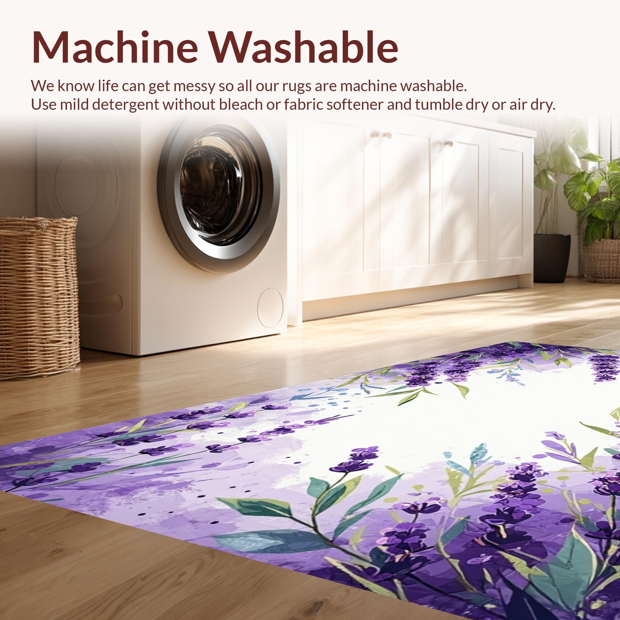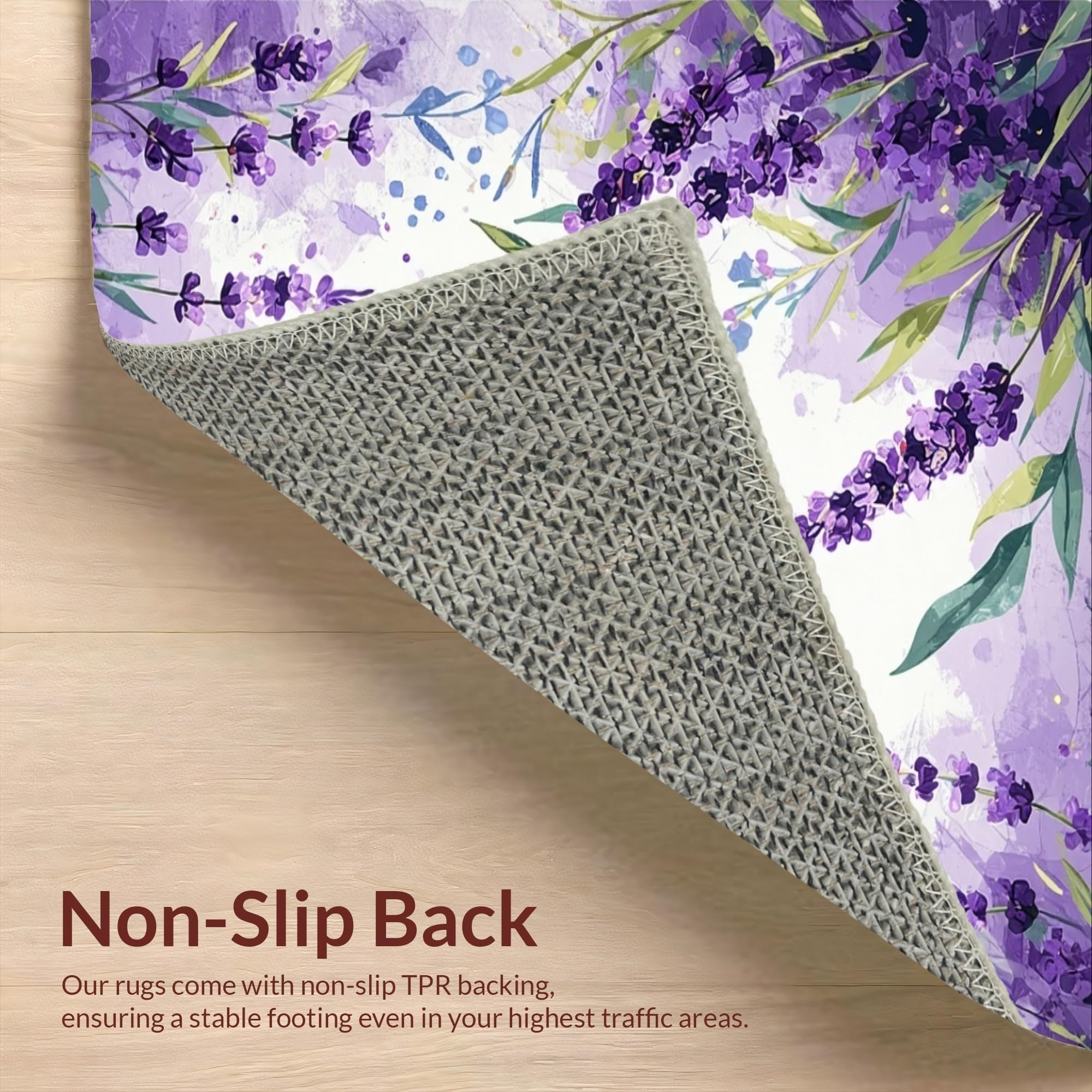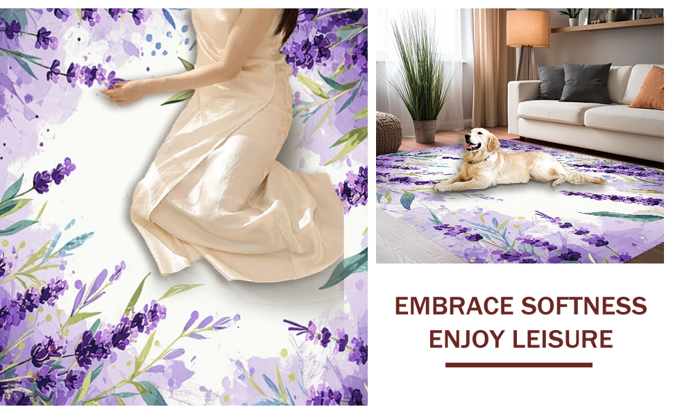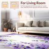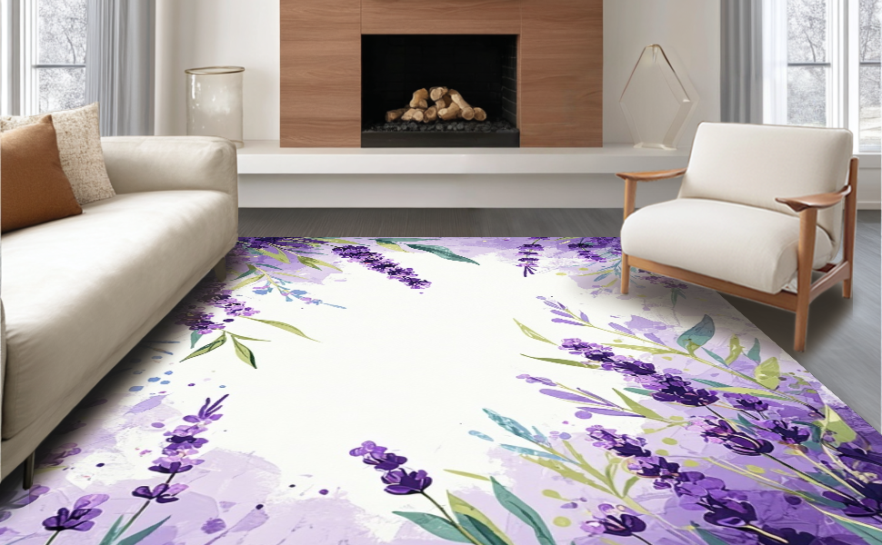 Ultra Soft Area Rug, Non Slip, Stain Resistant, Washable Area Rugs for Living Room, Bedroom, Lavender Pastel Botanical Aesthetic(Purple) Overview: