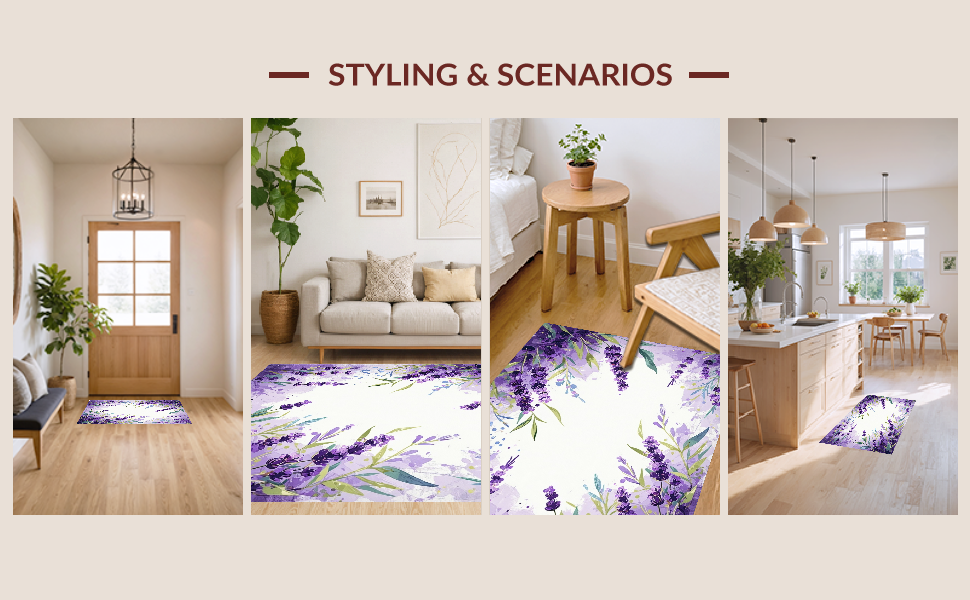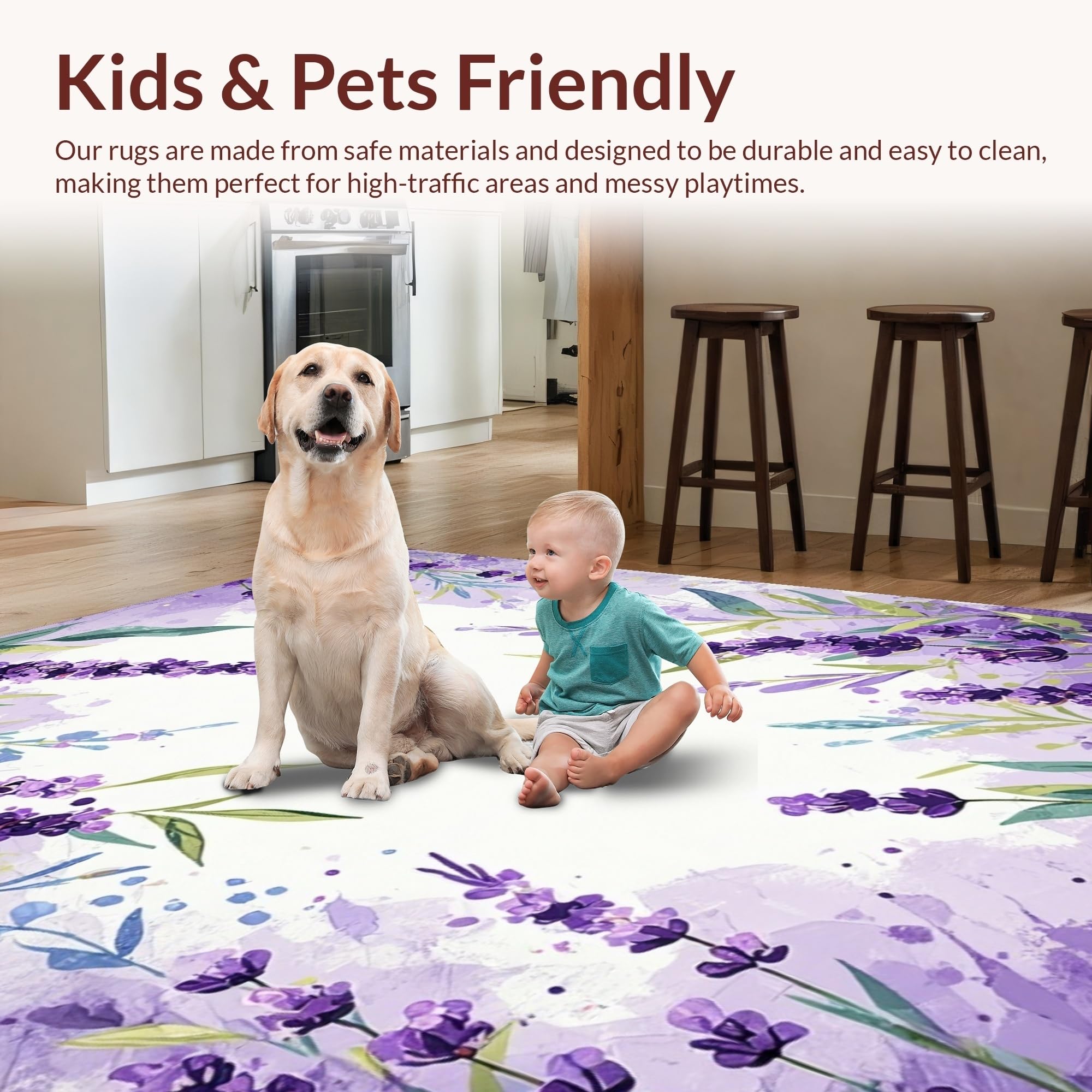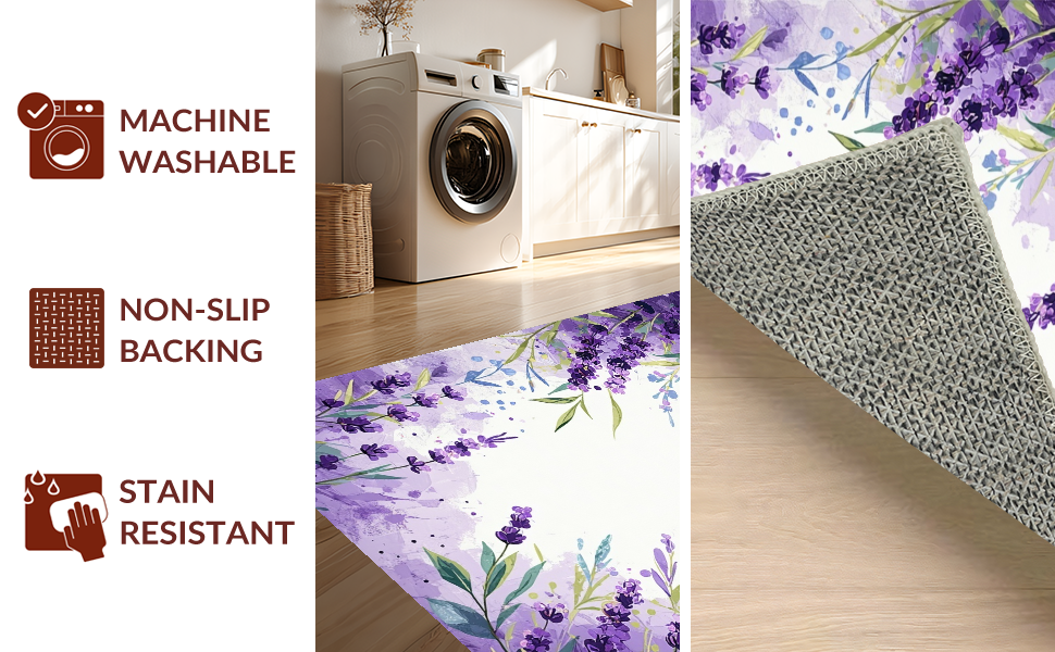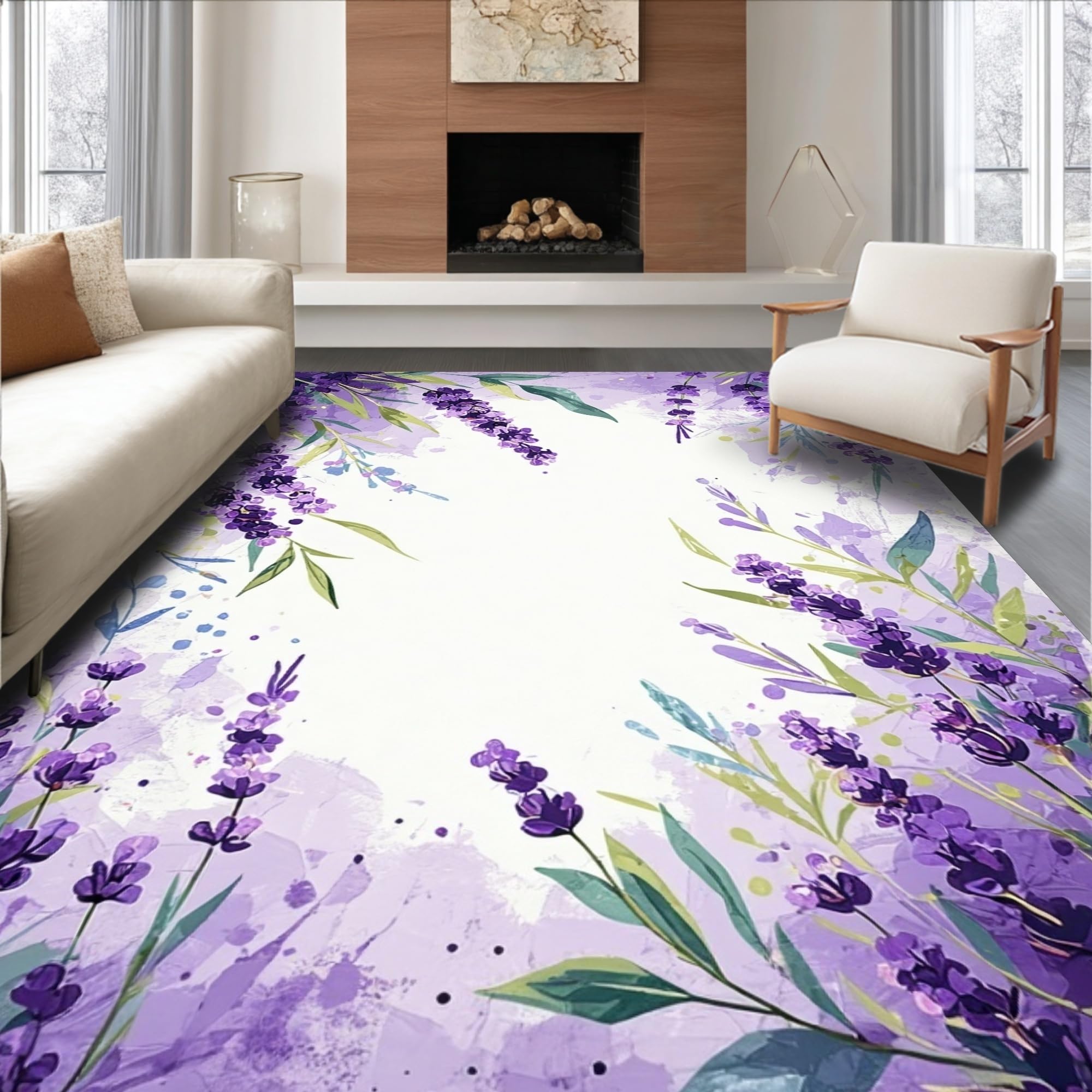 Ultra Soft Area Rug, Non Slip, Stain Resistant, Washable Area Rugs for Living Room, Bedroom, Lavender Pastel Botanical Aesthetic(Purple) Overview: